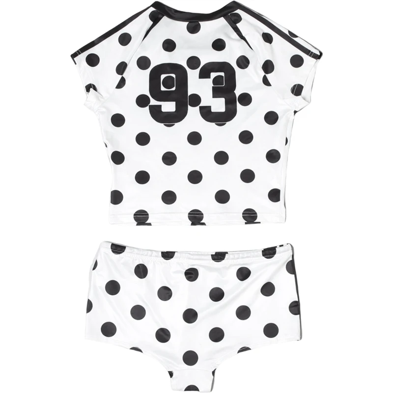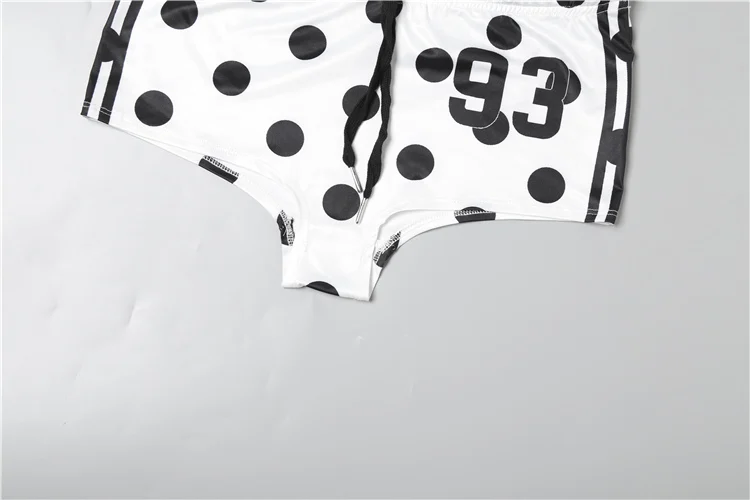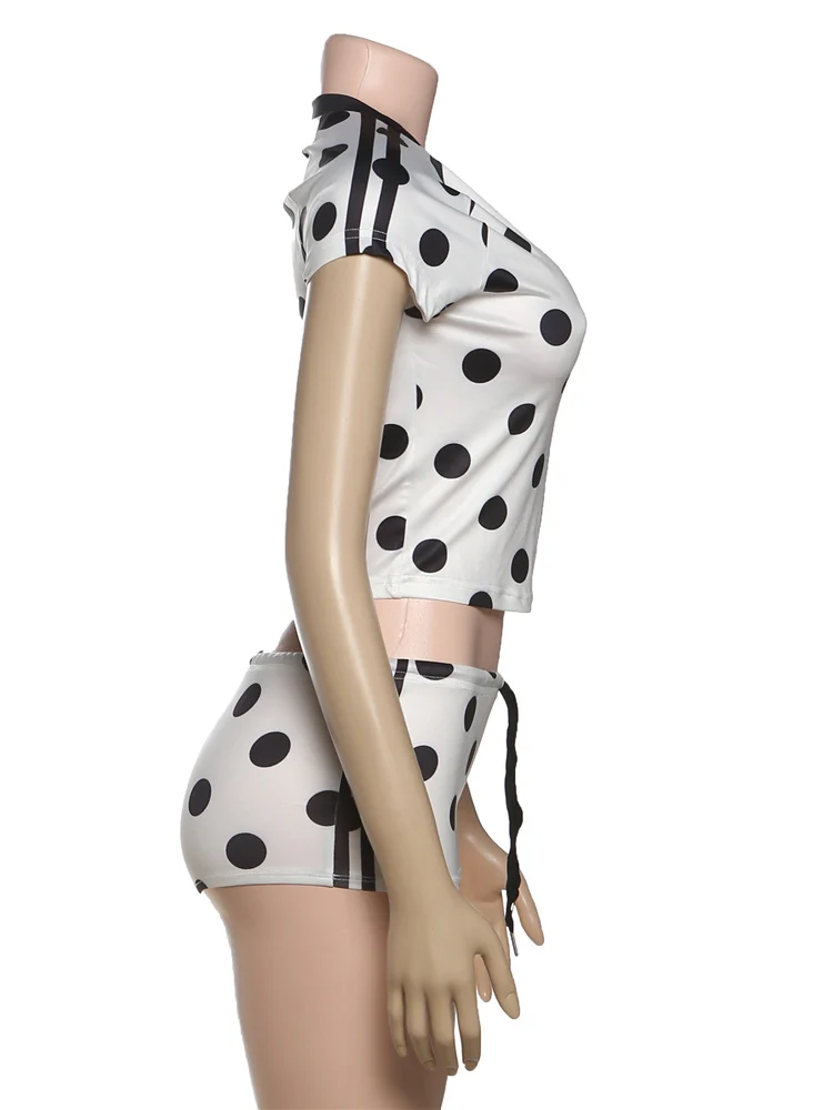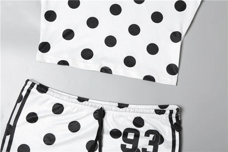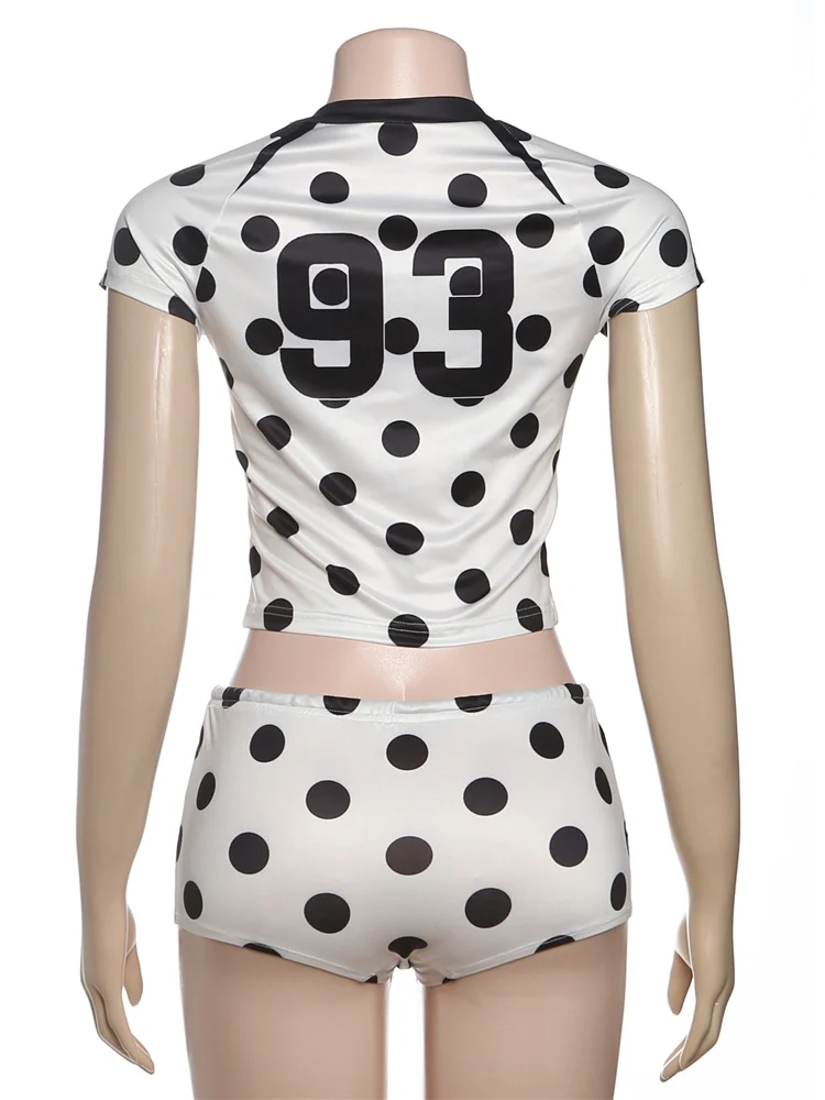 Sporty Dot Digit Print 2 Piece Set Women Casual Hipster Crop Tops+Shorts Matching Streetwear Skinny Stretch Tracksuit