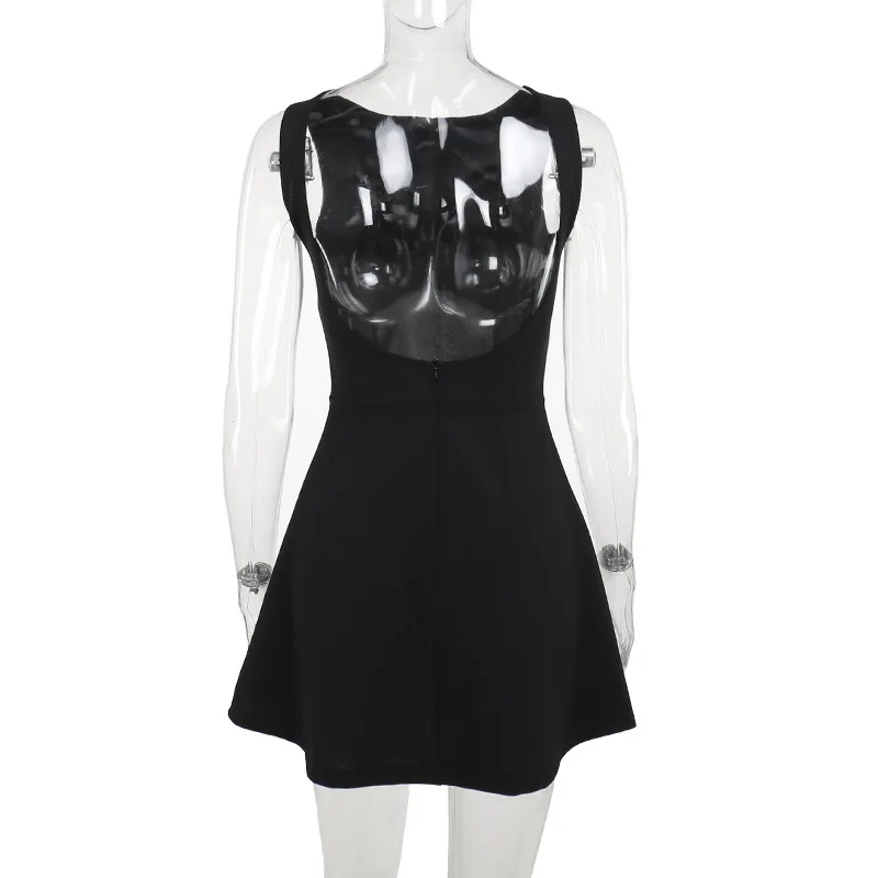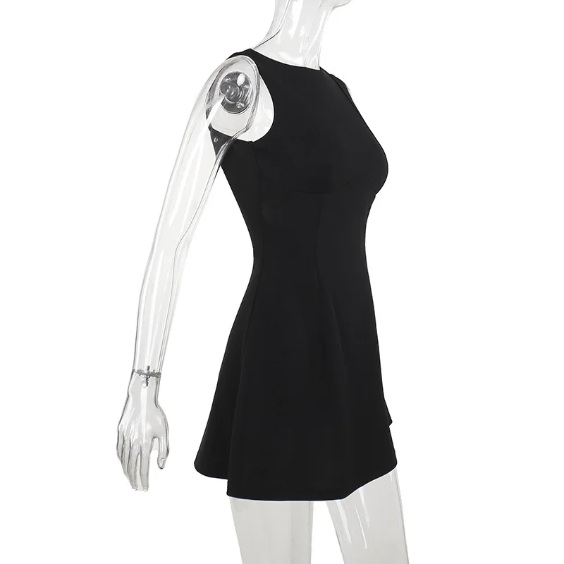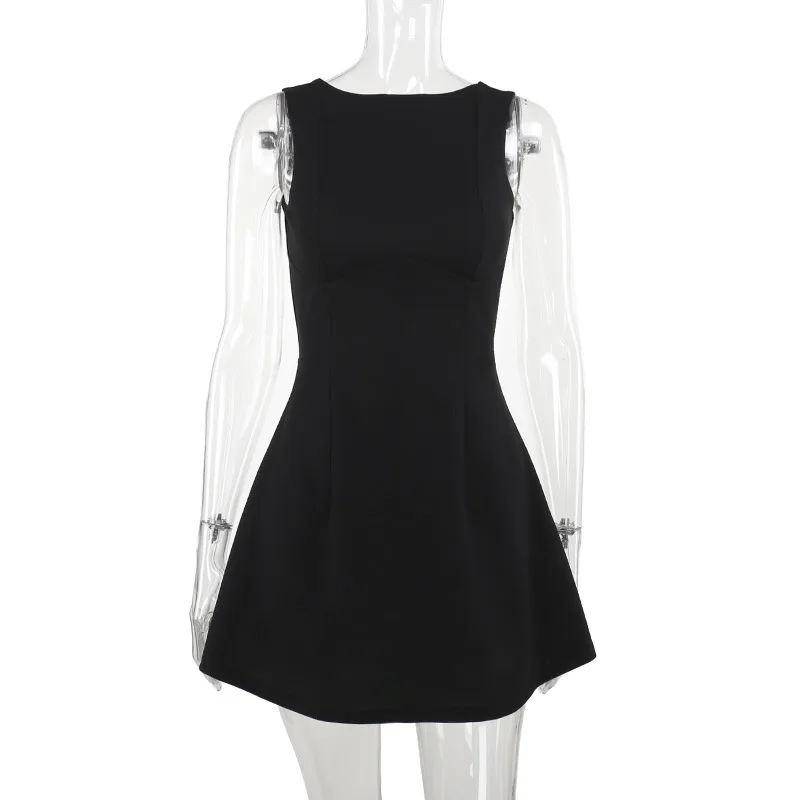 Spring 2024 New Sexy Slim Fit Short Skirt Women's Open Back Tank Top Basic Dress