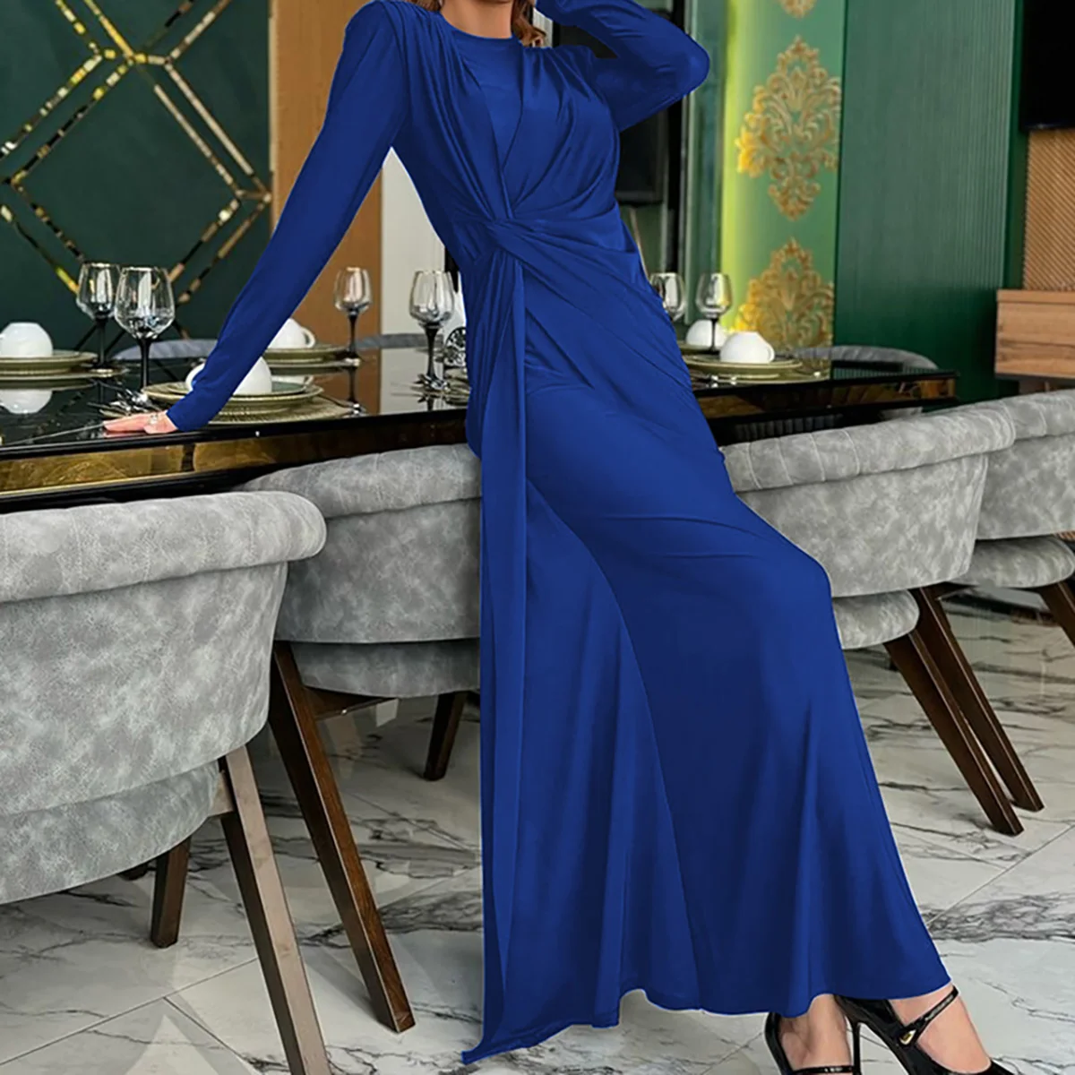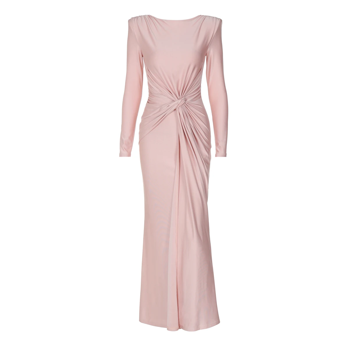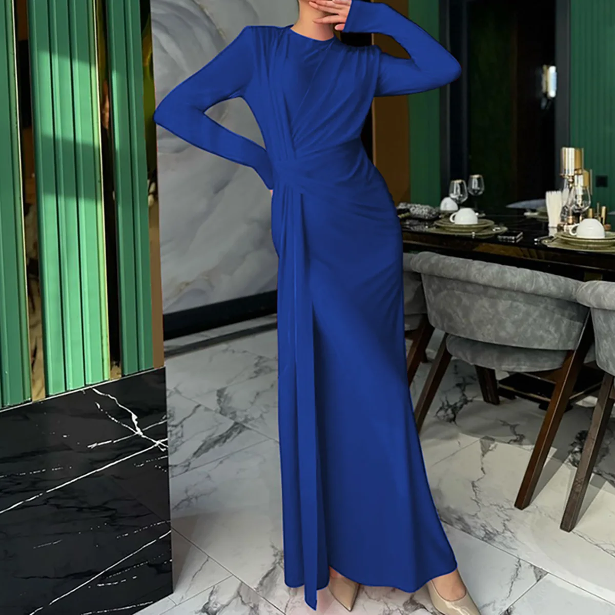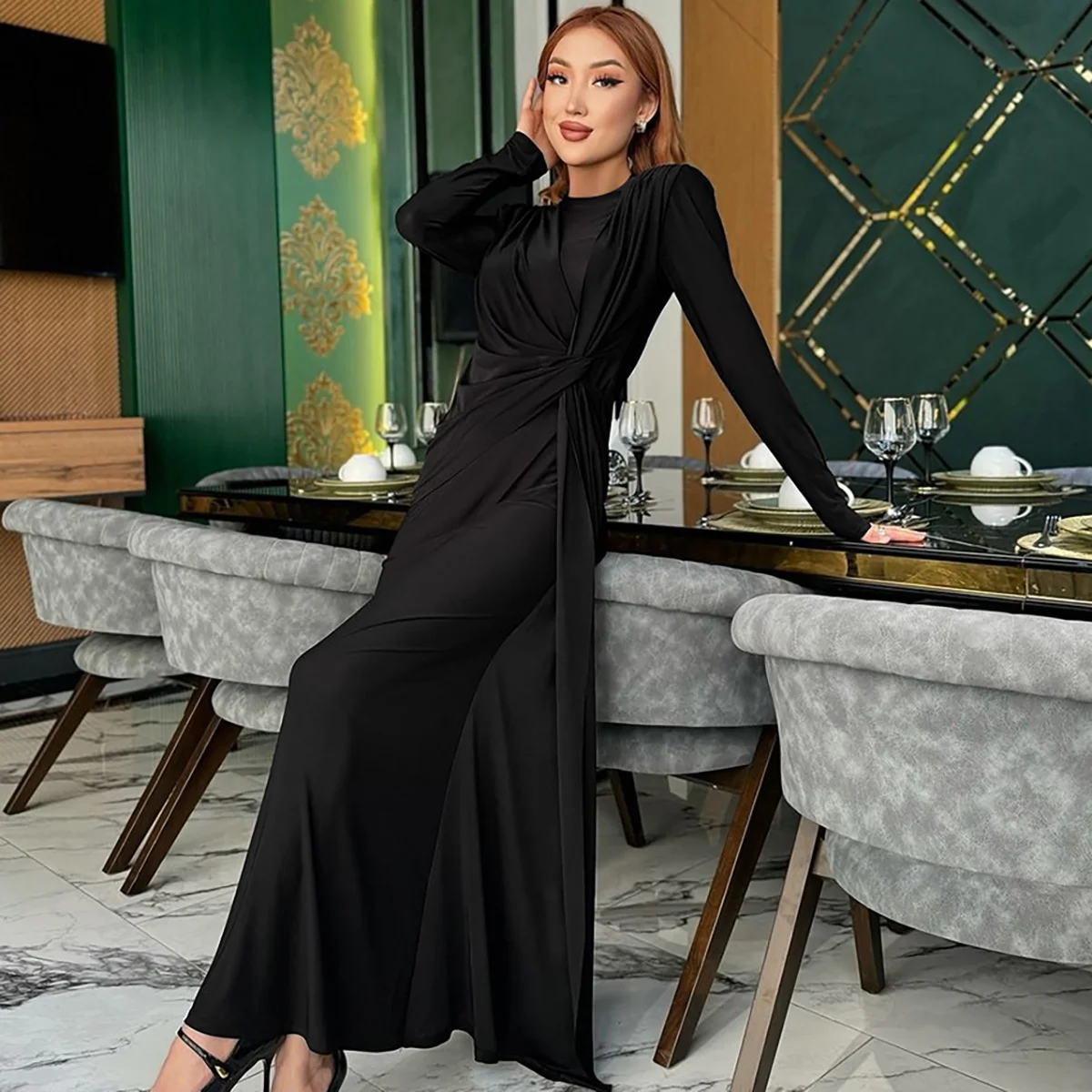 Spring Eleagnt Solid Long Sleeve Shoulder Pads Ruched Sexy Maxi Dress Women New Clothes Evening Party Festival