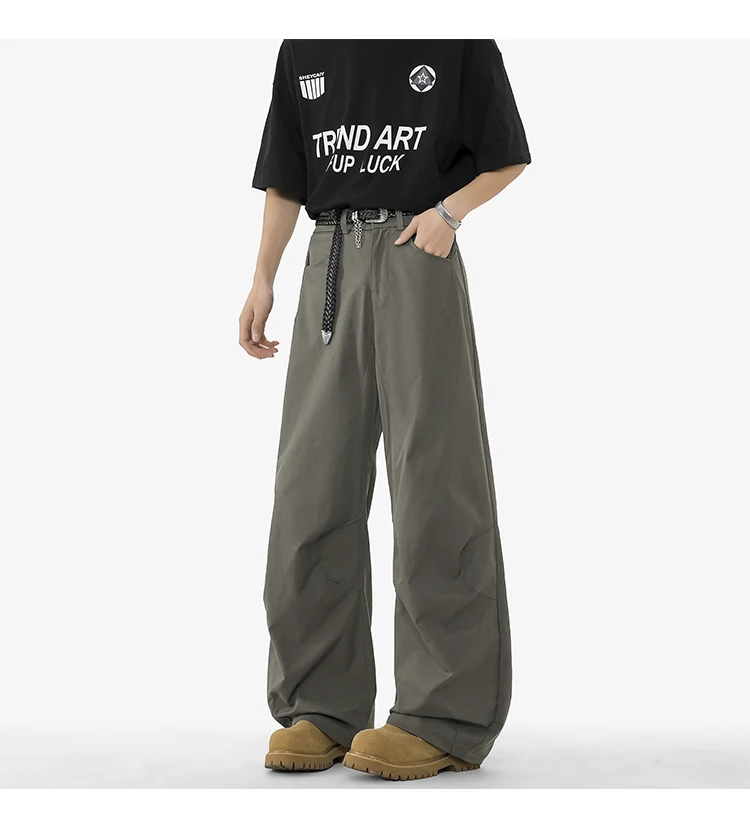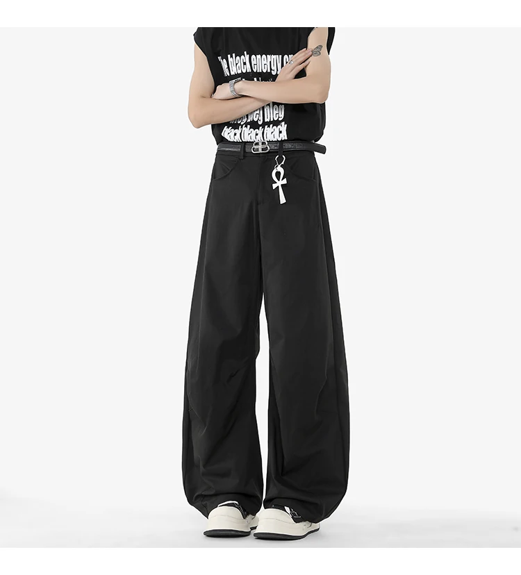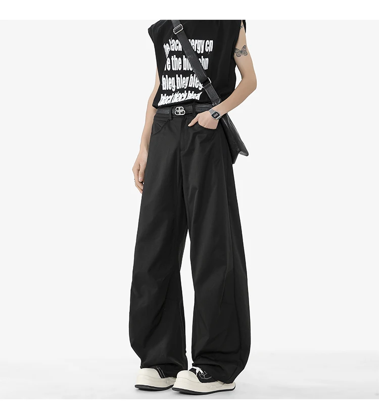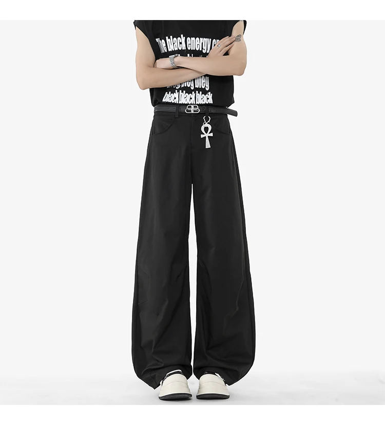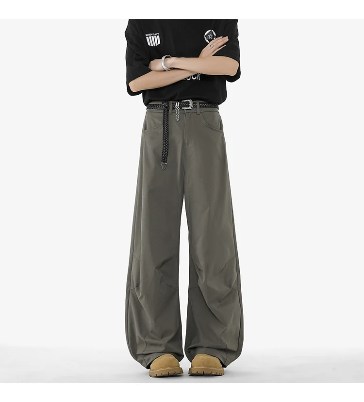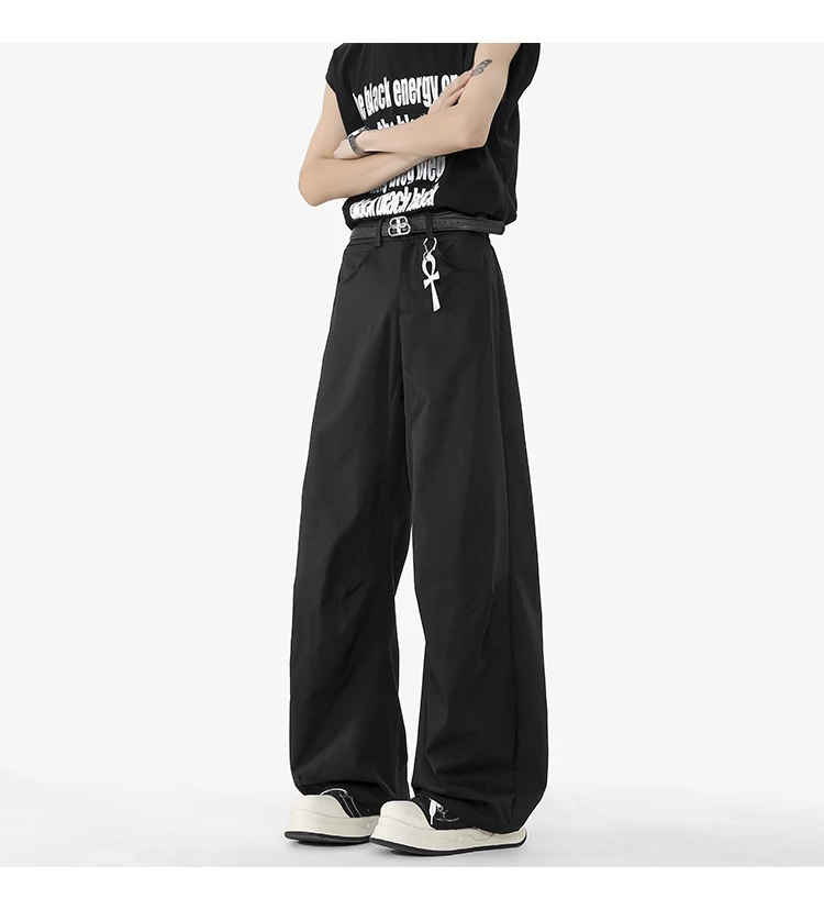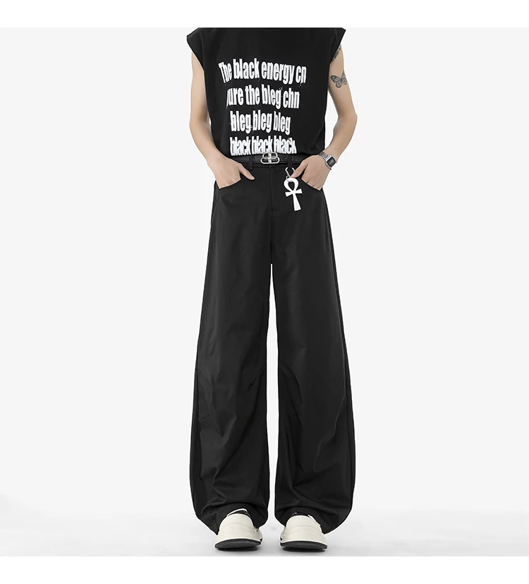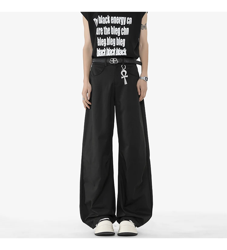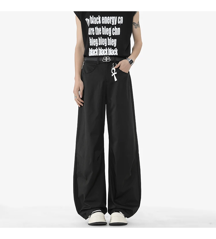 Spring Male Casual Pants New Korean Fashion Solid Color Floor Design Trousers Wide Leg Trendy Menwear Overalls 2025 9W1394