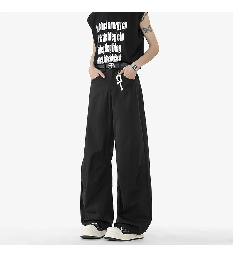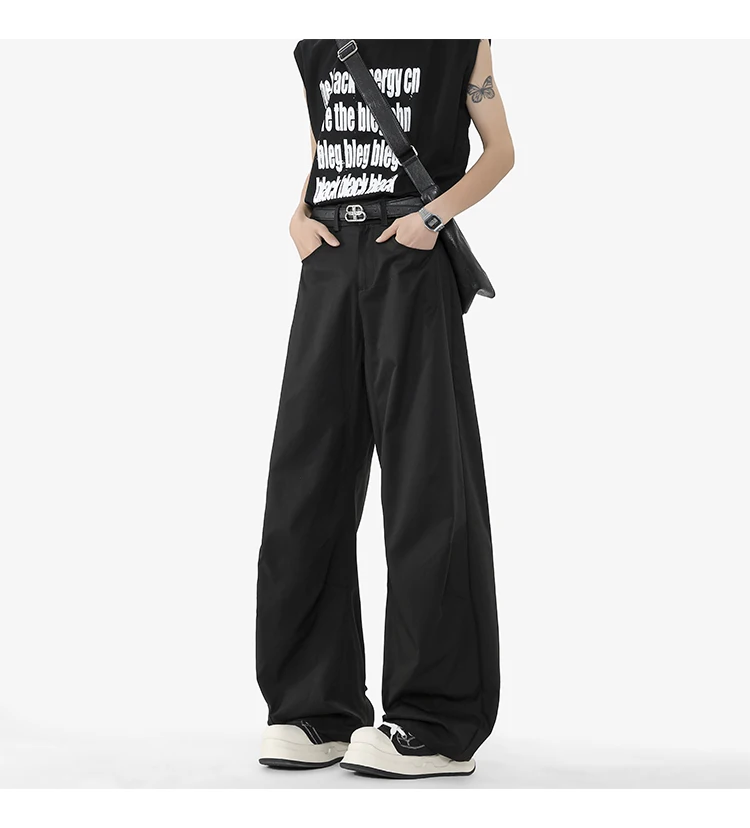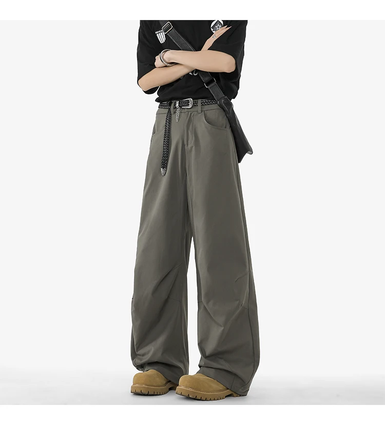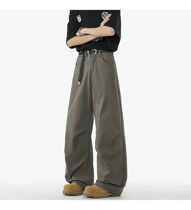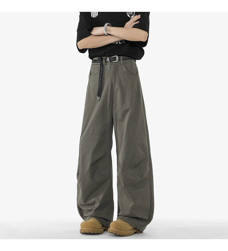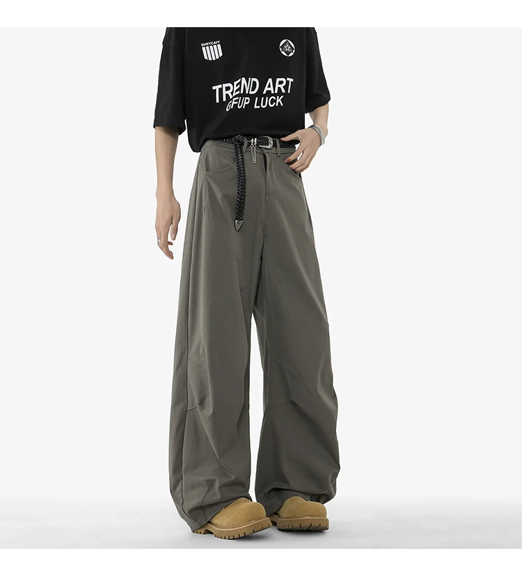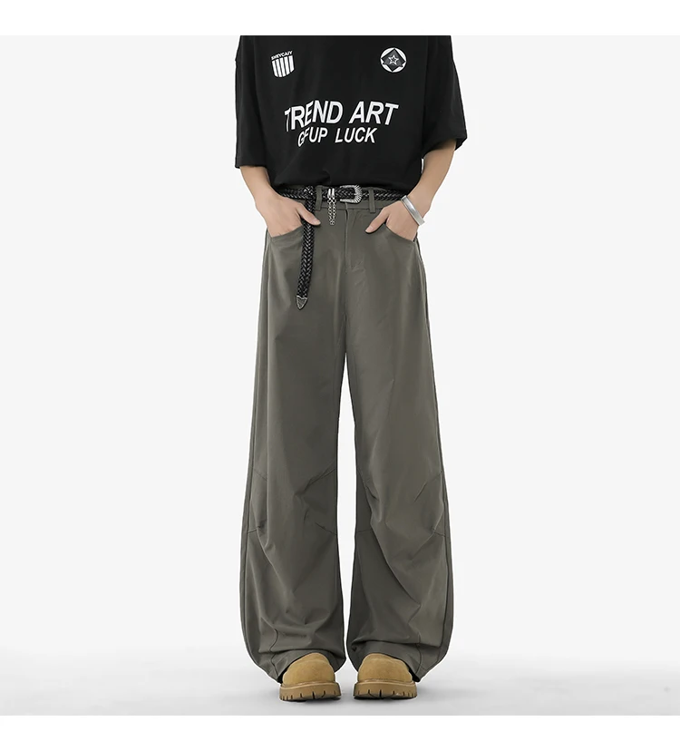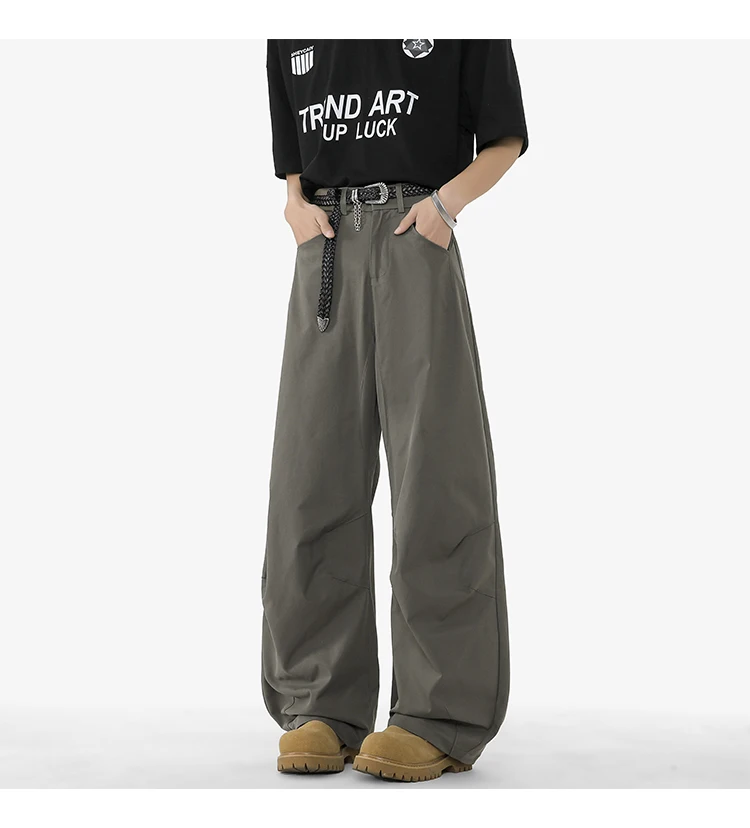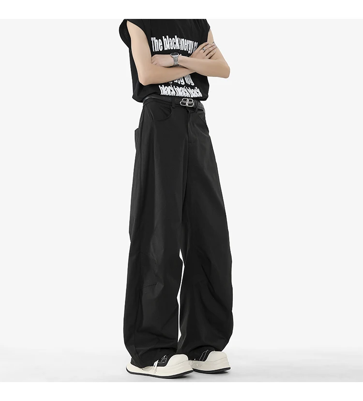 Spring Male Casual Pants New Korean Fashion Solid Color Floor Design Trousers Wide Leg Trendy Menwear Overalls 2025 9W1394