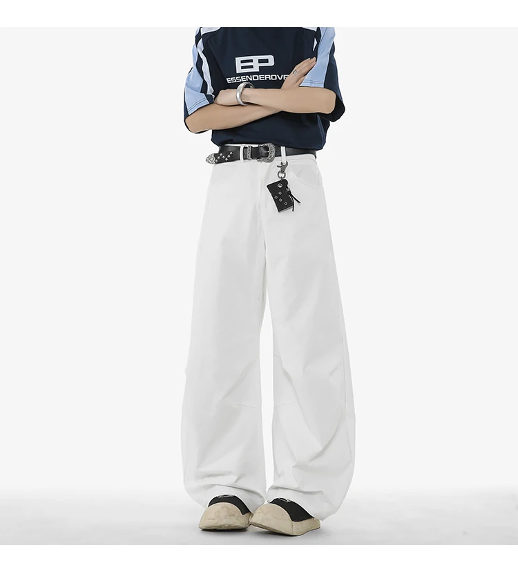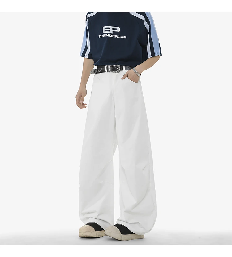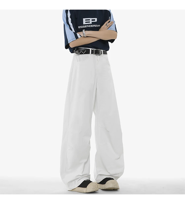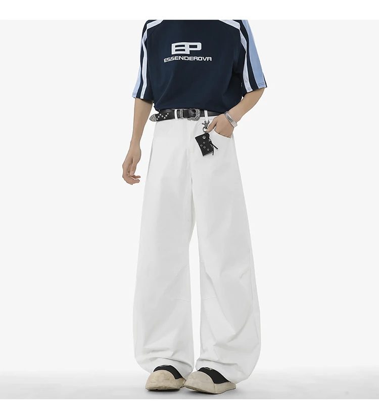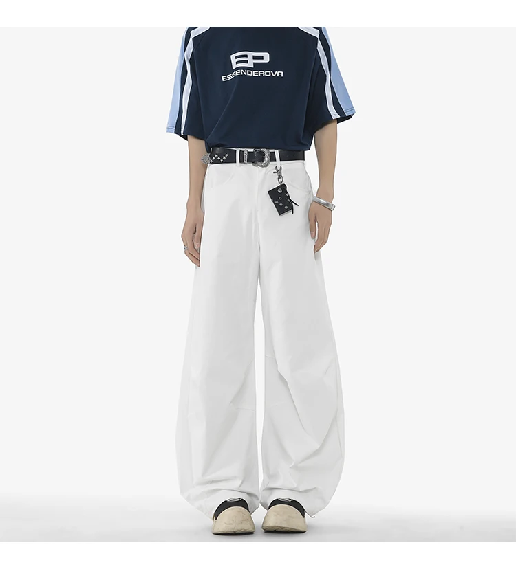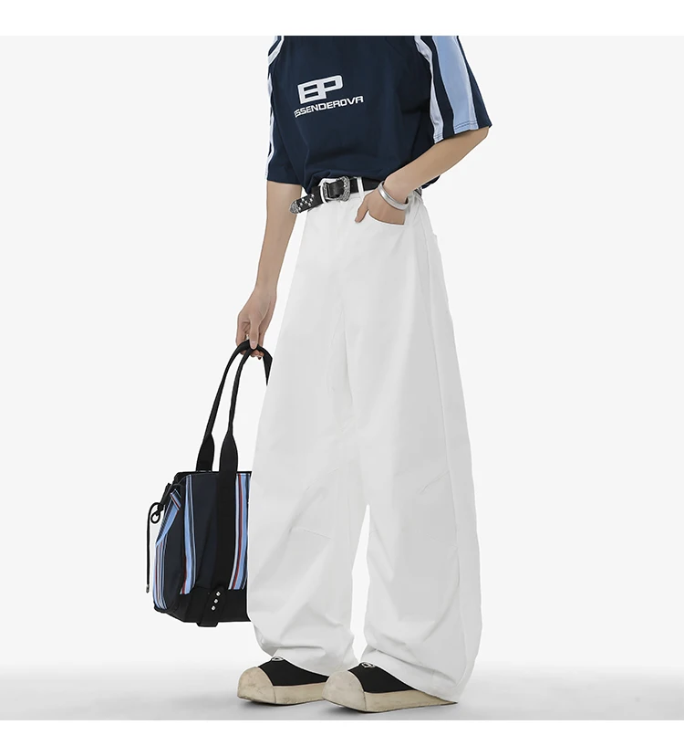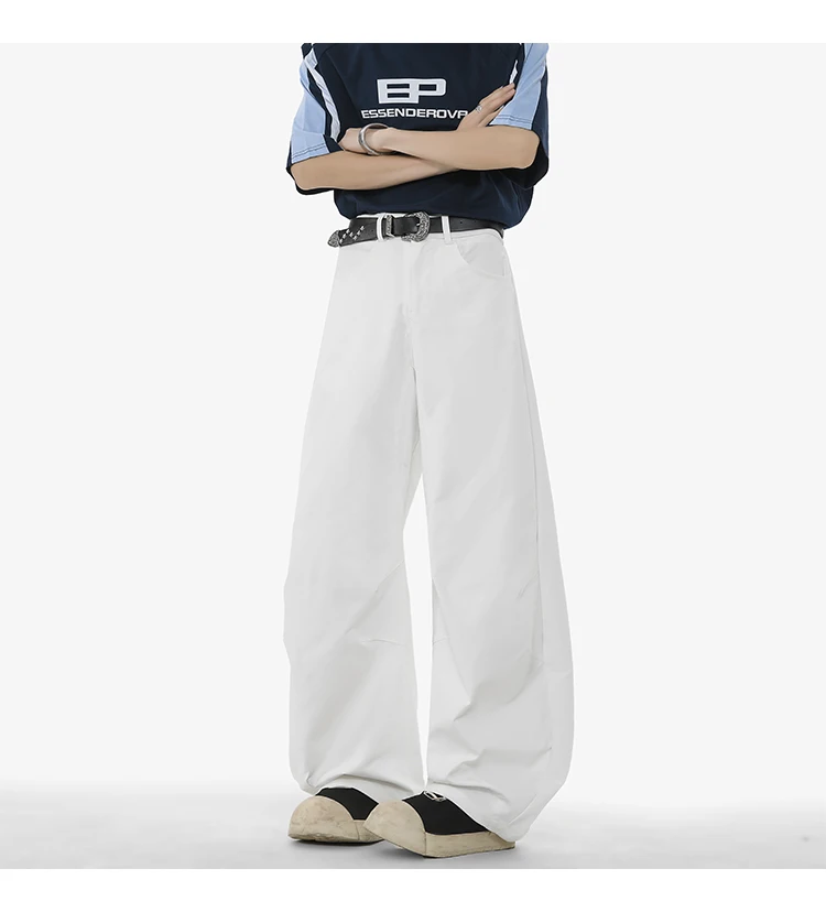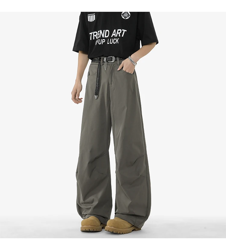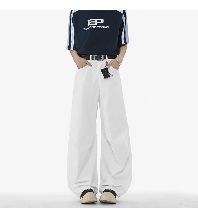 Spring Male Casual Pants New Korean Fashion Solid Color Floor Design Trousers Wide Leg Trendy Menwear Overalls 2025 9W1394