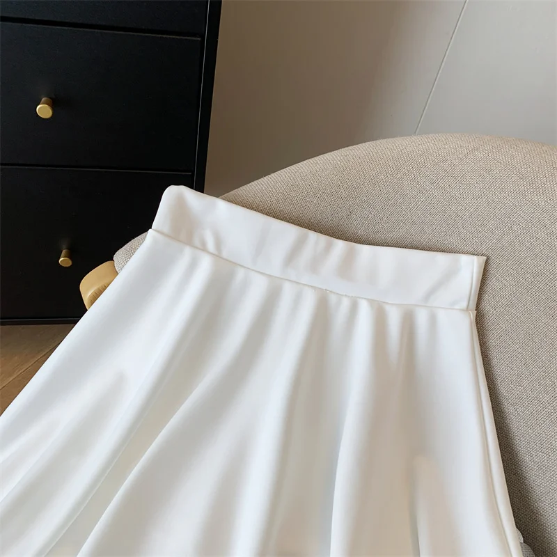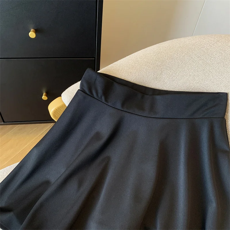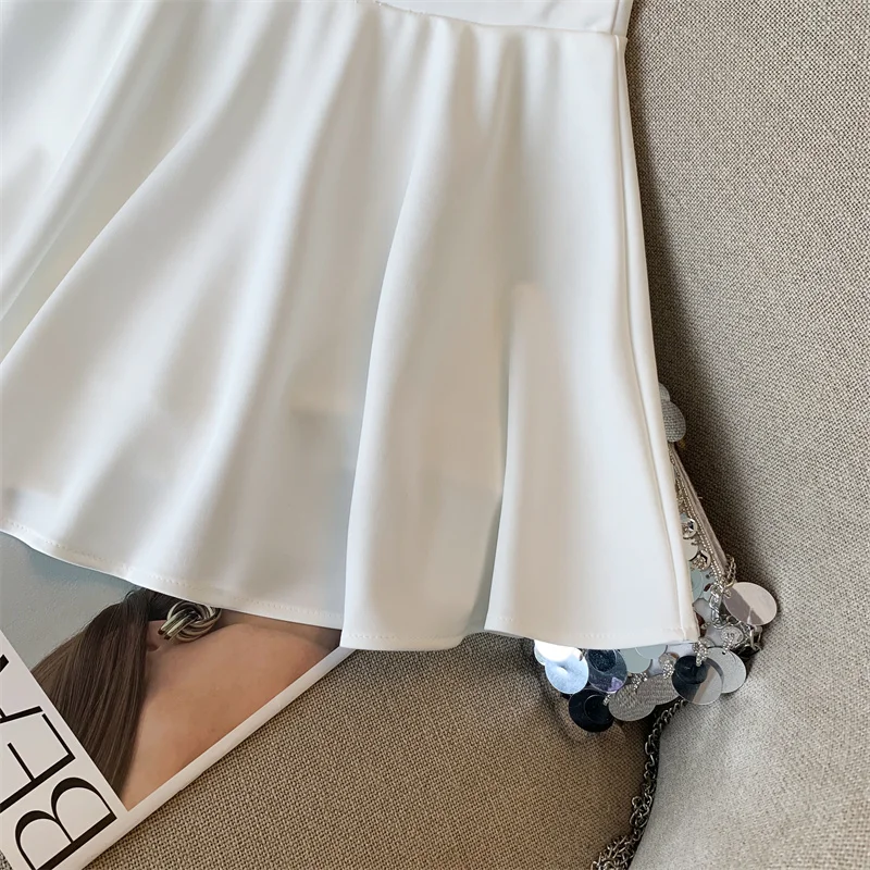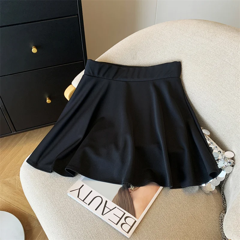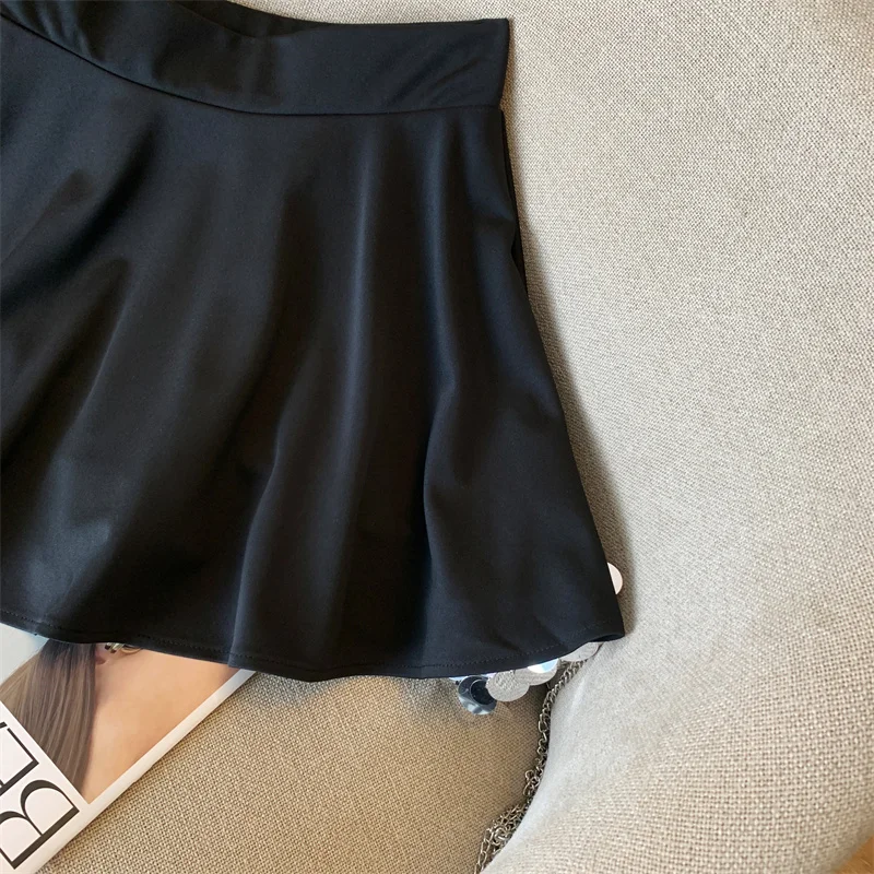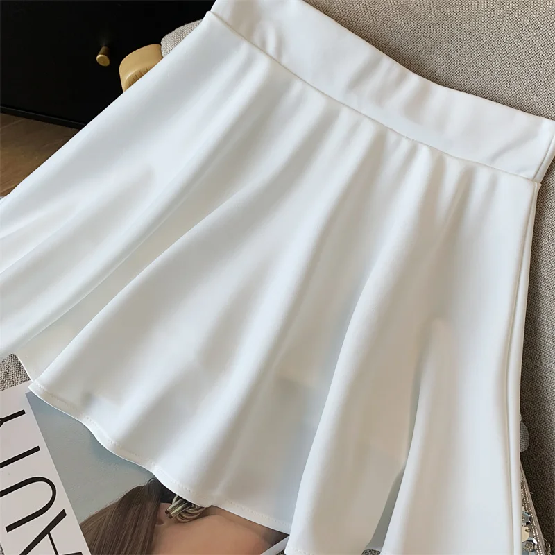 Spring Summer Black A-line Pleated Skirts White Elastic High Waist Slim Short Skirt For Girls Ruffle Edge Party Skirt Simplicity