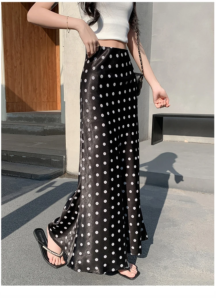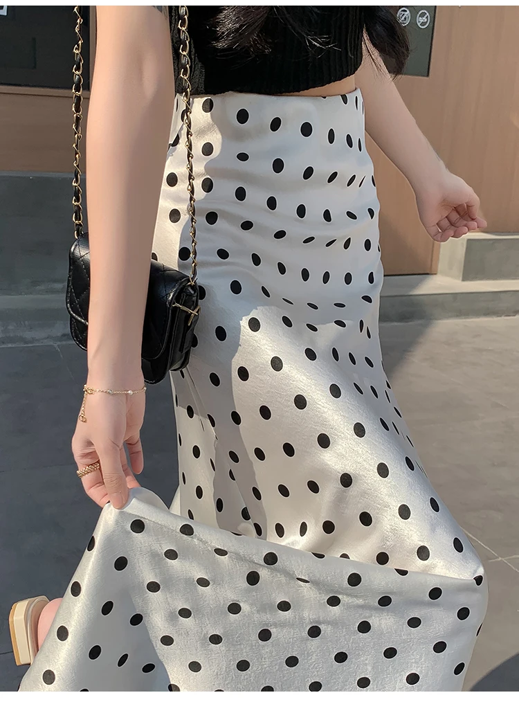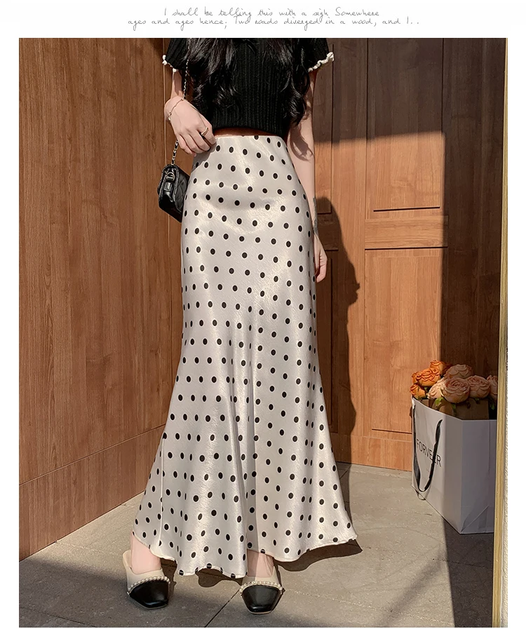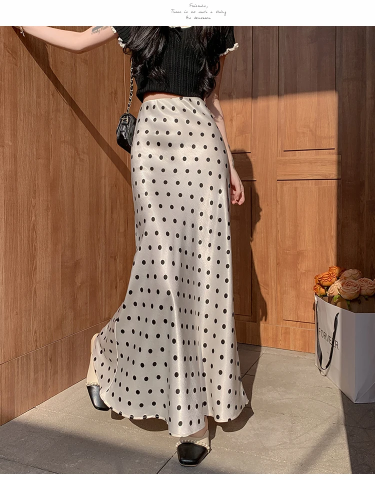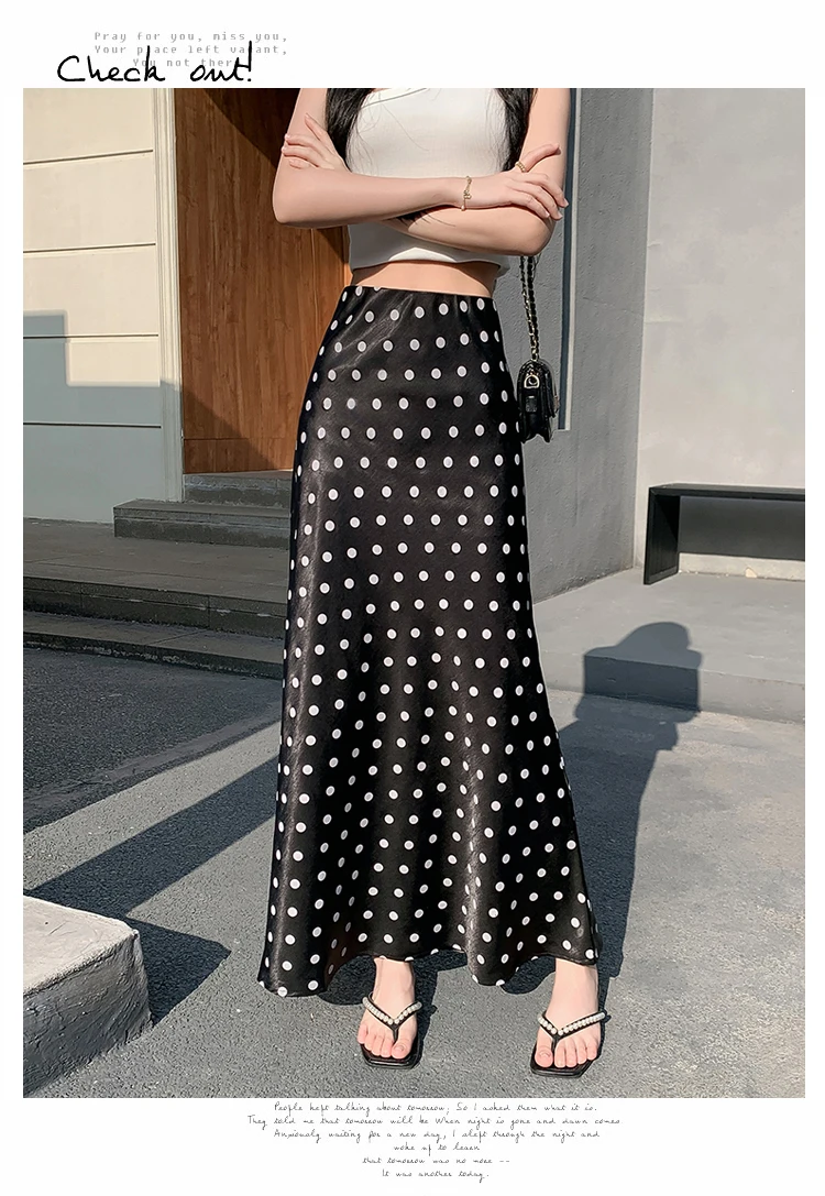 Spring Summer French Fashion Black Beige Dot Elegant Sexy Pleated Long Skirt Women High Waist Slim Wrapped Hip Skirt 2025 Casual
