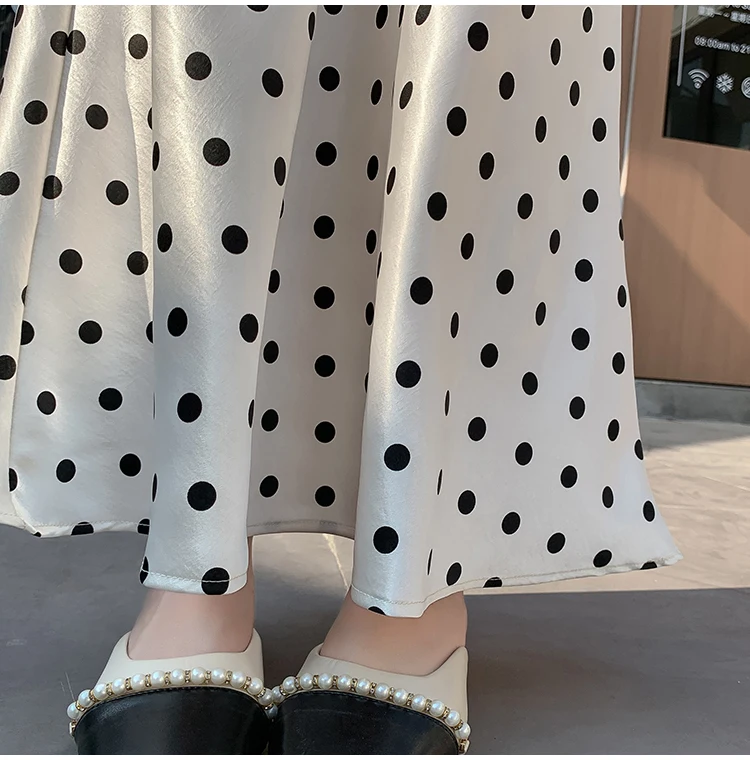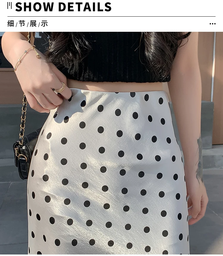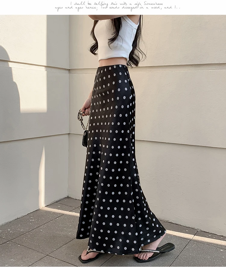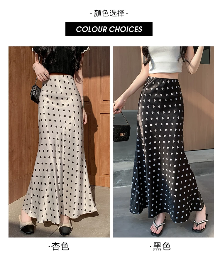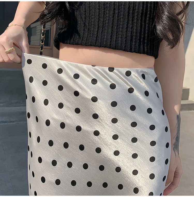 Spring Summer French Fashion Black Beige Dot Elegant Sexy Pleated Long Skirt Women High Waist Slim Wrapped Hip Skirt 2025 Casual