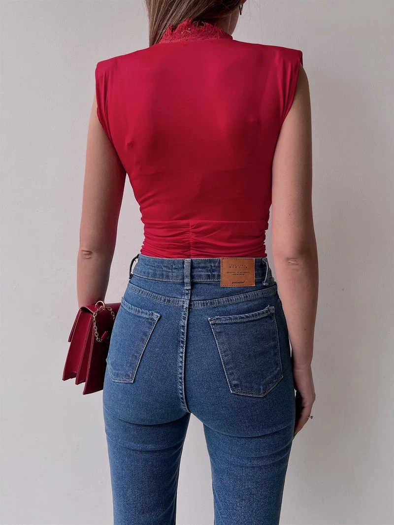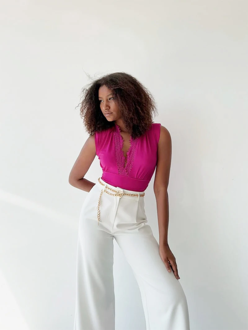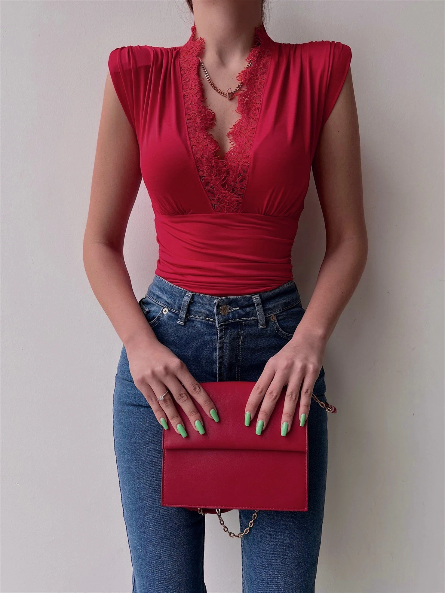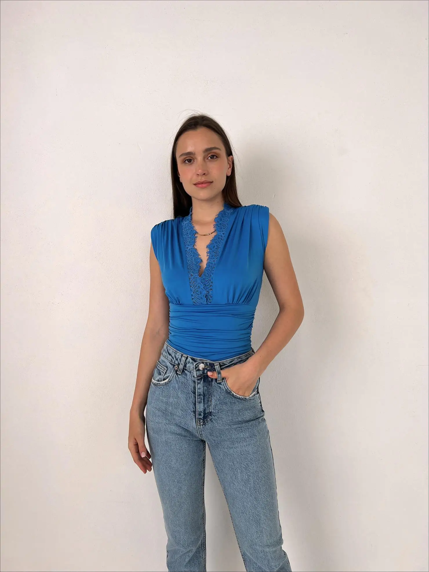 Spring/Summer Sleeveless Lace Edge Deep V Elastic Tight Bodysuit Women Slim Fit Female Bodypsuit Bodycon 2024 New