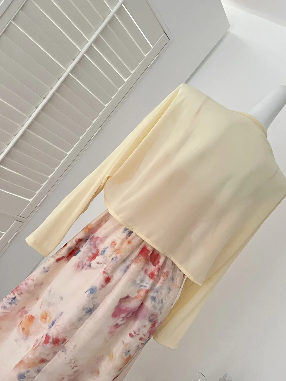 Spring Summer Women Yellow Long Sleeves Cardigan Tops And Retro Floral V-neck High Waist Slim Slip Long Dress 2025 Two-piece Set