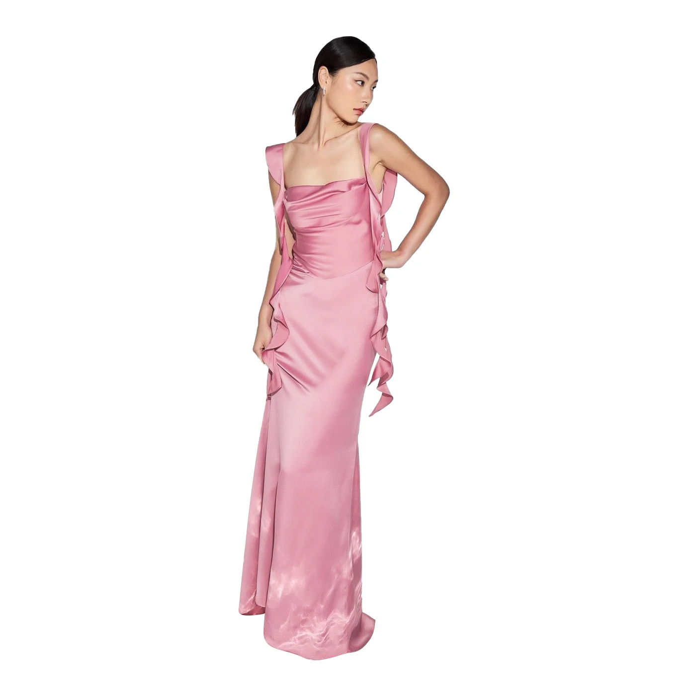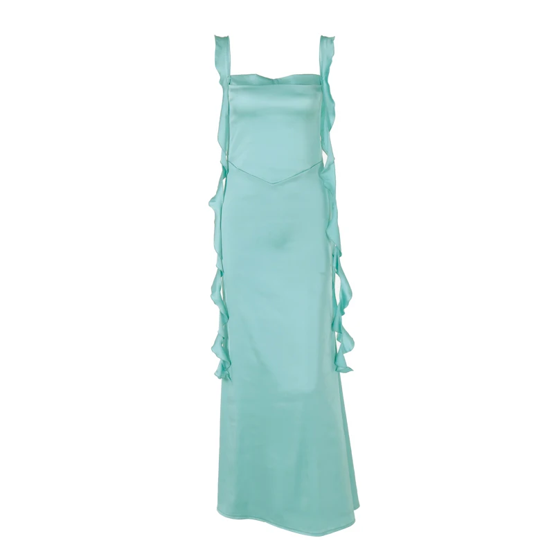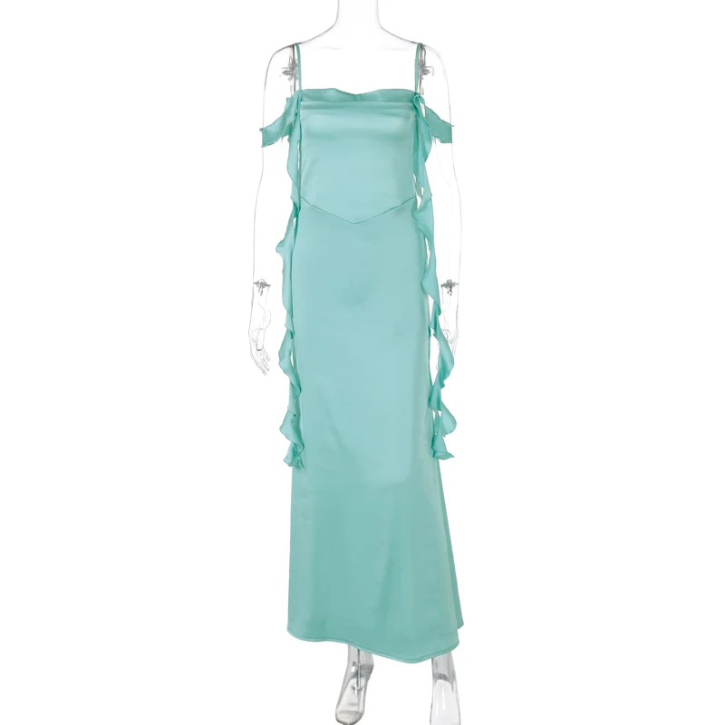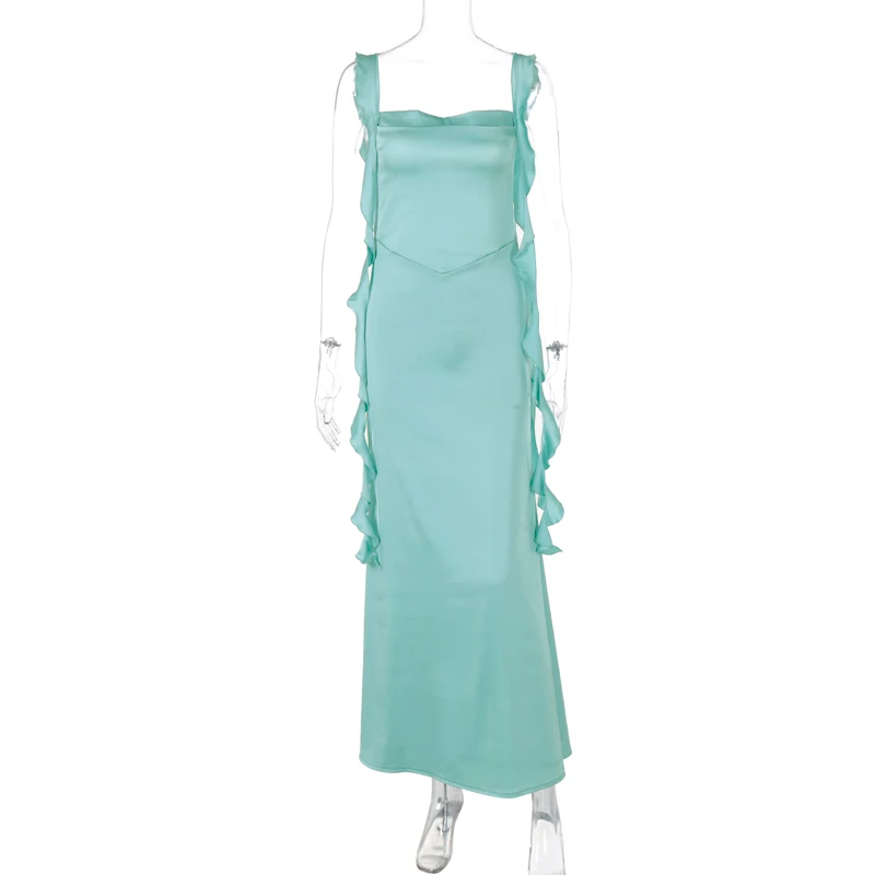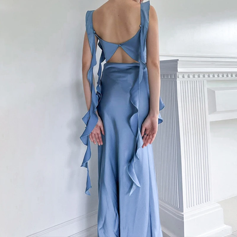 Stain Solid Straps Backless Tassel Sexy Bodycon Maxi Prom Dress Women Elegant Outfits Evening Party Birthday Y2K