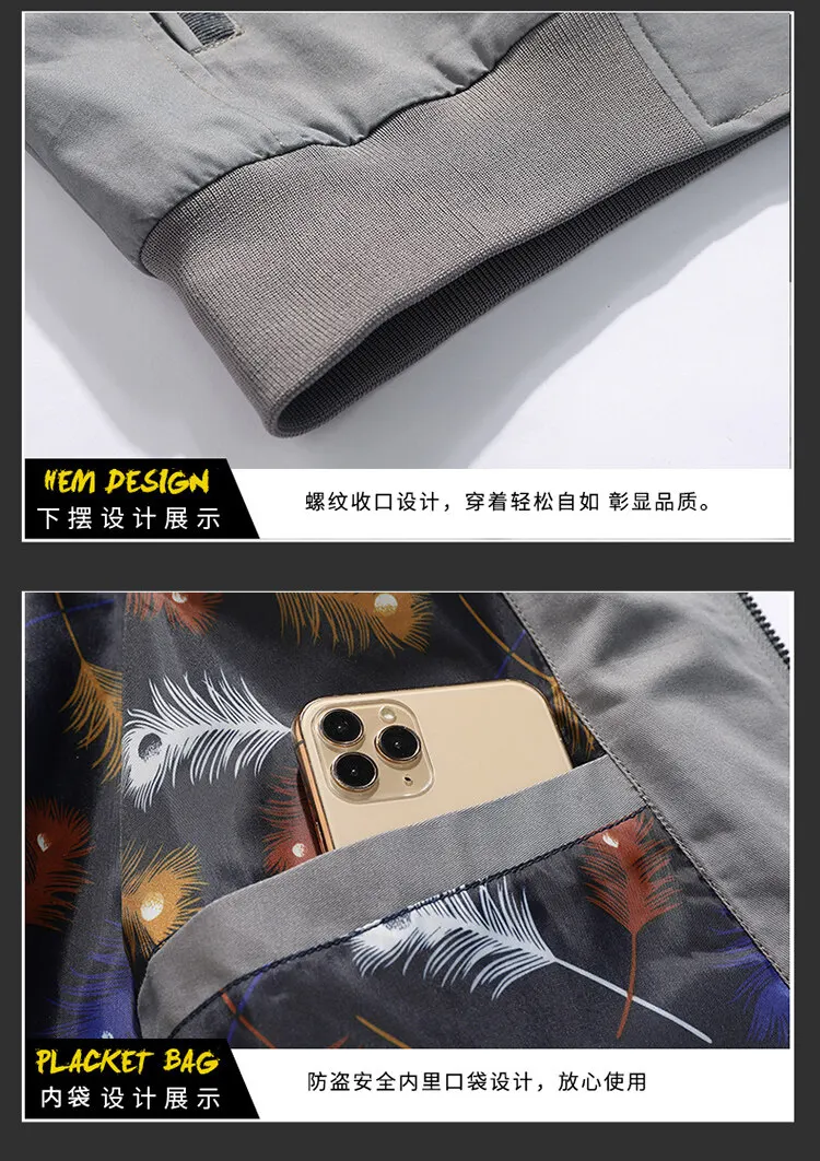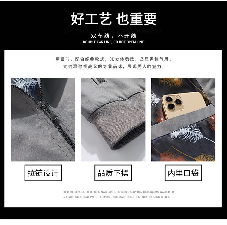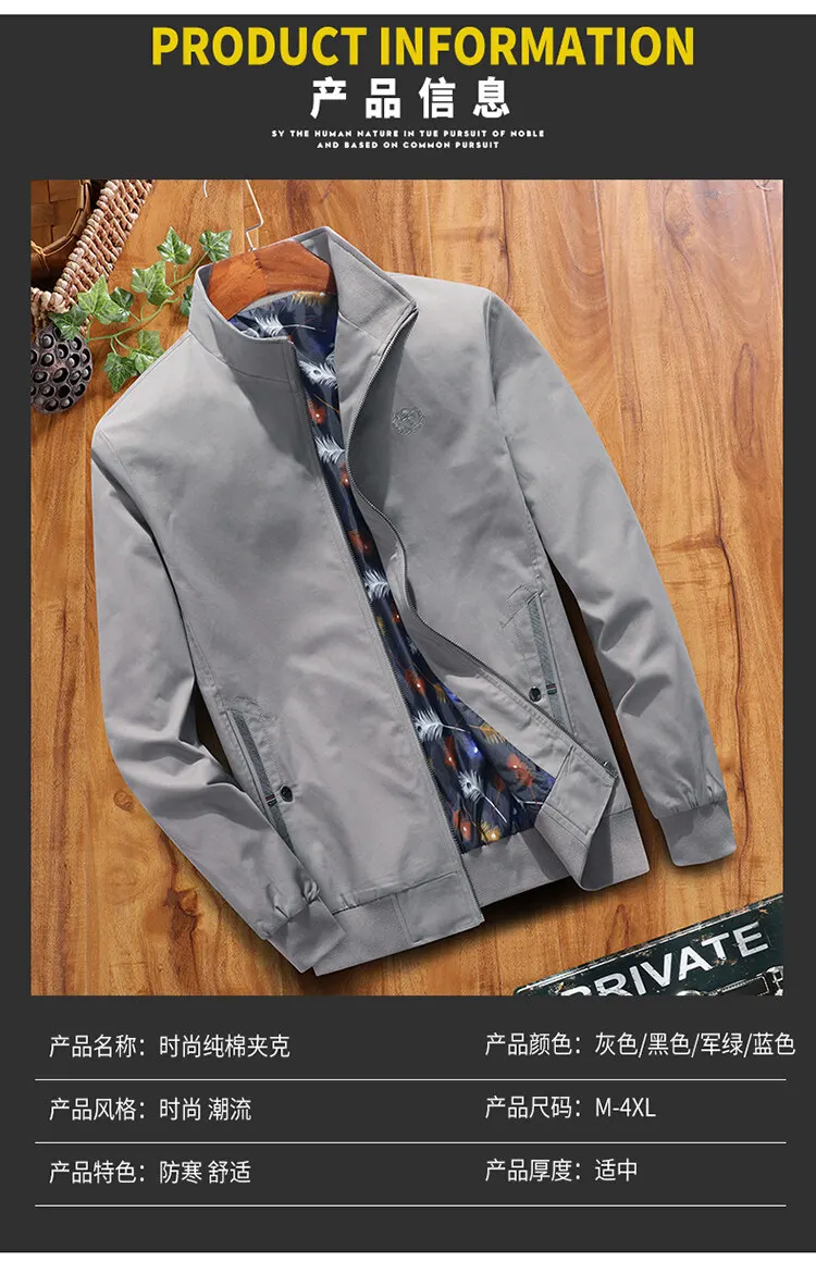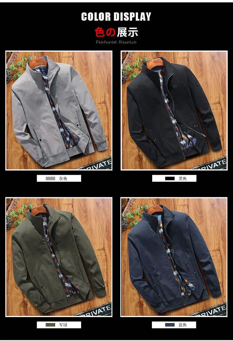 Stand-up Collar Men's Spring Autumn Fashion Men's Bomber Jackets Casual Windbreaker Coats New Outwear Stand Slim Military