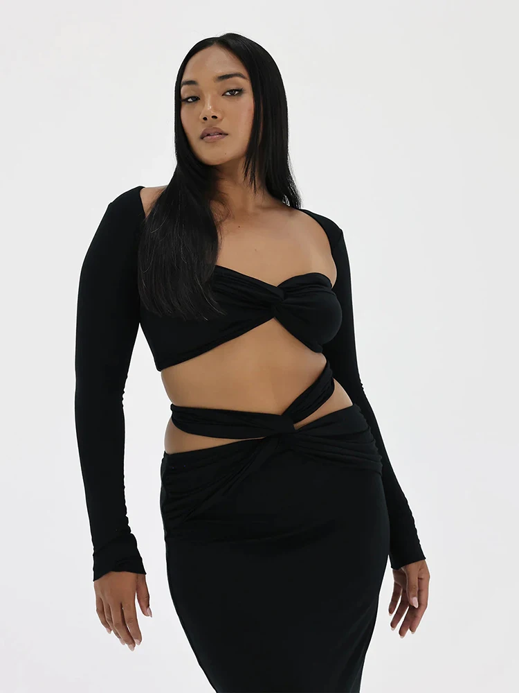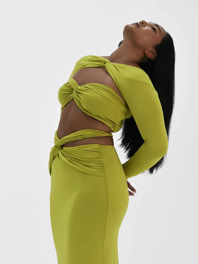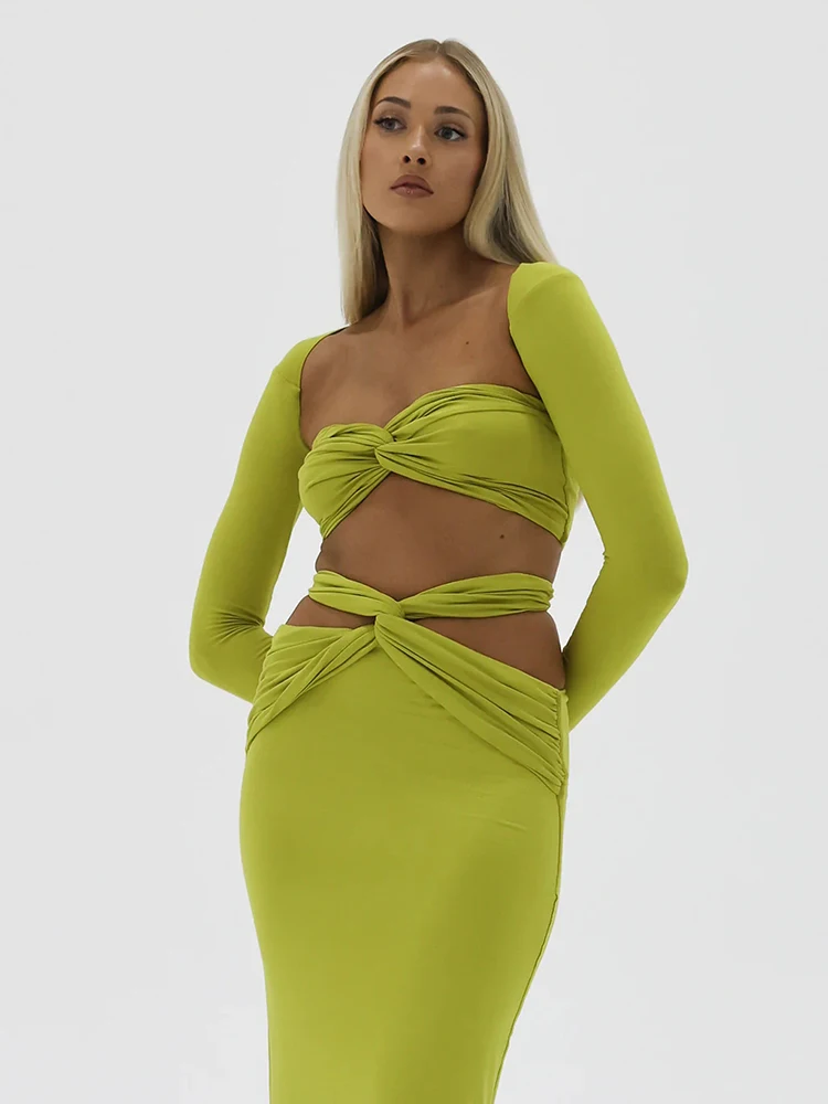 Strapless Hollow Out Spliced Tight Woman Dress Solid Preated Tight Feminine Maix Dress Elegant Prom Party Clothing 2023
