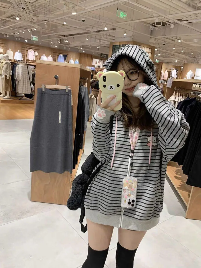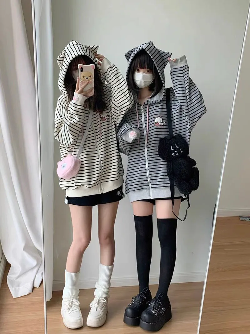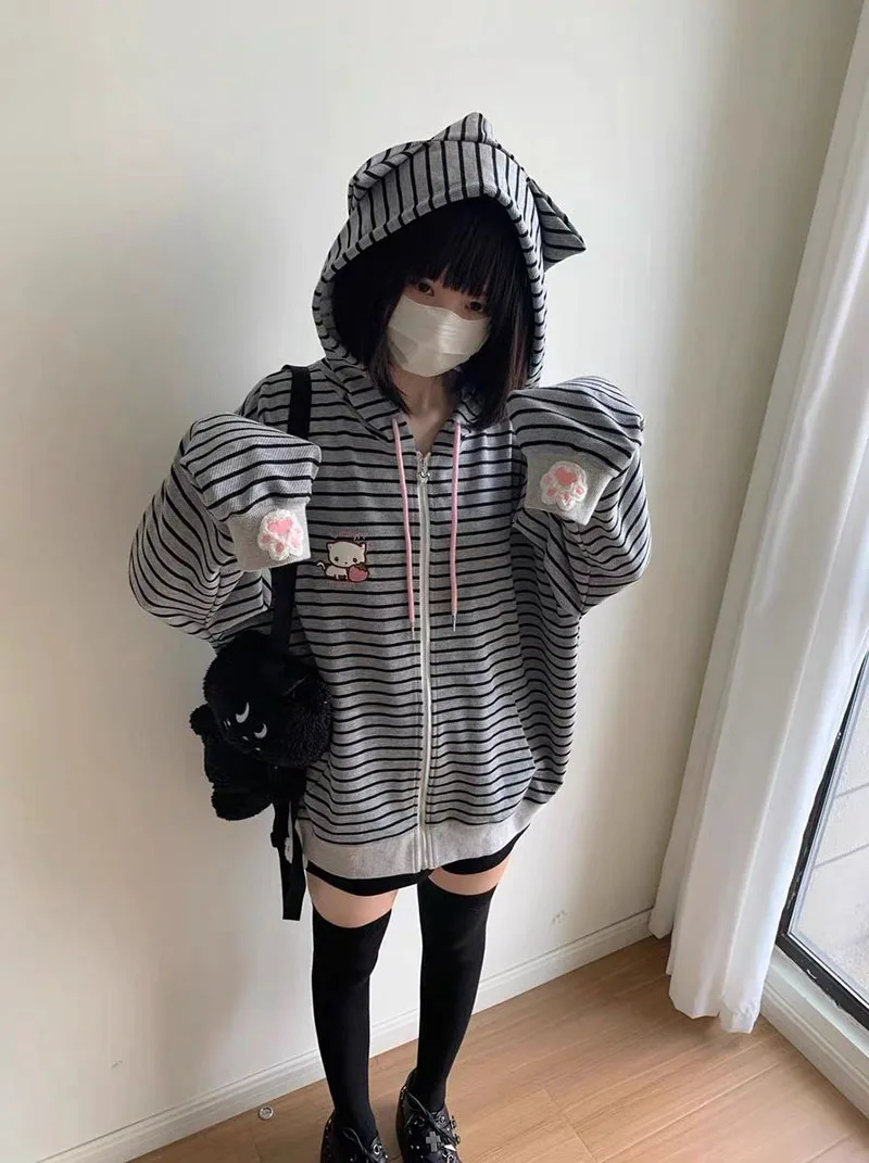 Streetwear Hoodies Women's Clothing Cute Cat Embroidered Ear Hooded Sweatshirts Coat 2024 Ropa Mujer Casual Fashion Y2k Hoodie