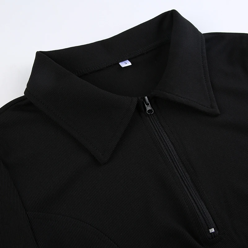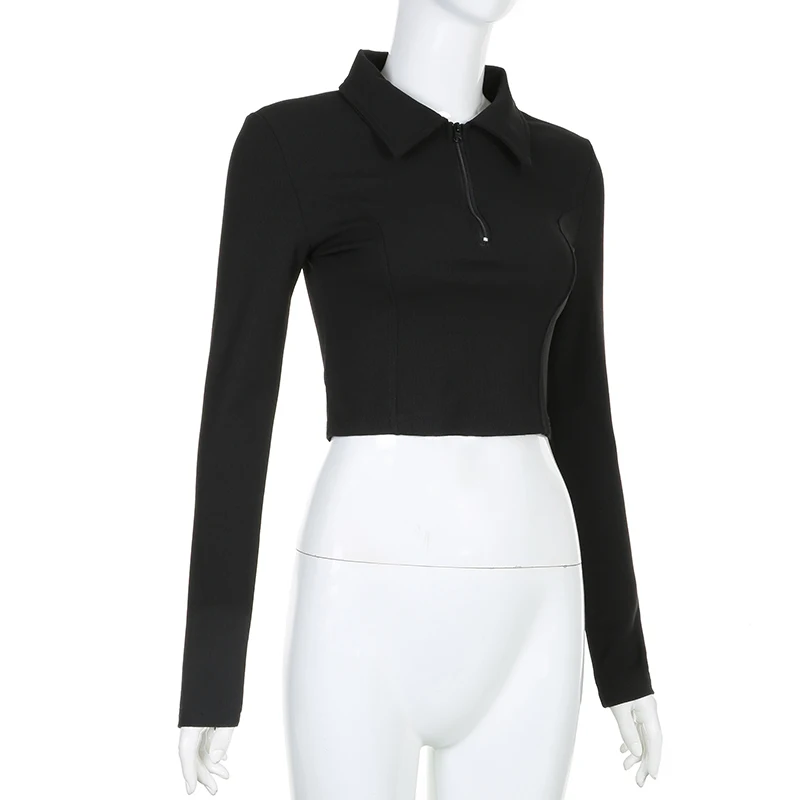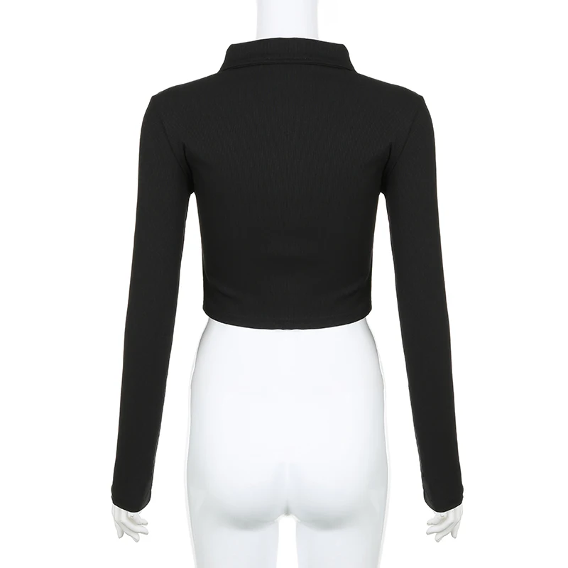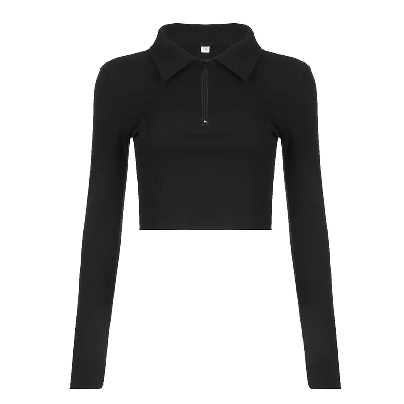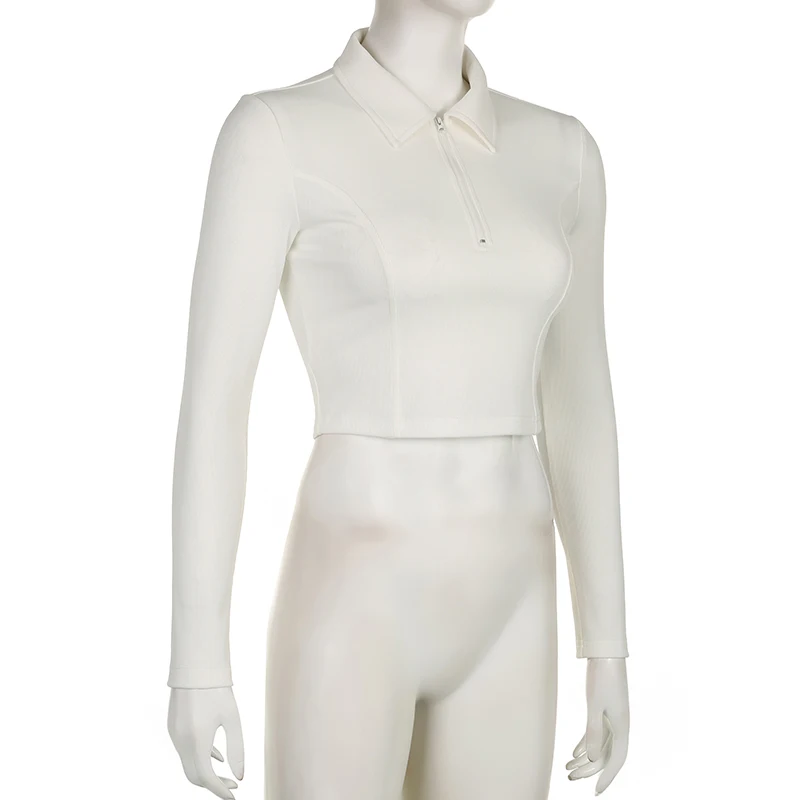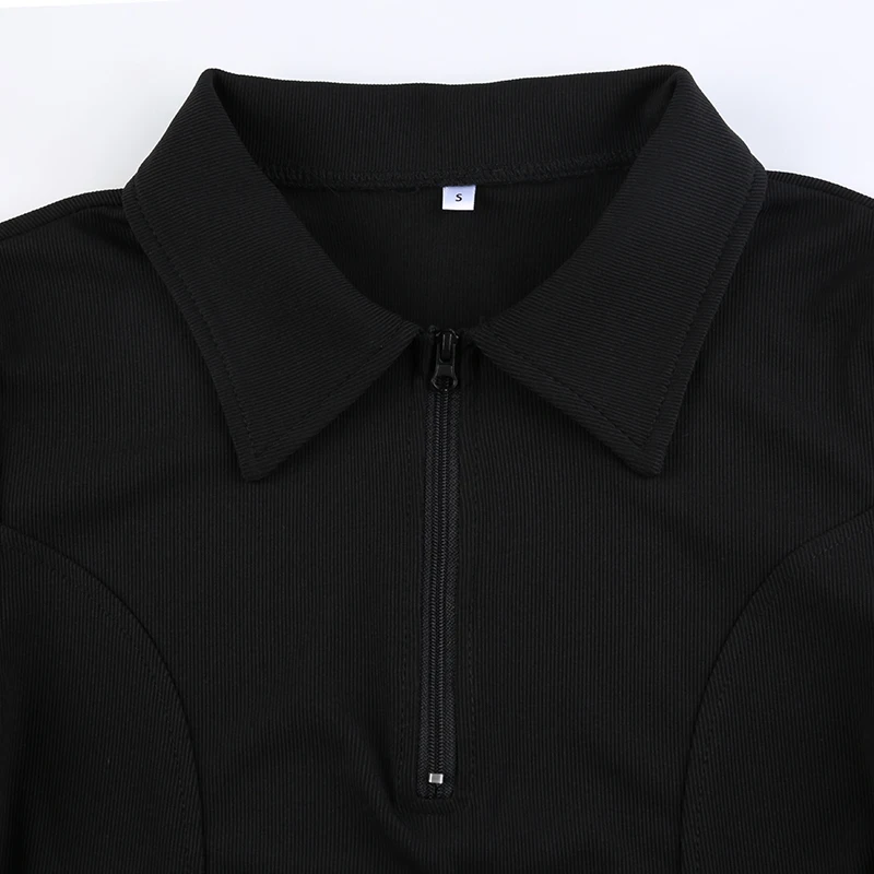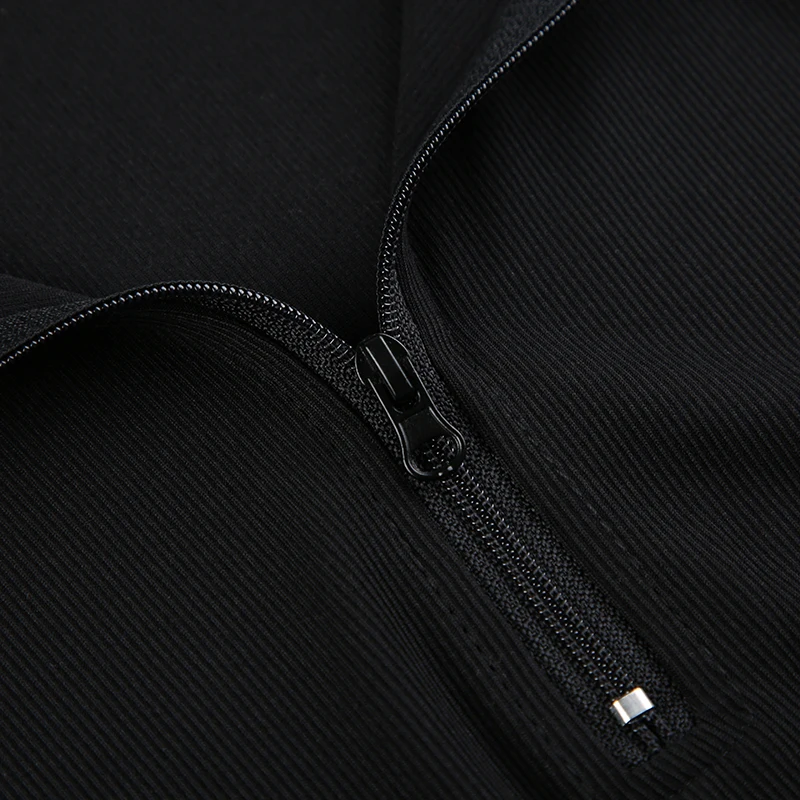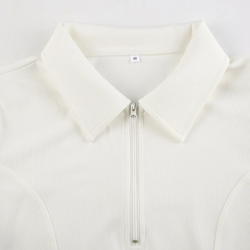 Streetwear Ribbed Knitted Stitch Autumn T-shirts for Women Basic Zipper All-Match Cropped Top Tee Fitness Casual Tops