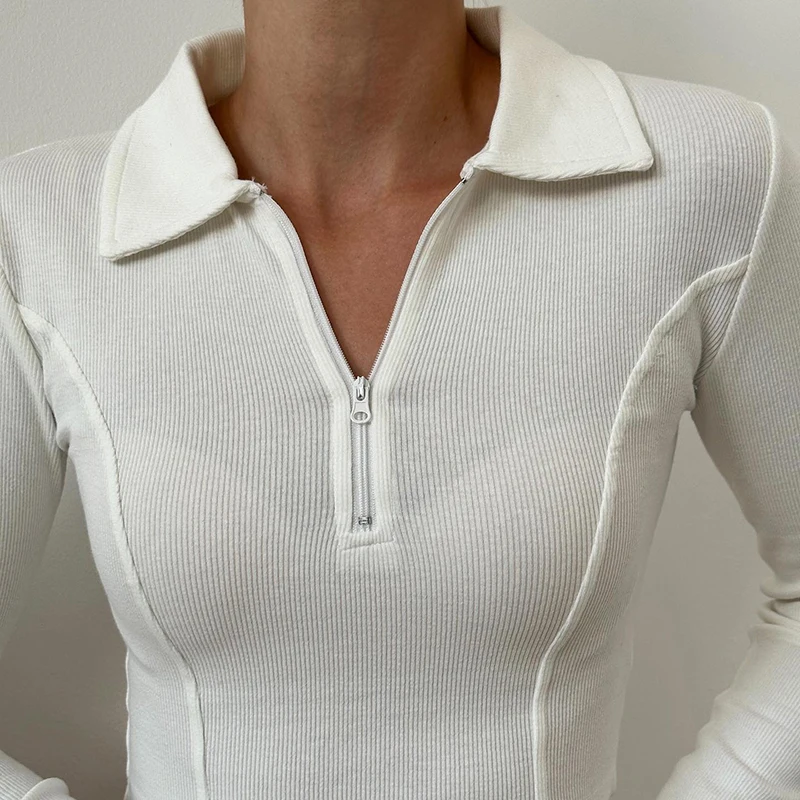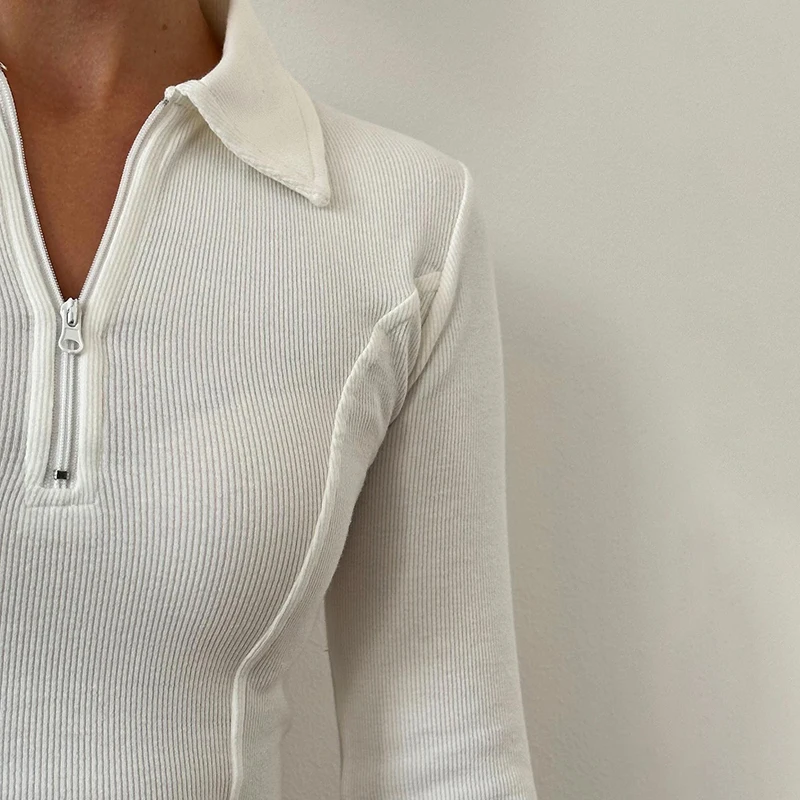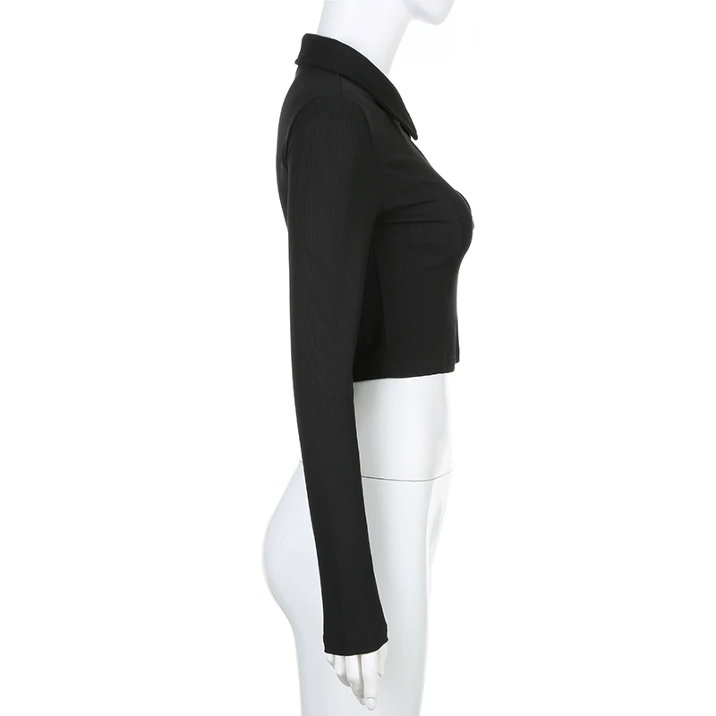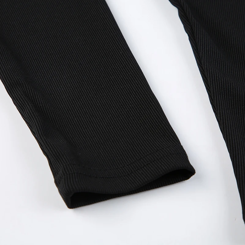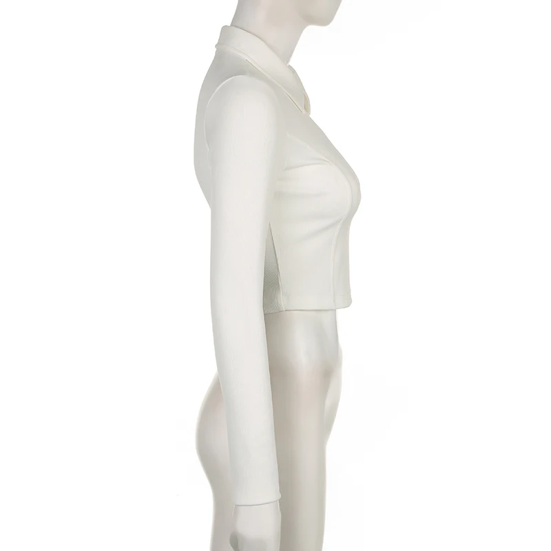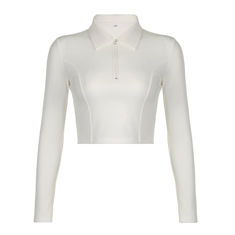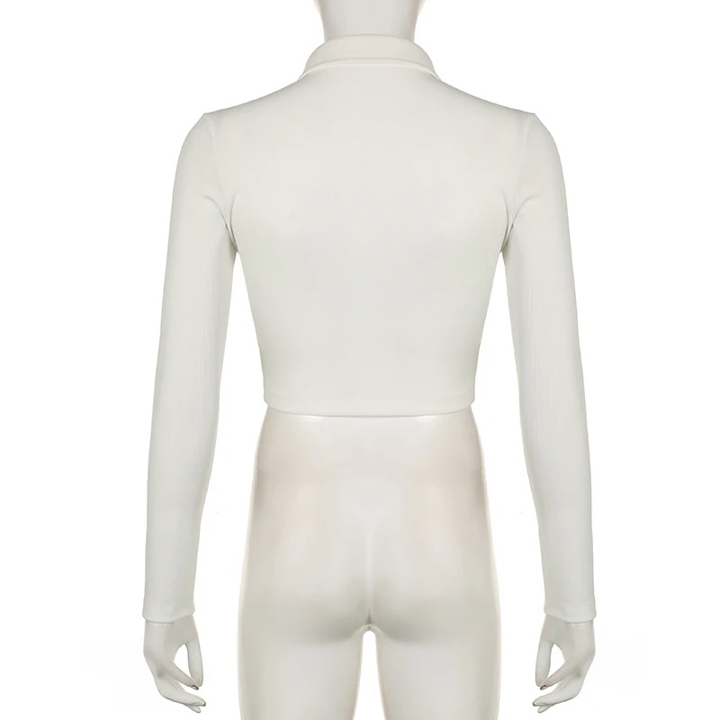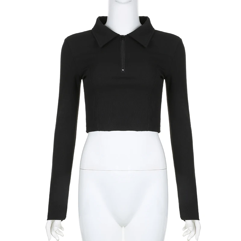 Streetwear Ribbed Knitted Stitch Autumn T-shirts for Women Basic Zipper All-Match Cropped Top Tee Fitness Casual Tops