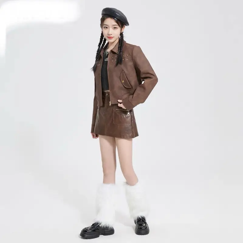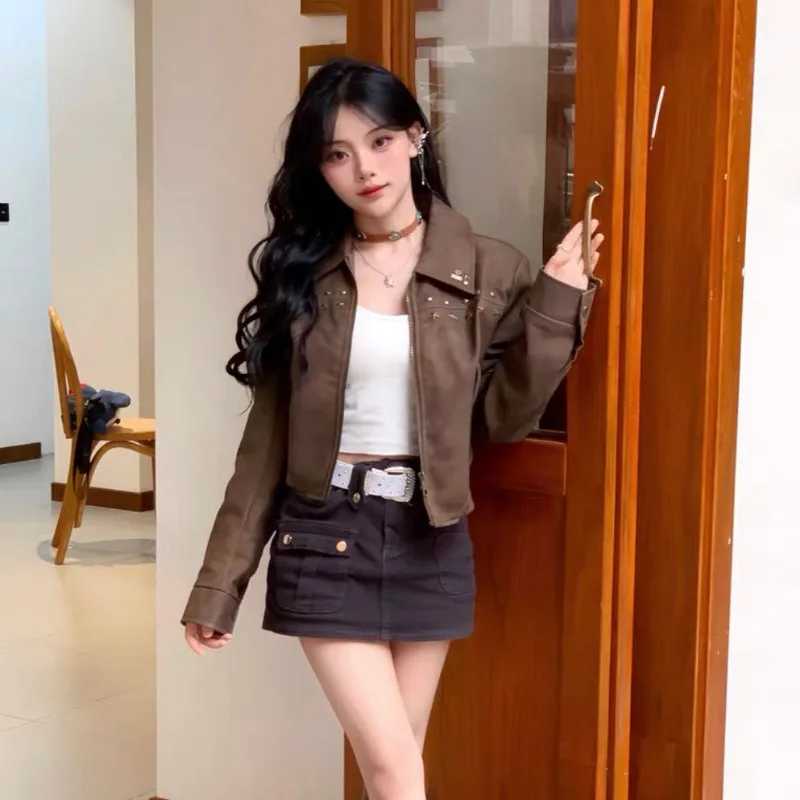Streetwear Vintage Leather Jackets Women Clothing Chic Rivet Casual PU Crop Tops 2024 Ropa Mujer Fashion Korean Harajuku Coats