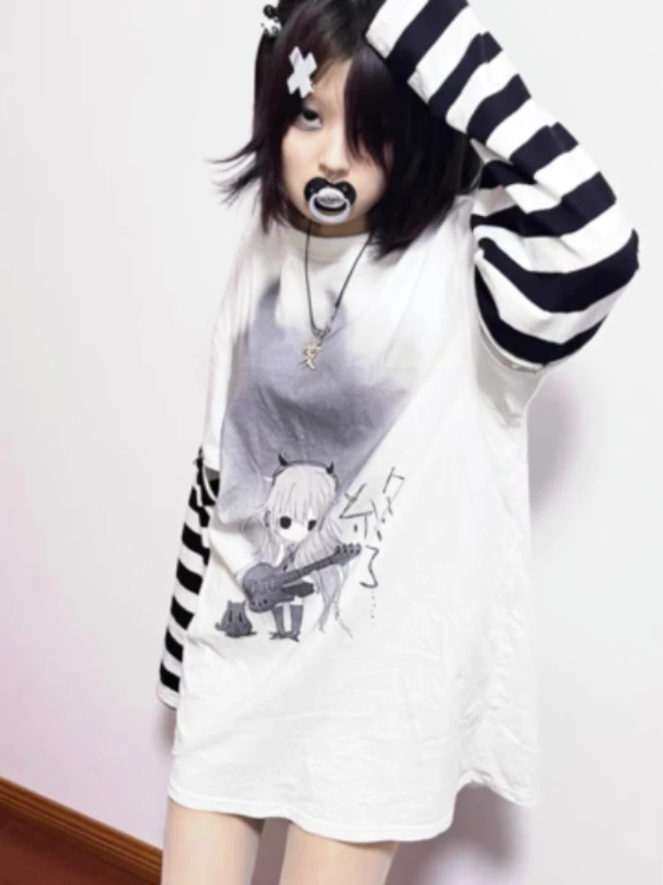 Streetwear Woman Tshirts Casual Punk Tees Y2k Tops 2024 Ropa Mujer Anime Fashion Camisetas Japanese Harajuku Oversized T Shirt