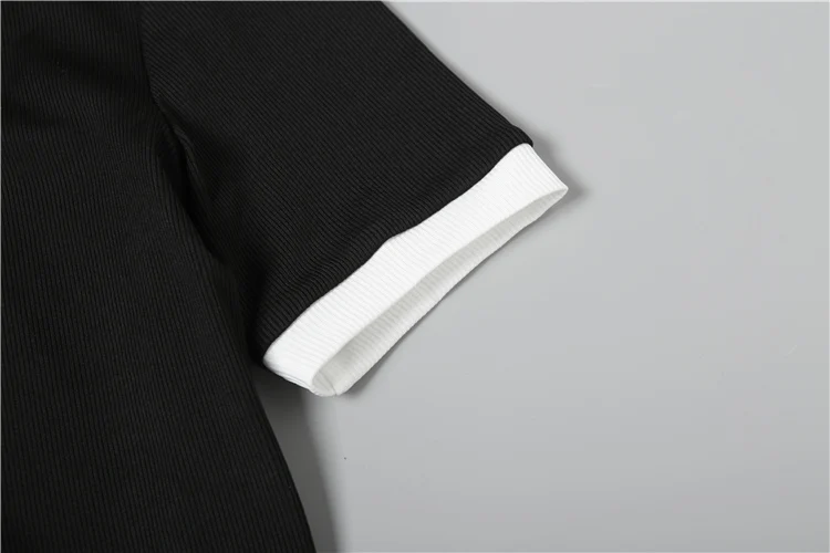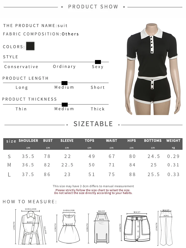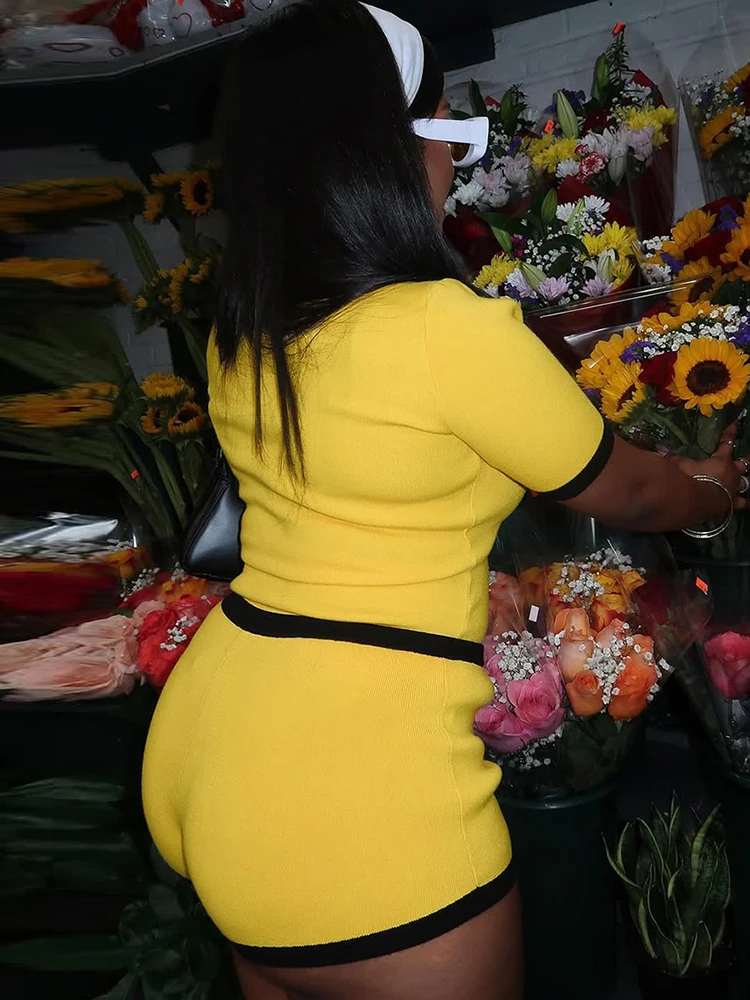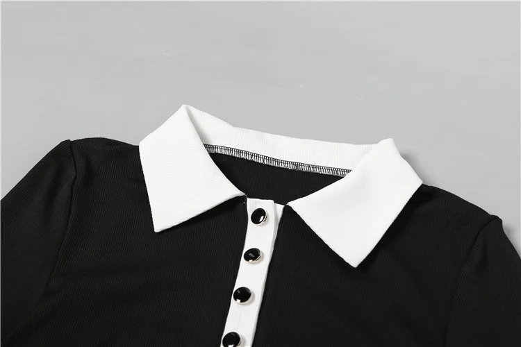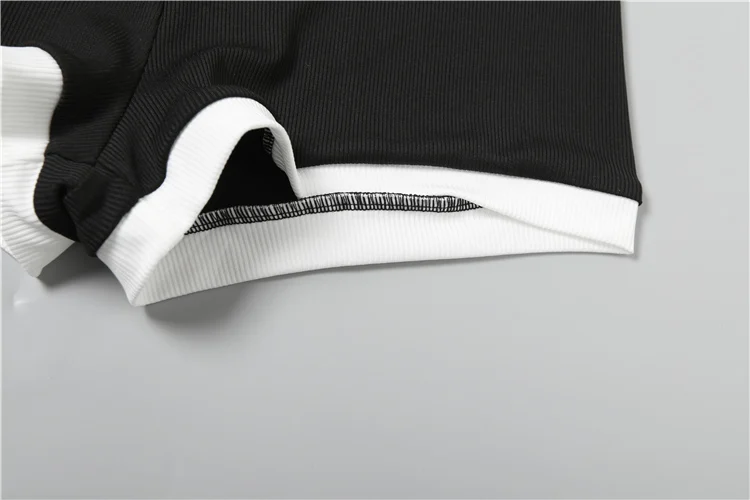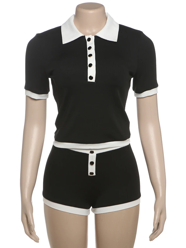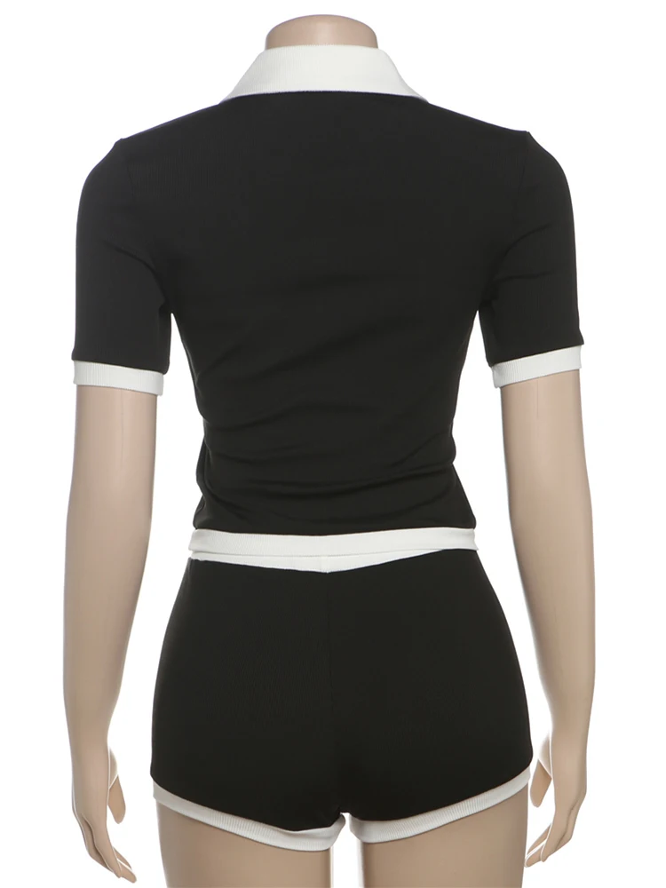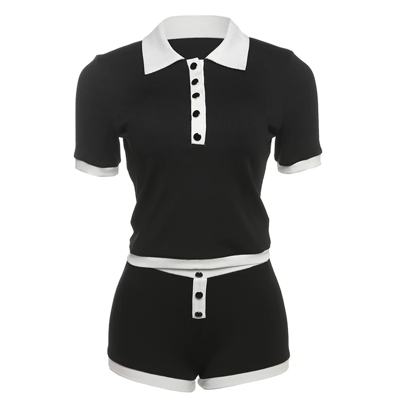 Stretch Casual 2 piece Set Women Tracksuit Hipster Polo Neck Crop Tops+Button Shorts Matching Skinny Sporty Streetwear