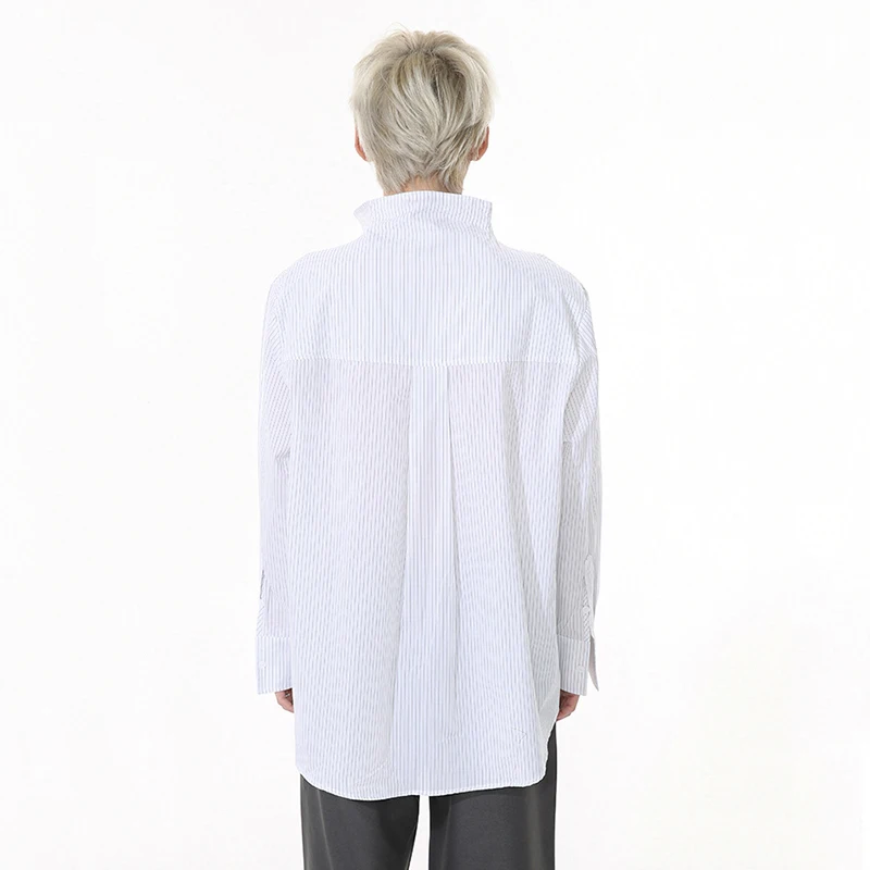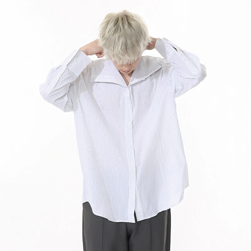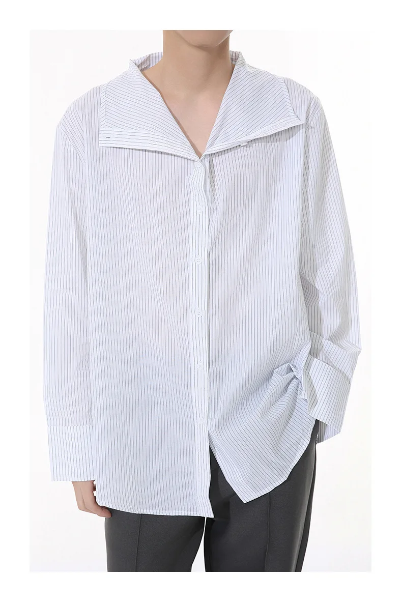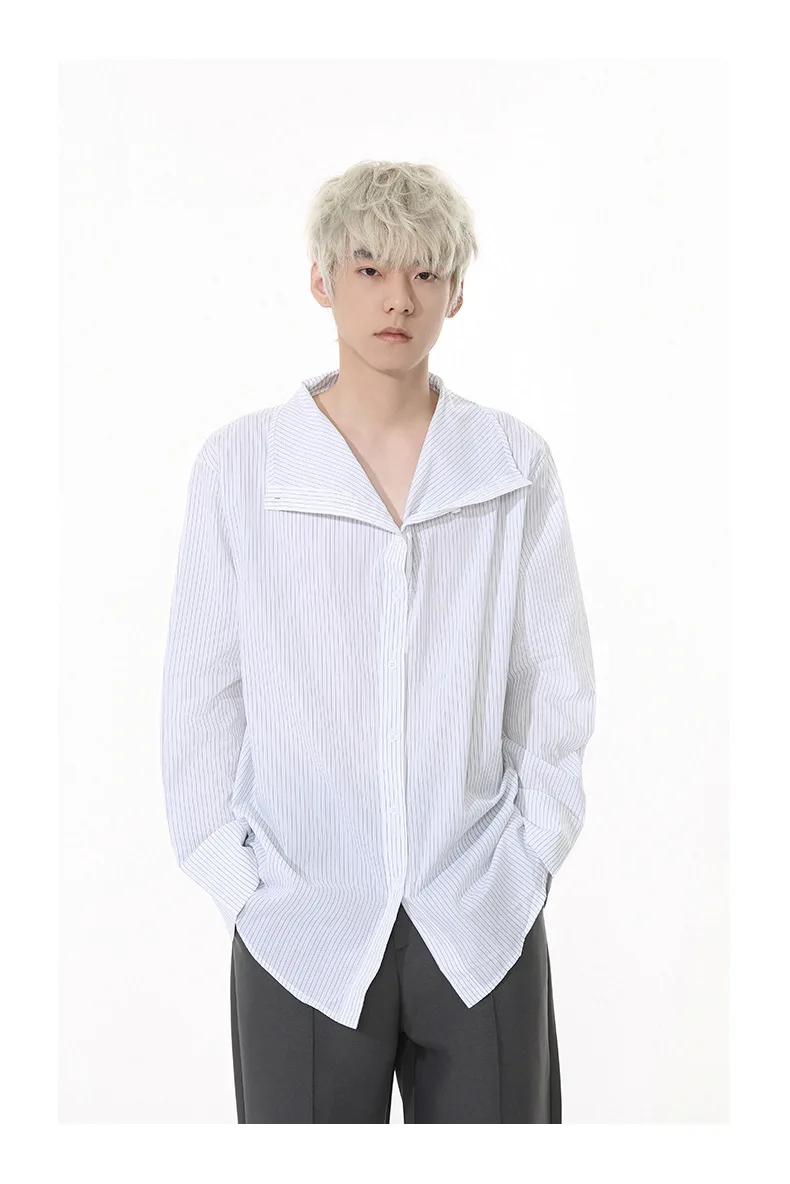Striped Design Men's Shirts Stand Collar Single Breasted Casual Tops Korean Style Long Sleeve Loose Male Shirt New 9W1261