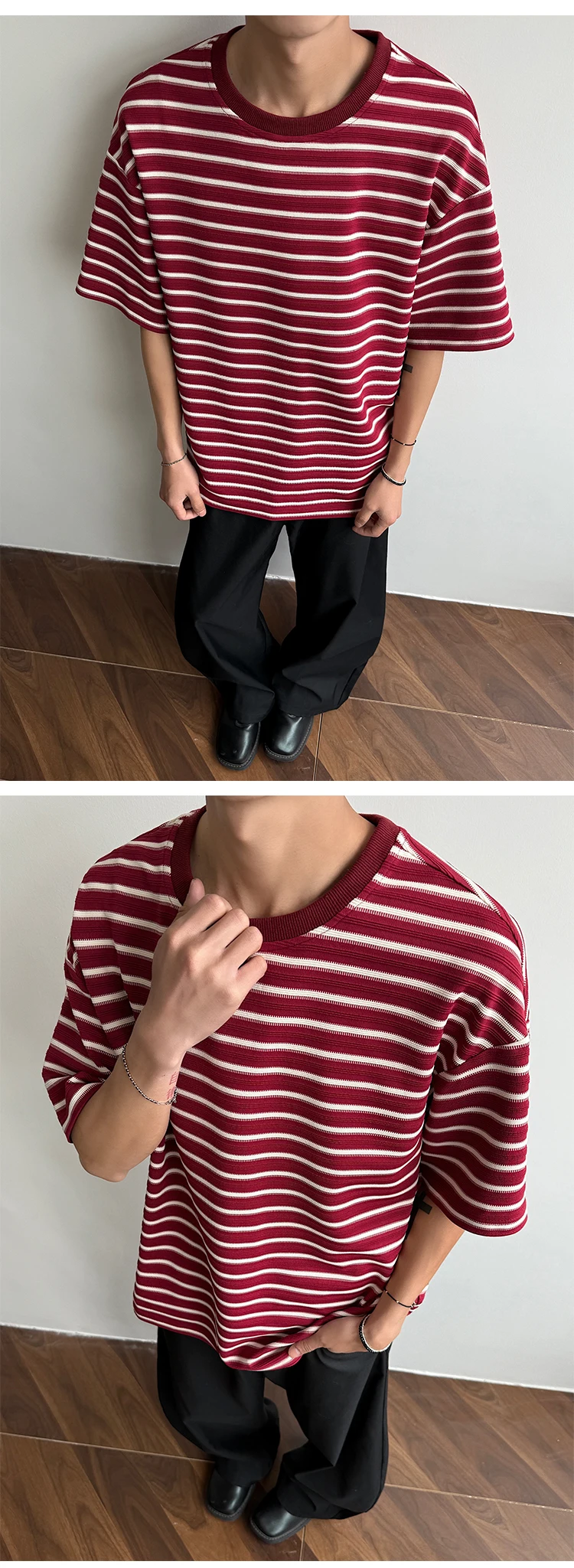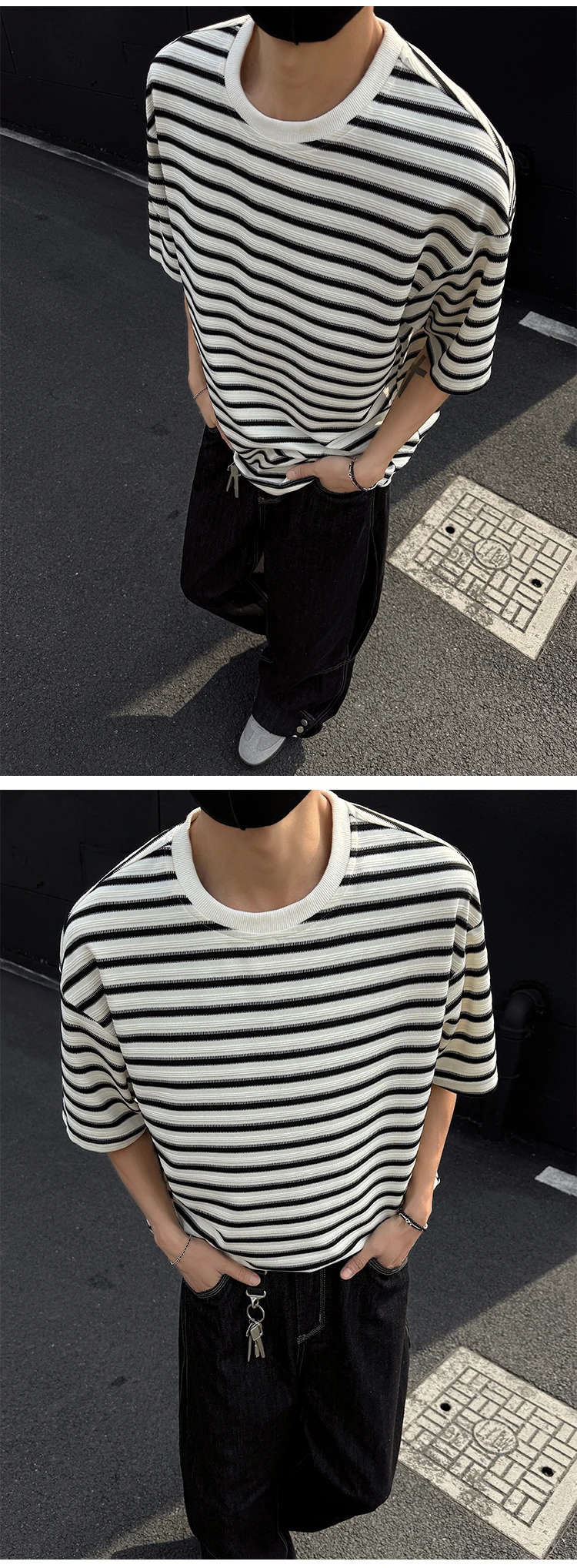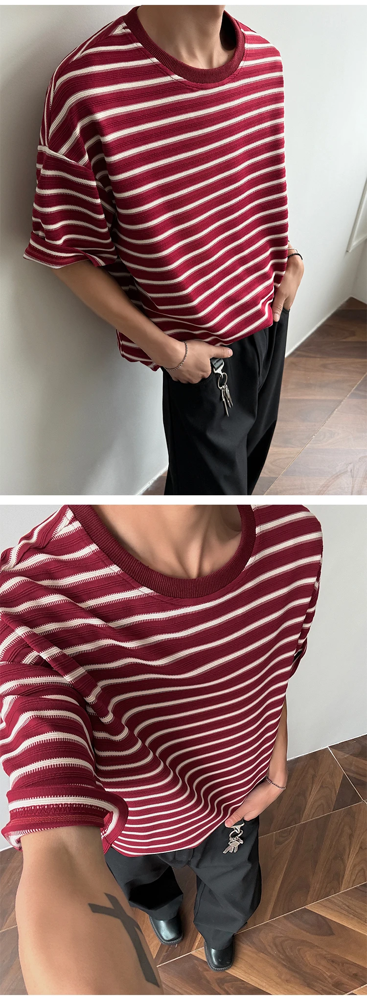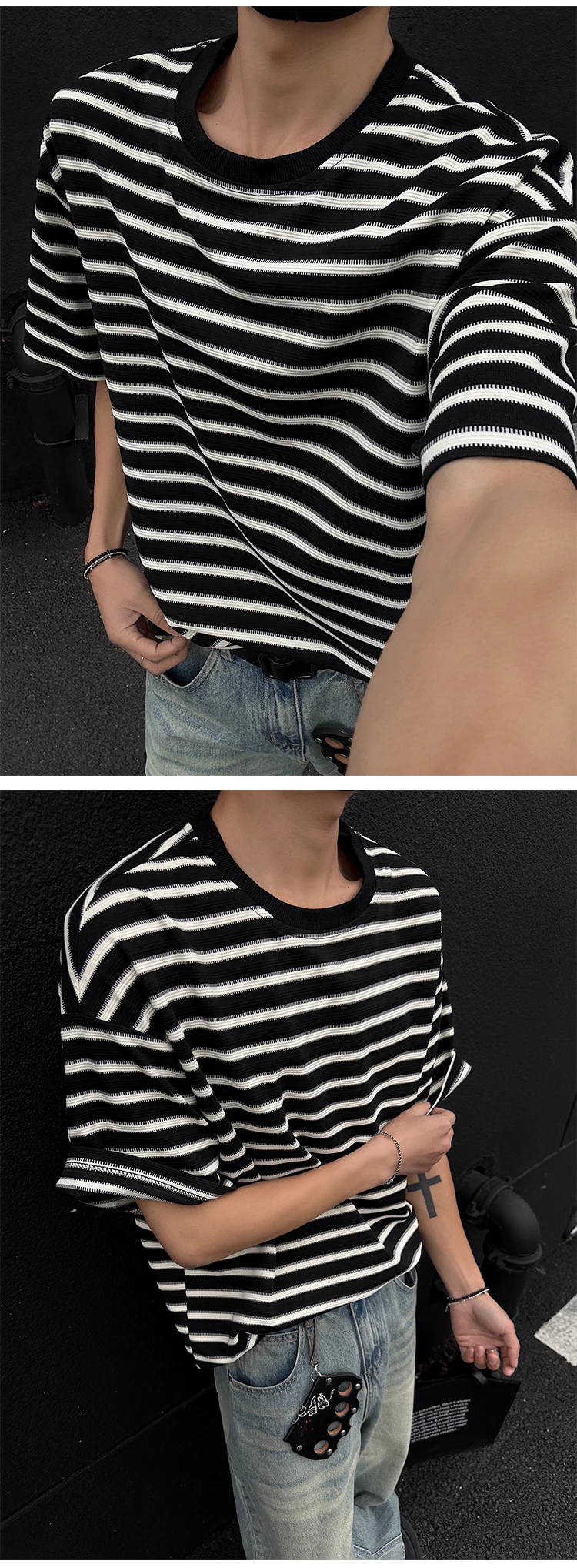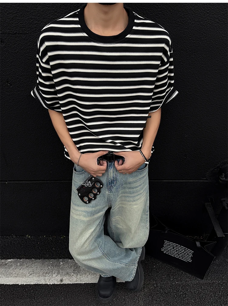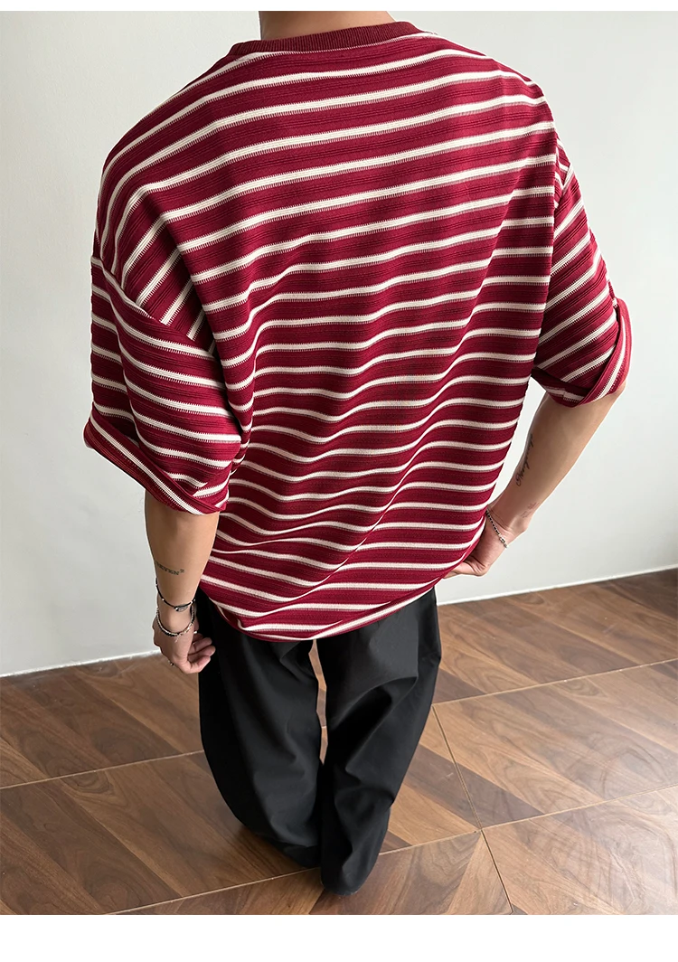 Striped Men's T-shirts New Summer Short Sleeve Loosse Round Neck Fashion Pullover Trendy Men's Top Contrast Color 9W1562