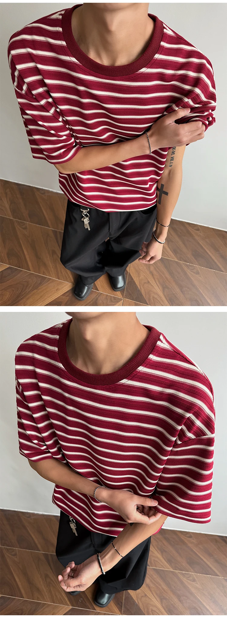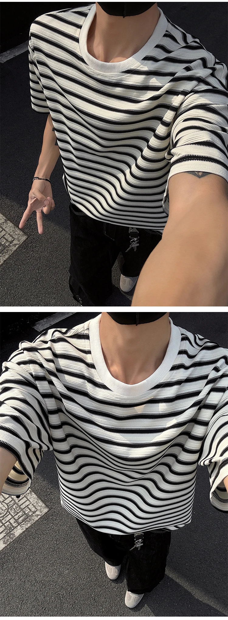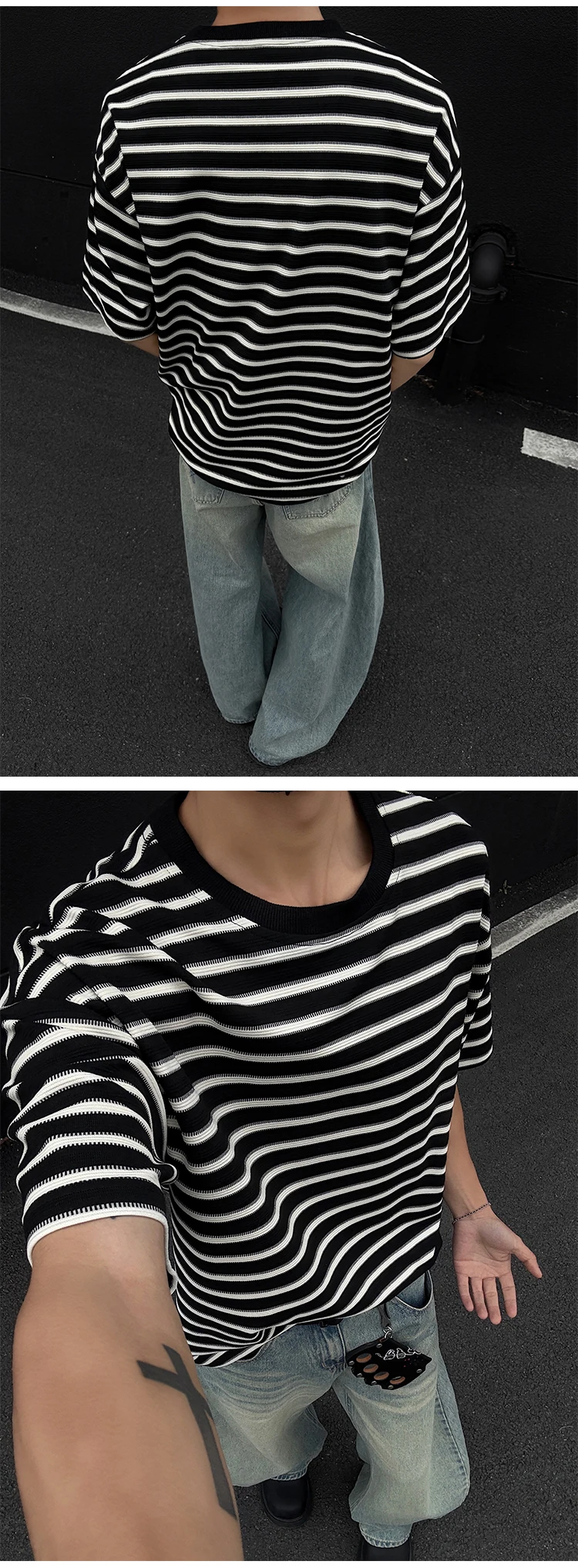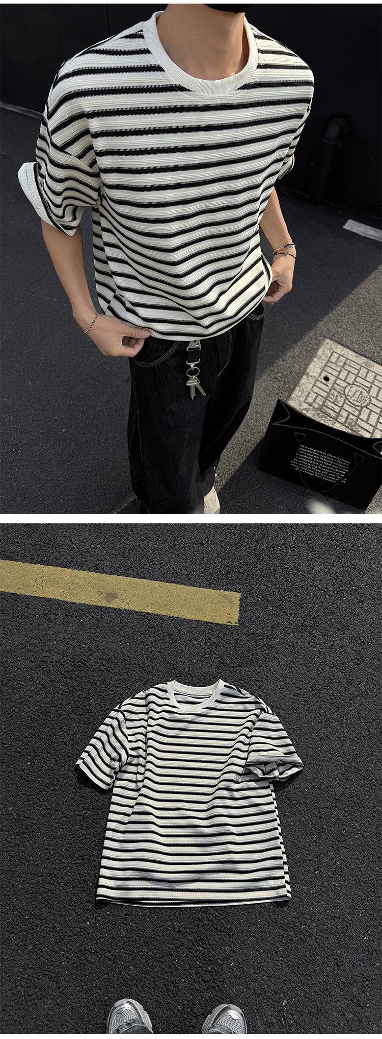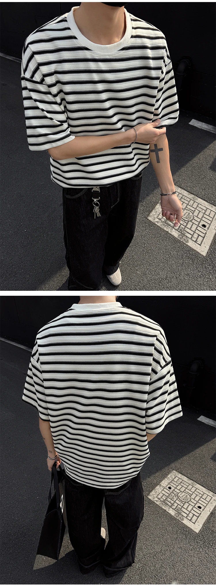 Striped Men's T-shirts New Summer Short Sleeve Loosse Round Neck Fashion Pullover Trendy Men's Top Contrast Color 9W1562