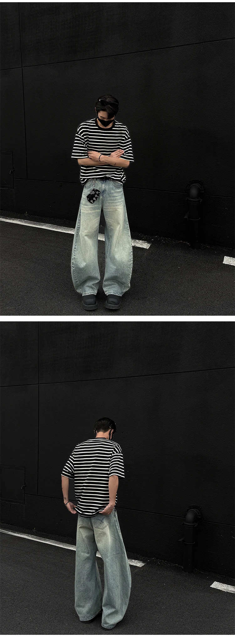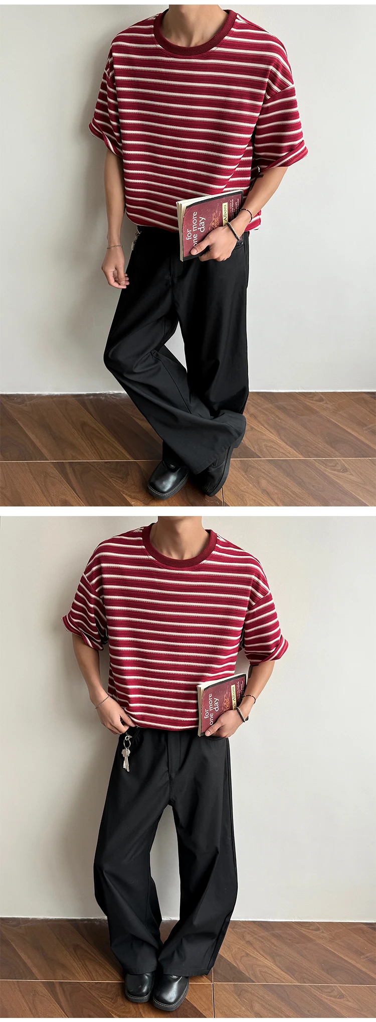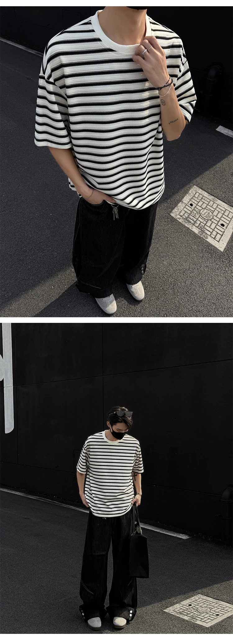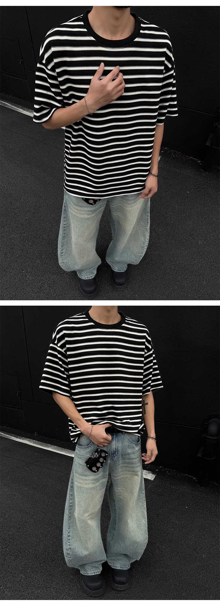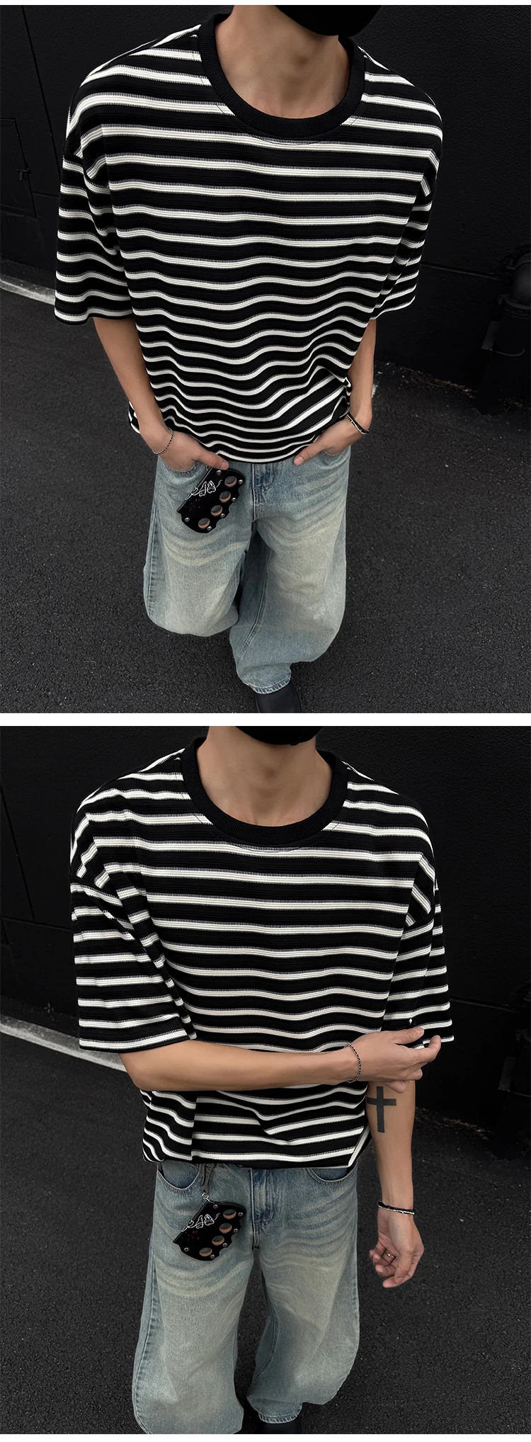Striped Men's T-shirts New Summer Short Sleeve Loosse Round Neck Fashion Pullover Trendy Men's Top Contrast Color 9W1562