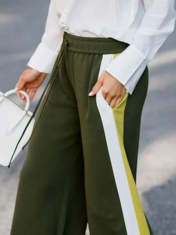 Loose Wide Leg Contrast Color Drawstring Elasticity Split-Joint Pants Trousers