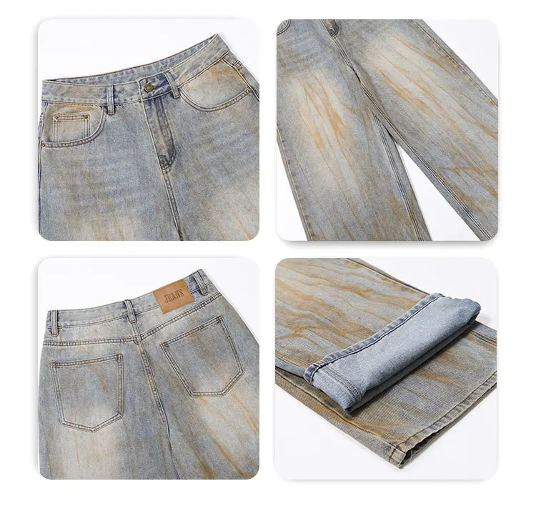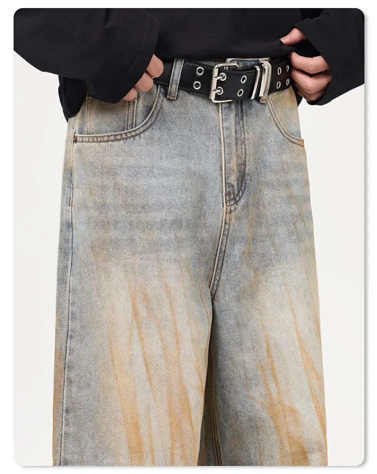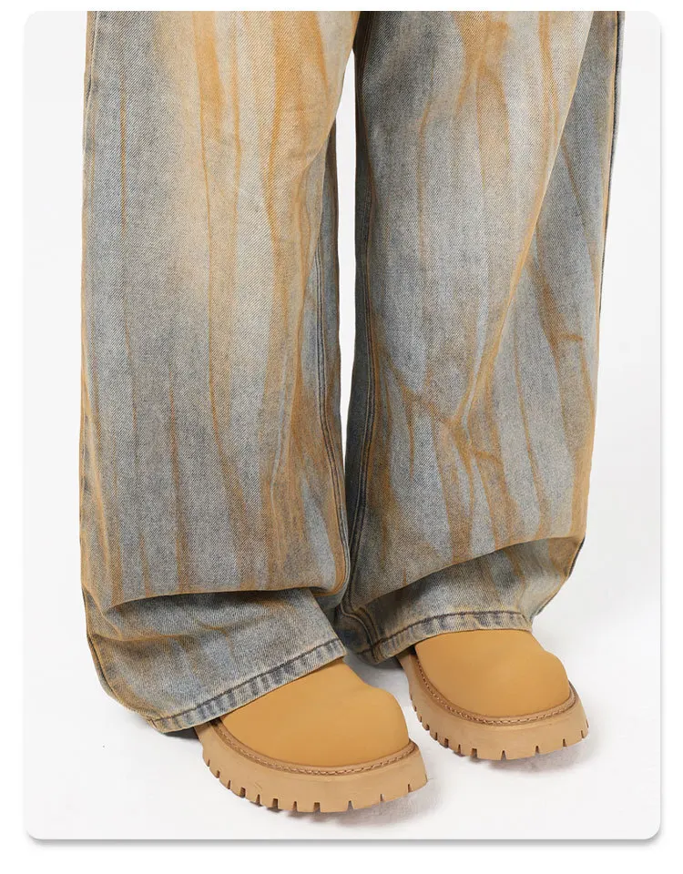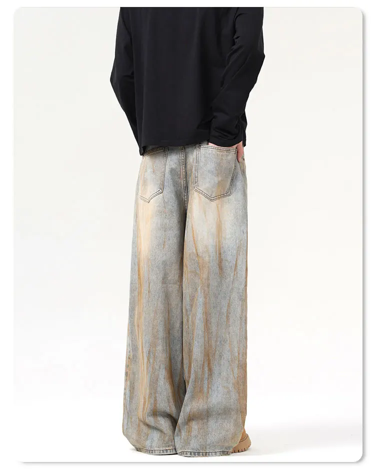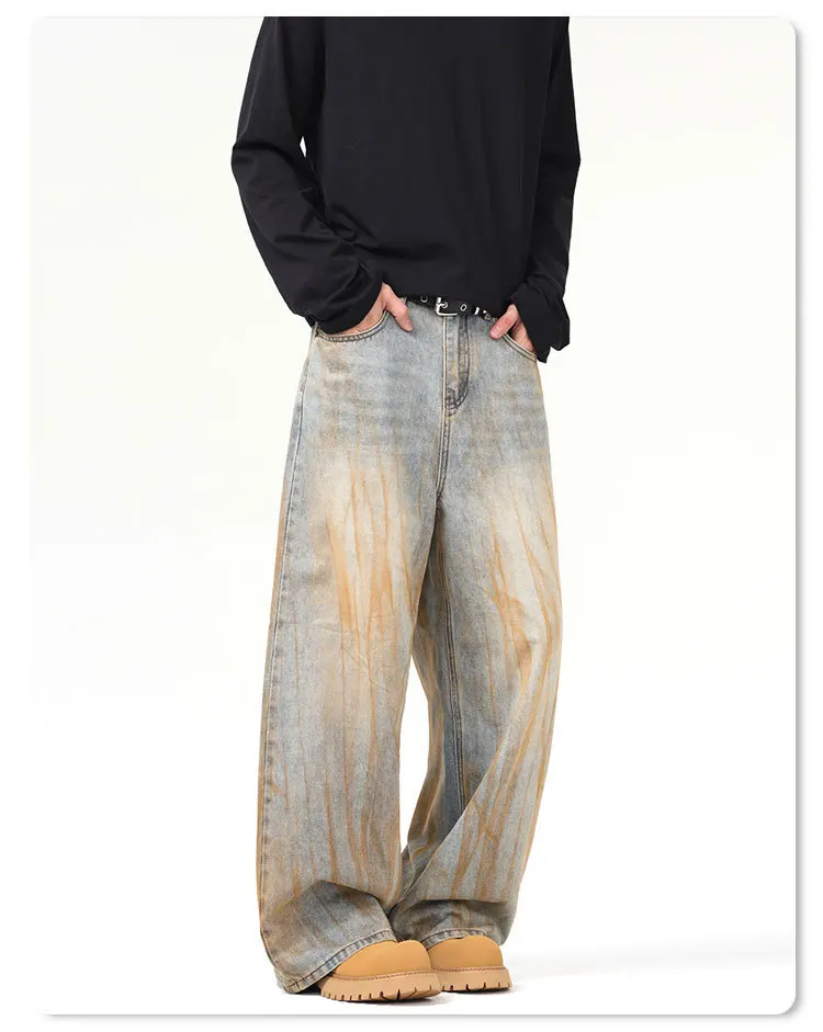 Stylish Men's Jeans American Distressed Baggy Straight Wide Leg Design Tie-dyed Personalized Male Trousers 2025 9W1561