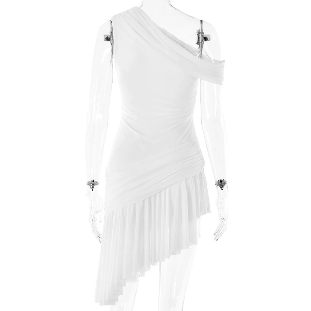 Summer 2024 New Sexy Spicy Girl Slim Dress Women Slant Neck Sleeveless Ruffle Edge Mesh Dress Elegant Party Club Vestido