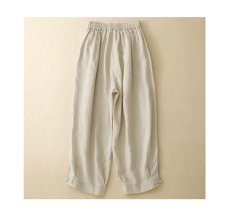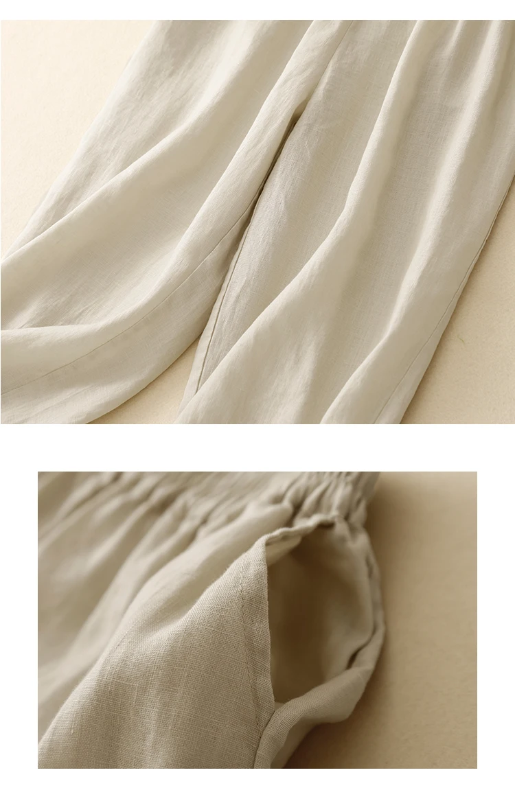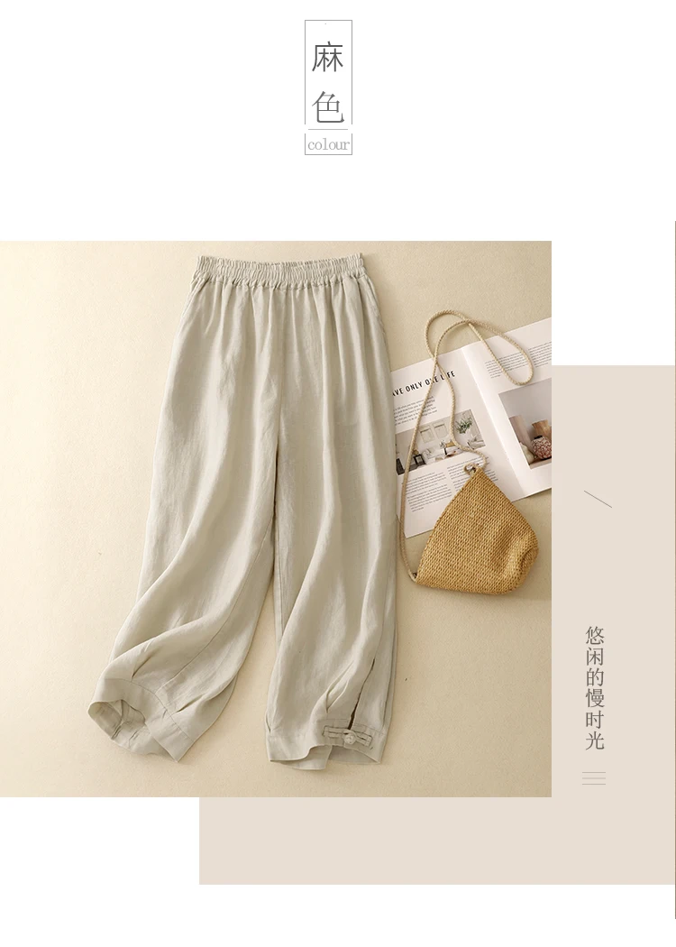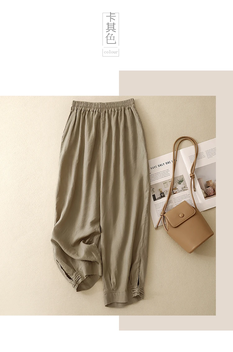 Summer Beige Cotton Straight Wide Leg Ankle-length Lantern Pants Women Pink Green Casual Loose Elastic High Waist Large Size New