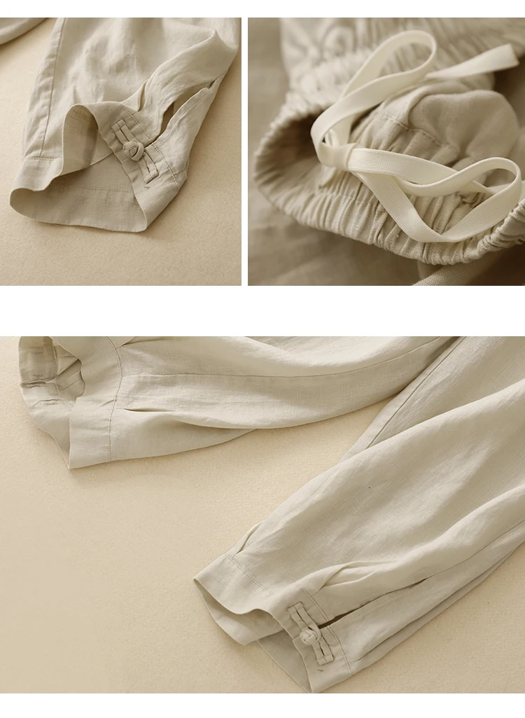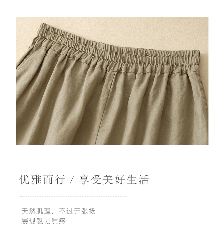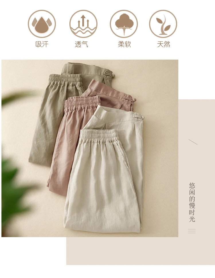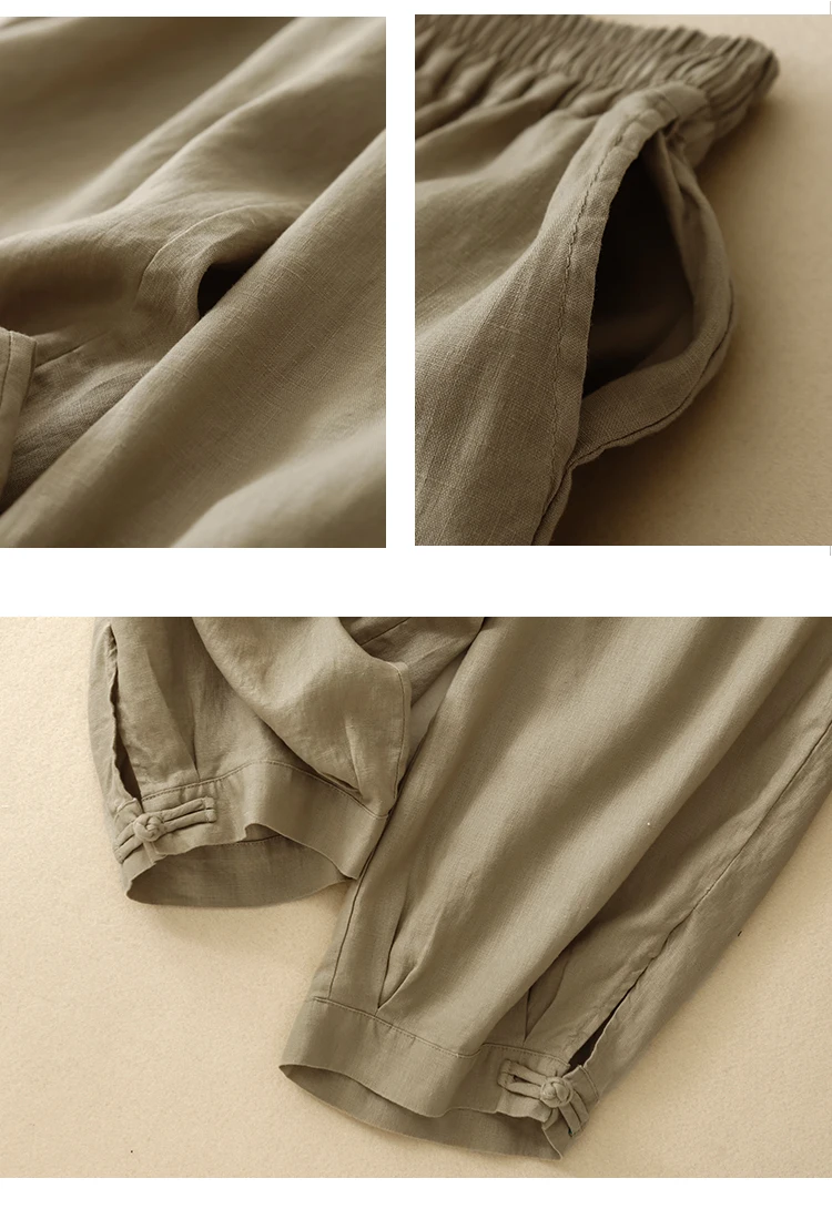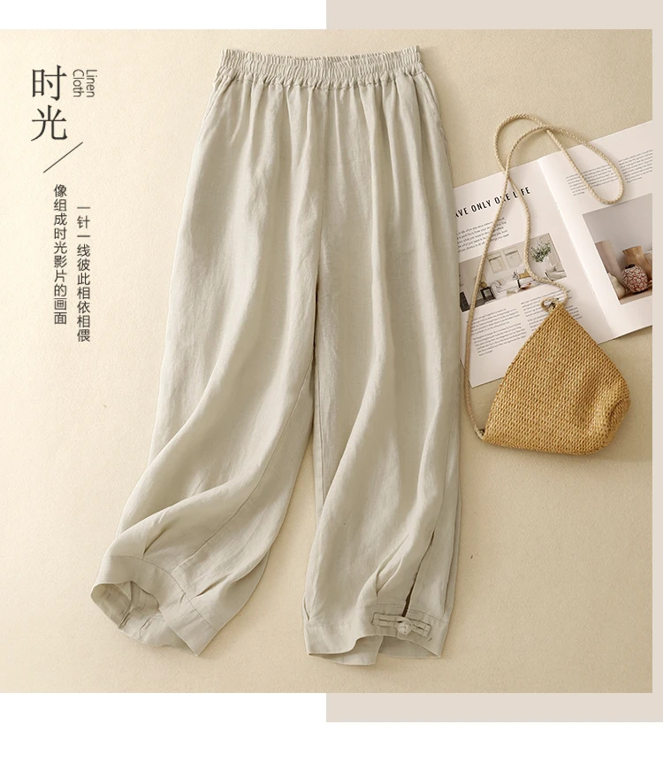 Summer Beige Cotton Straight Wide Leg Ankle-length Lantern Pants Women Pink Green Casual Loose Elastic High Waist Large Size New