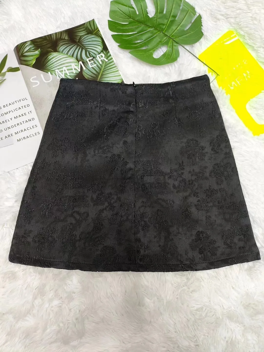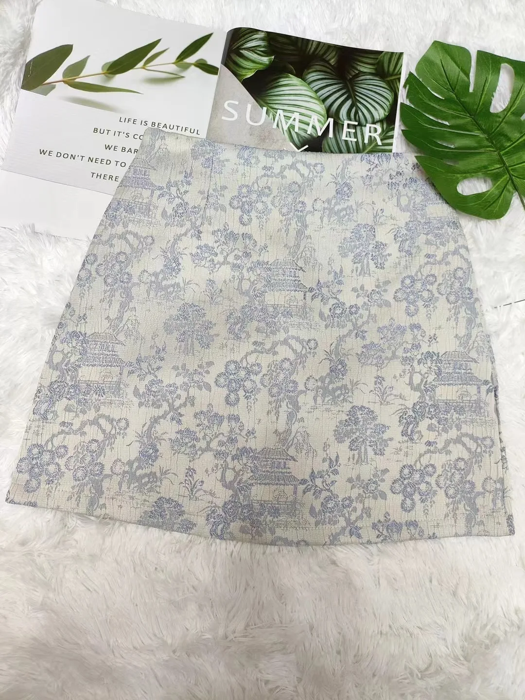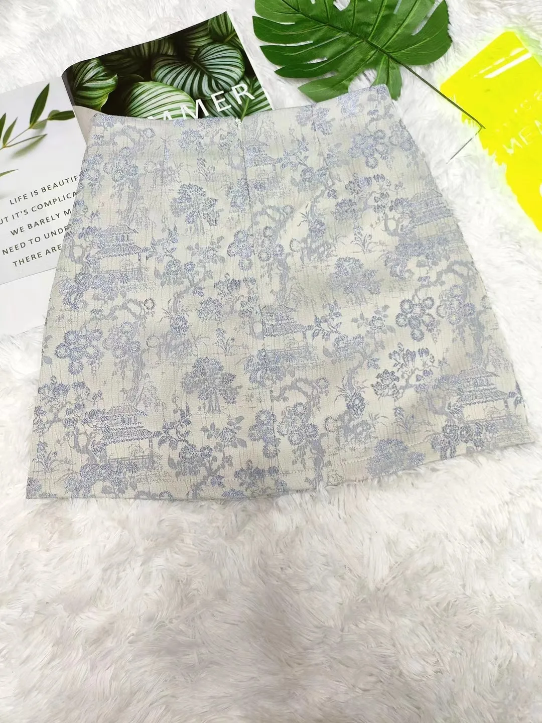 Summer Blue Chinese Jacquard Women's Half Skirts New Fashion Black Wrap Hip Slim High Waist Streetwear Beige Japanese Clothing