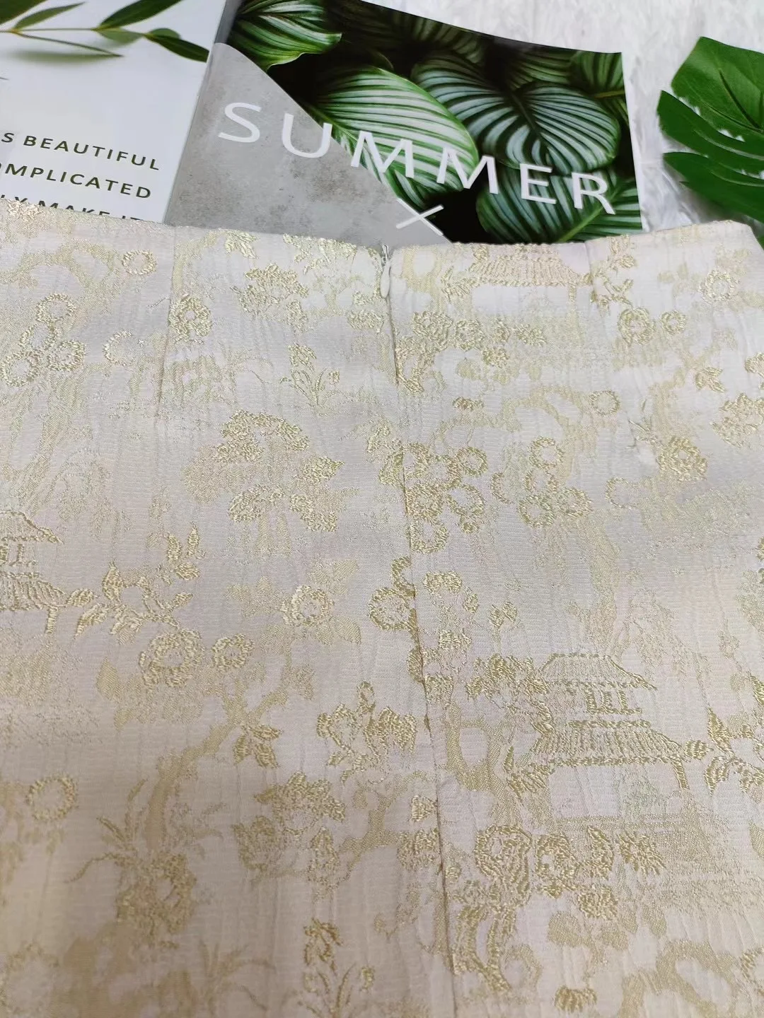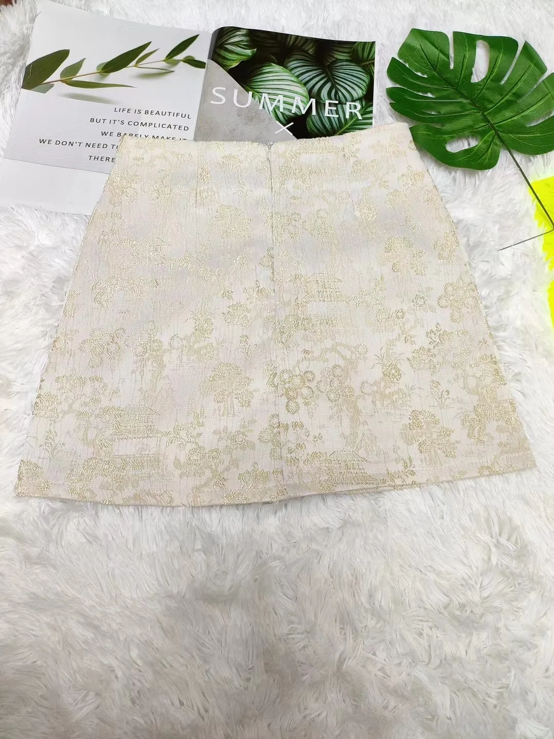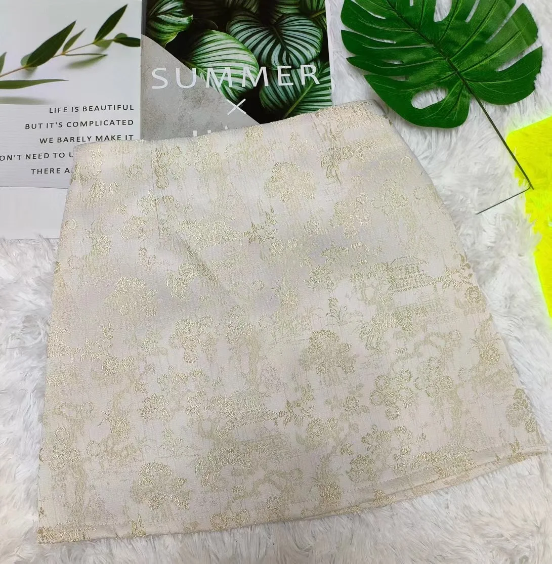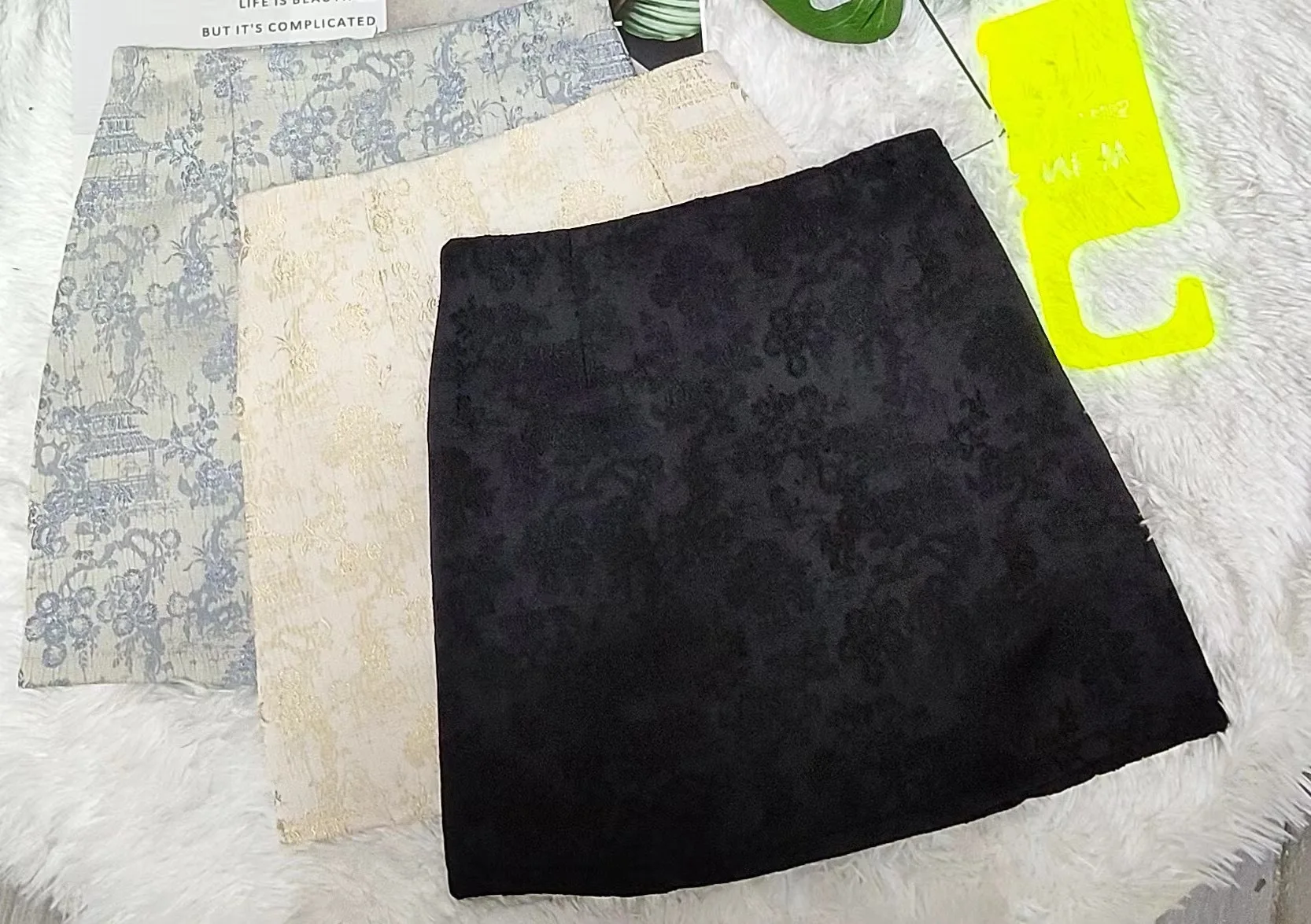 Summer Blue Chinese Jacquard Women's Half Skirts New Fashion Black Wrap Hip Slim High Waist Streetwear Beige Japanese Clothing