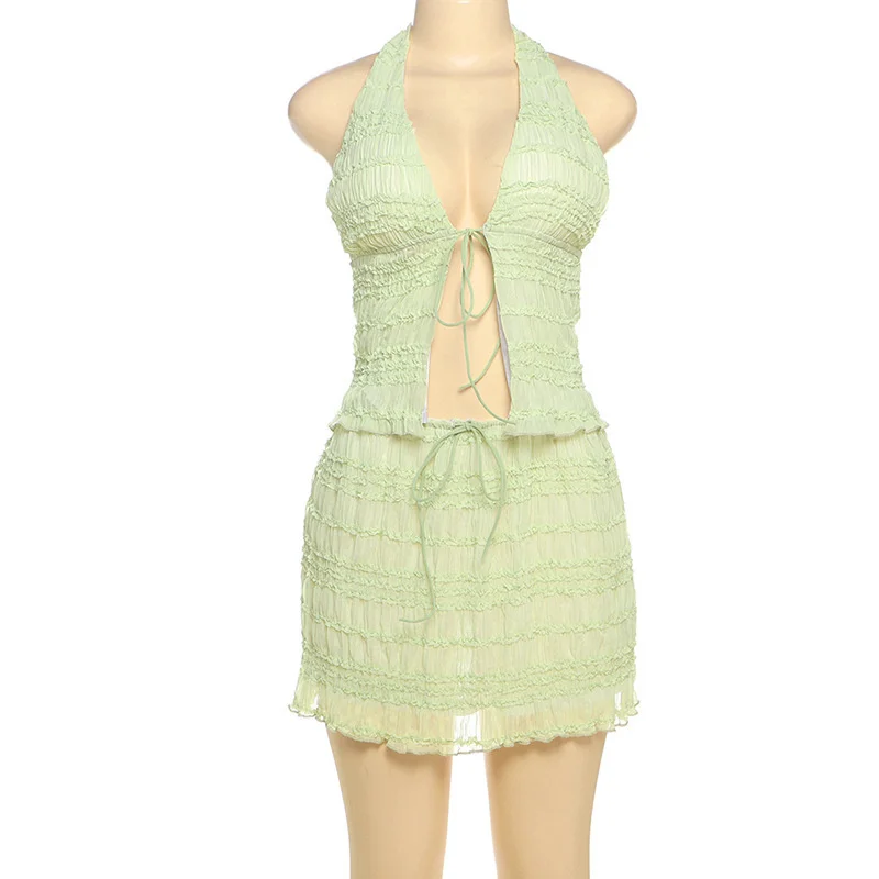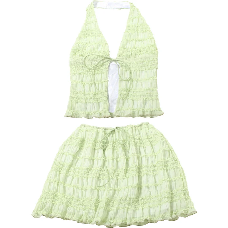 Summer Fashion Skirt Two Piece Sets Women Halter Tank Tops And Hot Skirt Female Beach Club Party Sexy 2 Piece Set