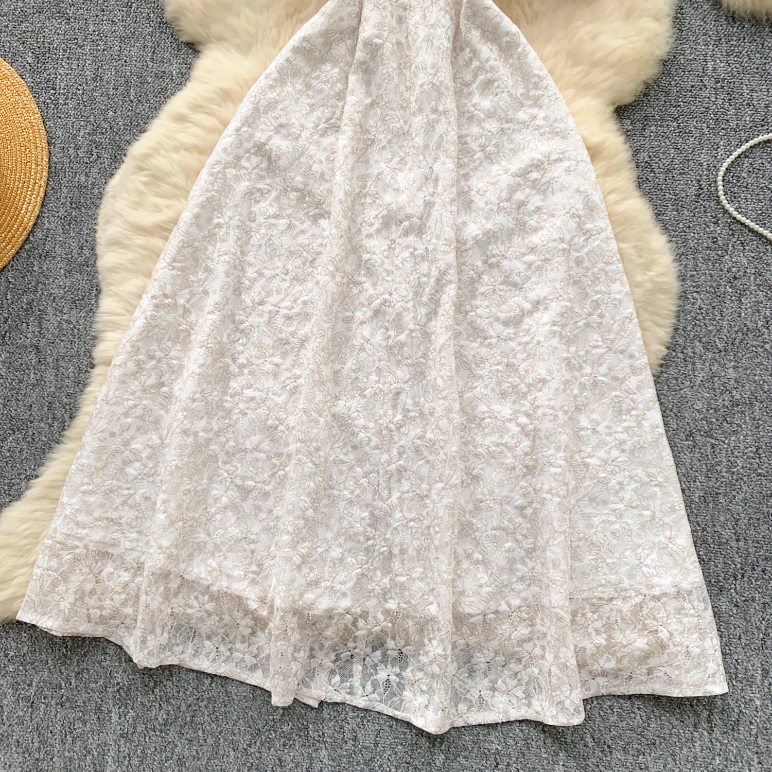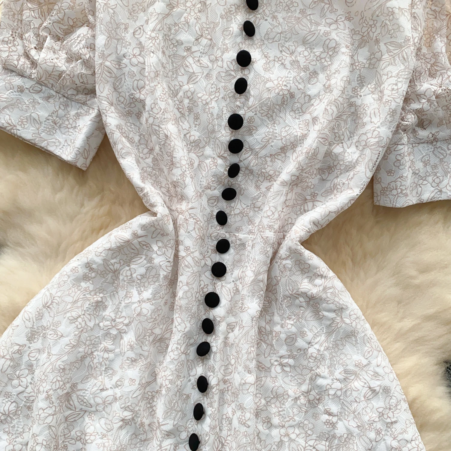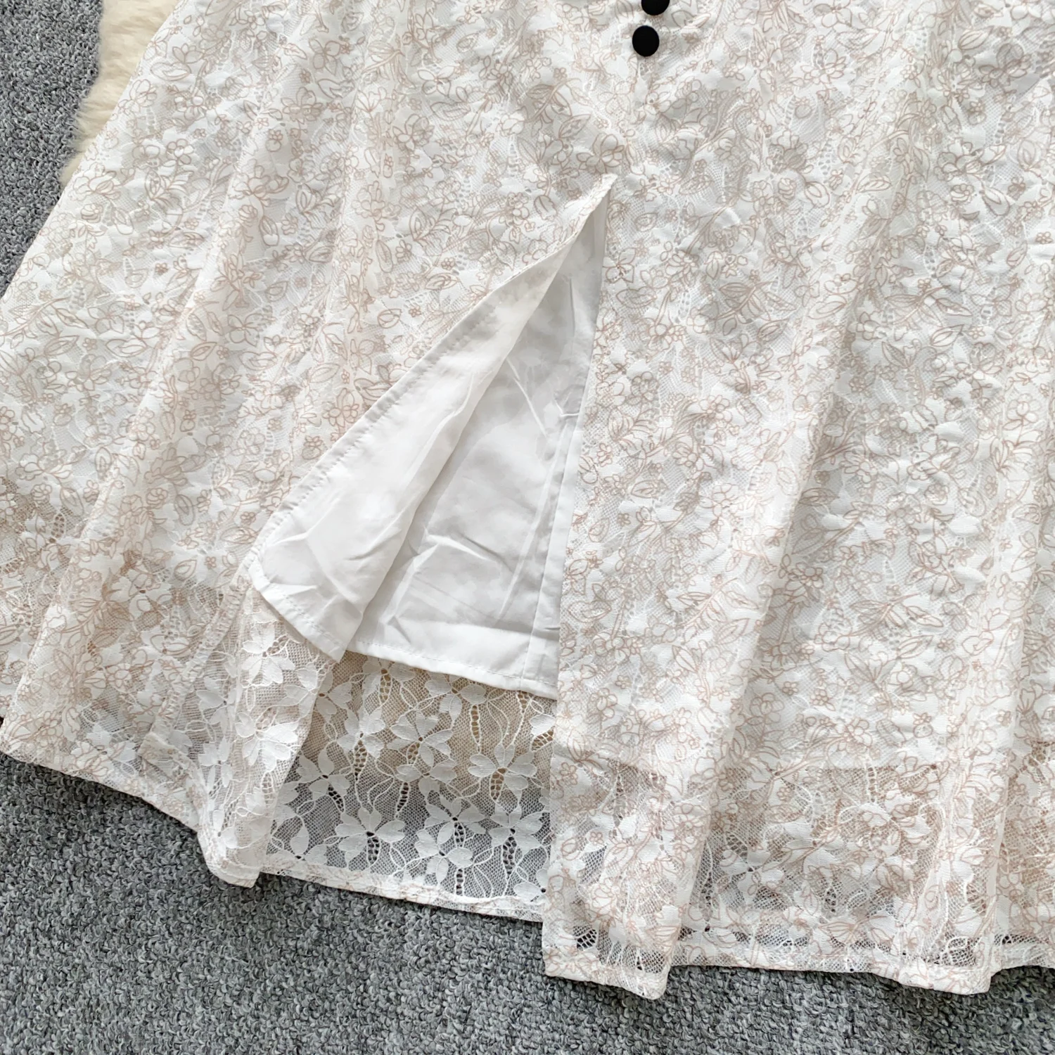 Summer French Retro White Lace Elegant Short Sleeve Long Dress For Women High Waist Slim Button Designer Party Princess Dresses