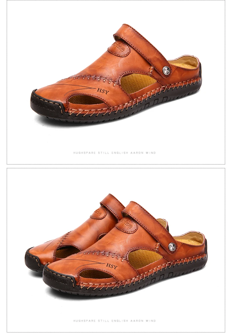 Summer Genuine Leather Sandals Men Outdoor Beach Sandals Flat Comfortable Fashion Mens Breathable Water Trekking Shoes