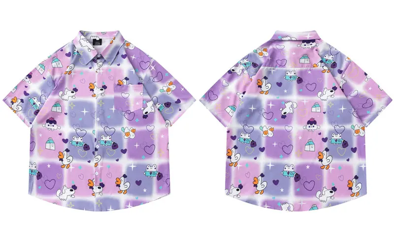 Summer Hawaiian Shirts Streetwear Funny Cartoon Graphic Printed Button Up Short Sleeve Beach Blouse Harajuku Casual Baggy Tops