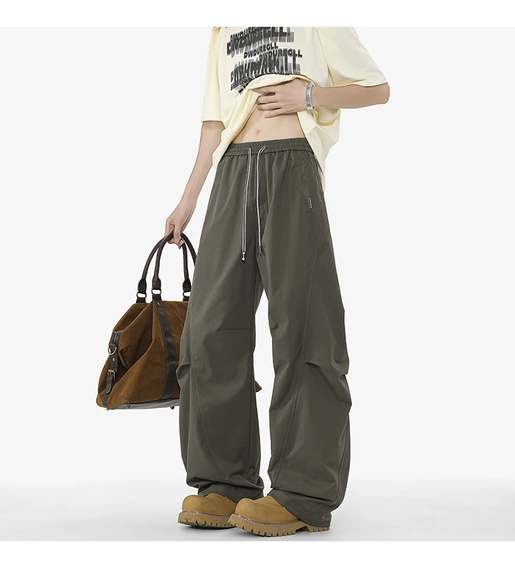 Summer Men's Casual Pants Splicing Solid Color Curved Knife Clothing Male American Floor Length Design Trousers 9W1391