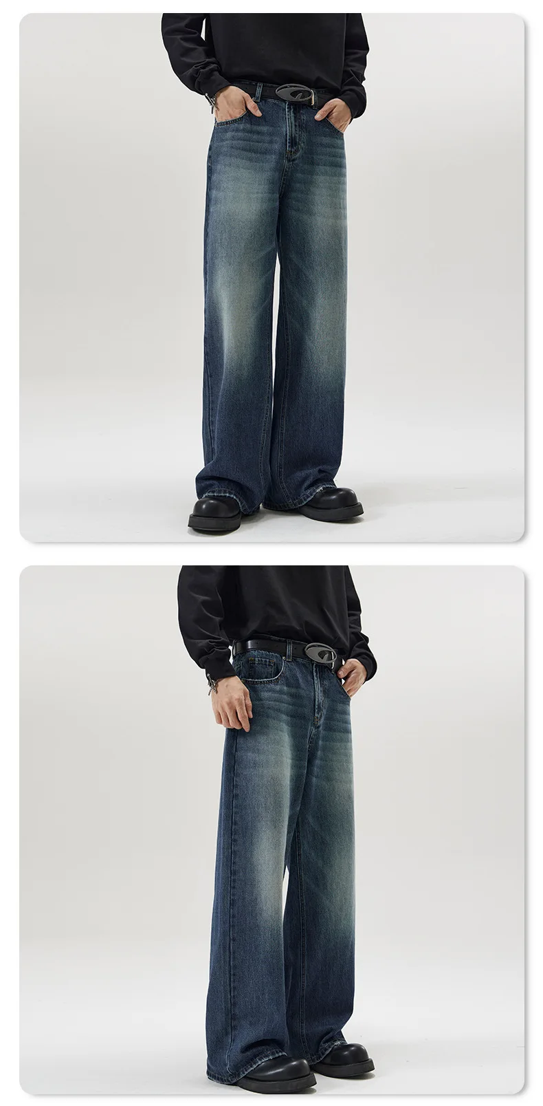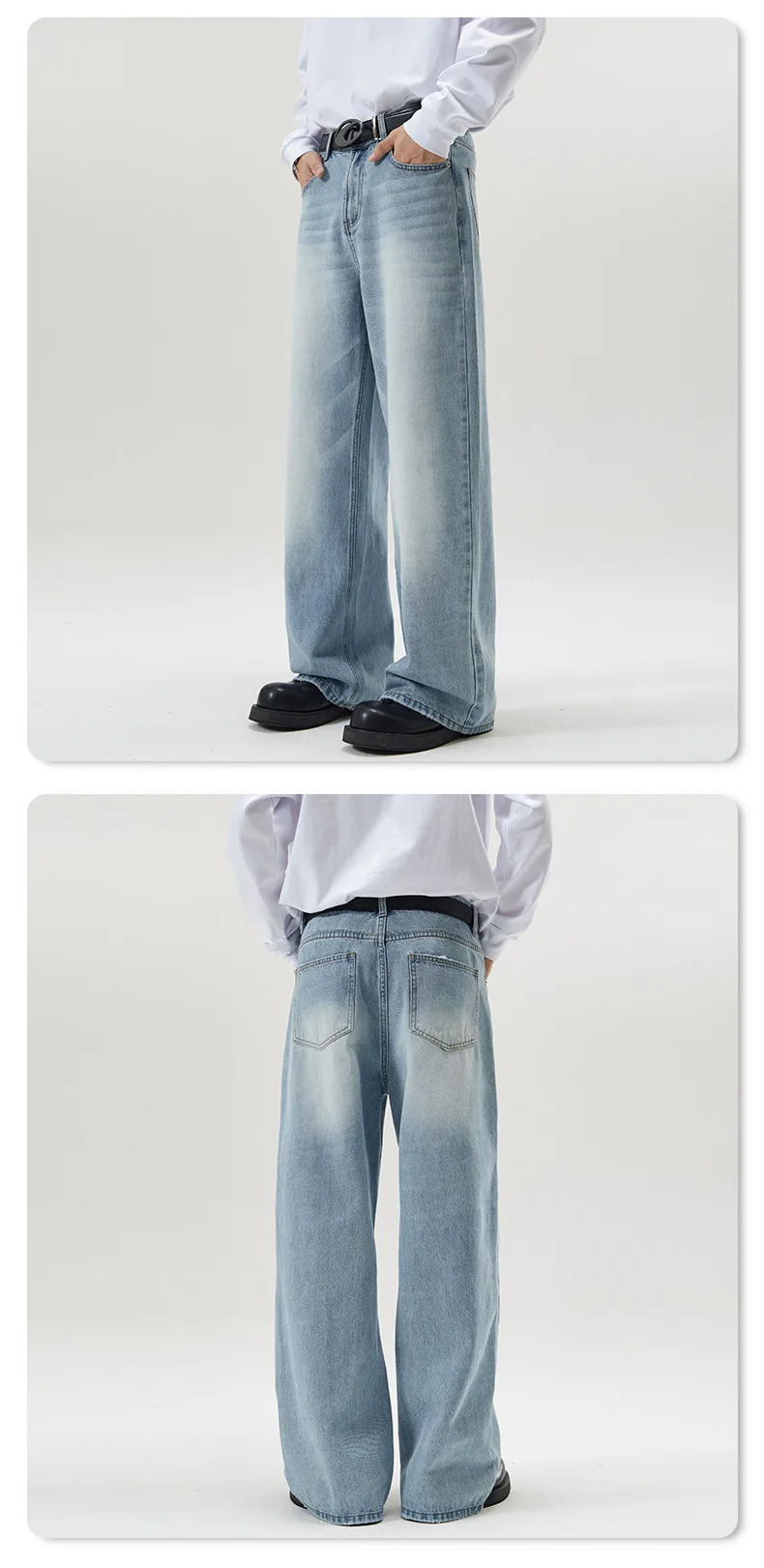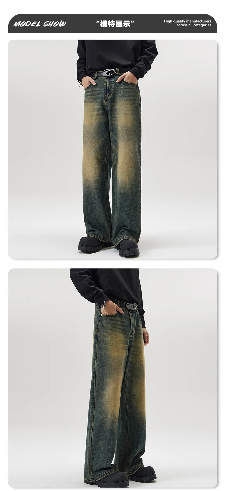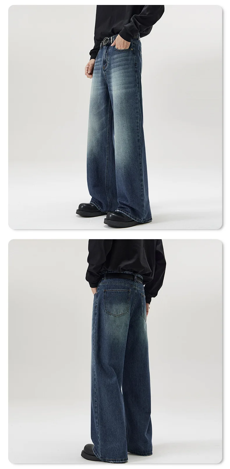 Summer Mens Jeans Vintage Distressed Straight Wide Leg Baggy Denim Pants Streetwear New Fashion Men Trousers Spring 9W1547