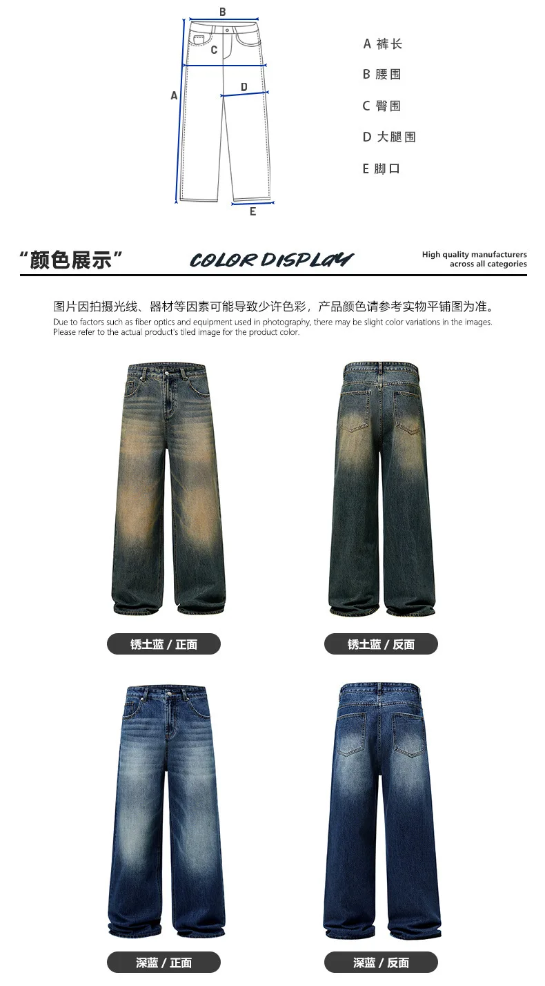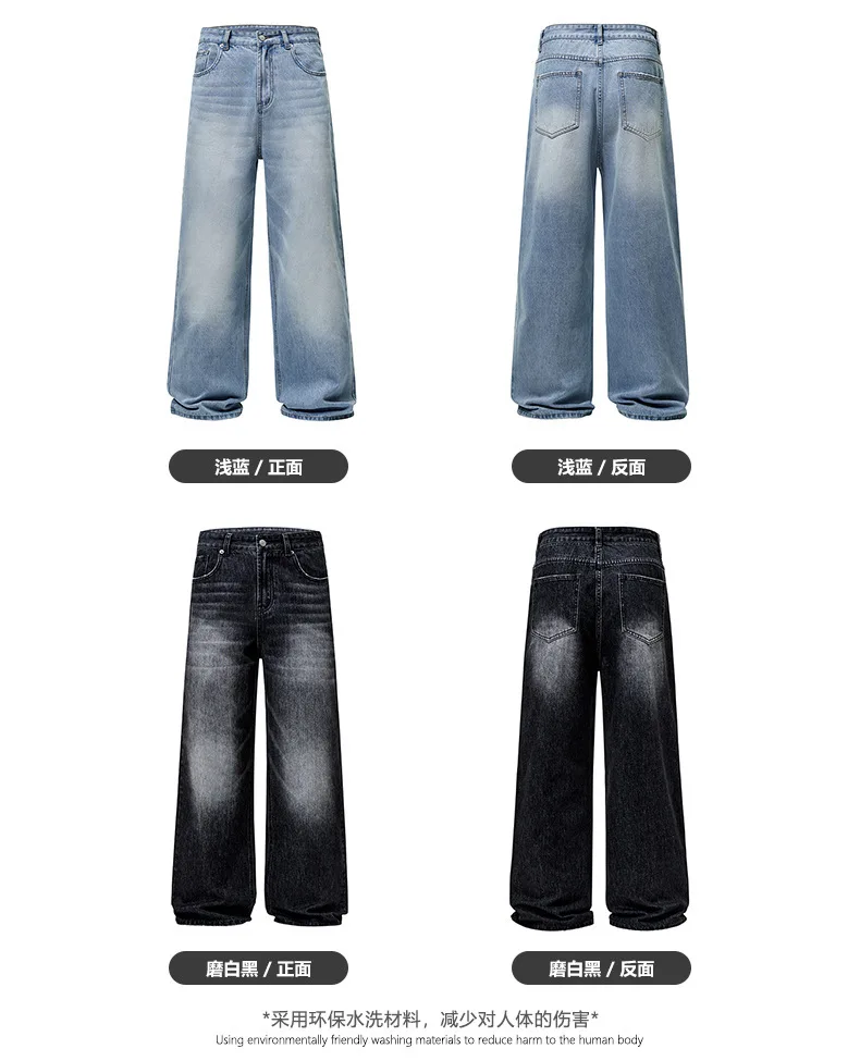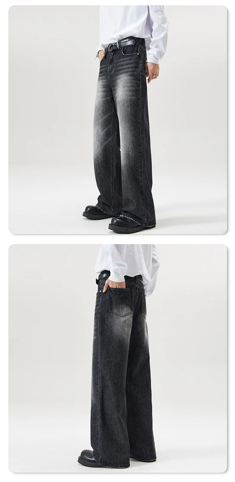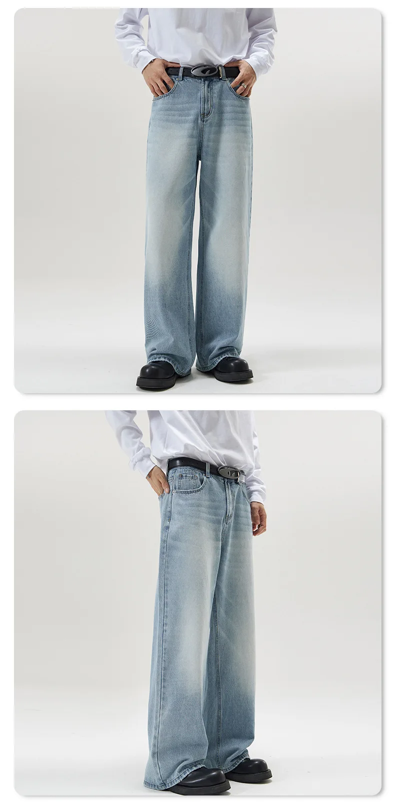 Summer Mens Jeans Vintage Distressed Straight Wide Leg Baggy Denim Pants Streetwear New Fashion Men Trousers Spring 9W1547