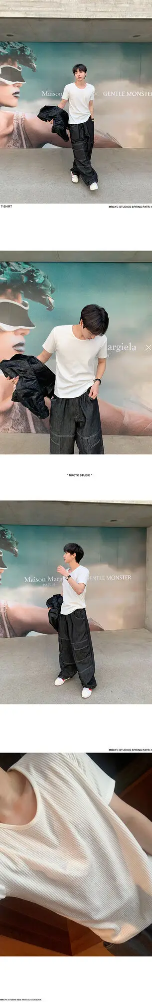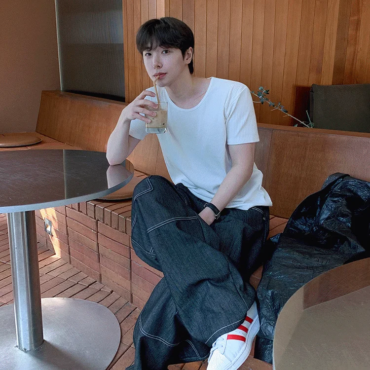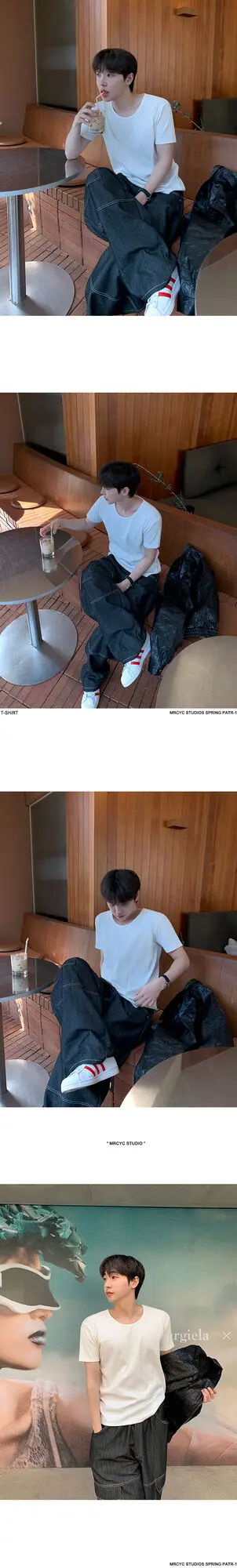 Summer Men's Short Sleeve T-shirts Korean Simple Solid Color Loose Korean Handsome Round Neck Casual T-shirt 9W1612