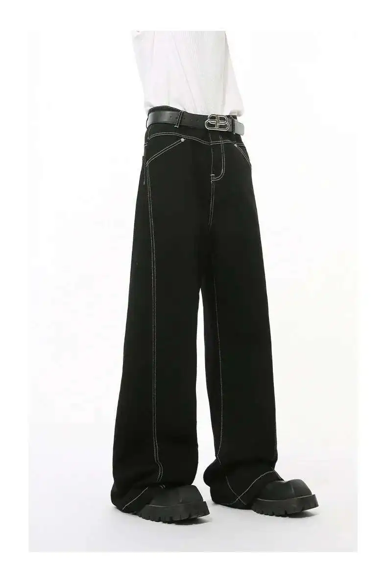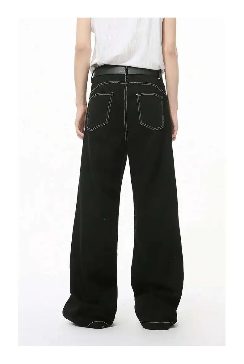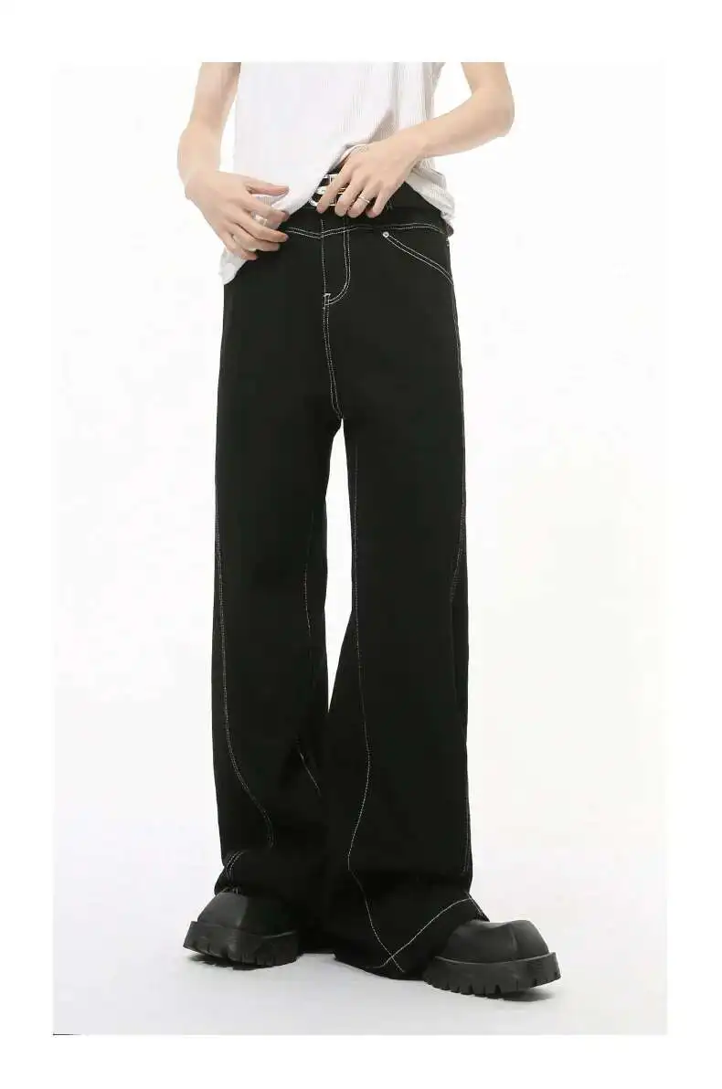 Summer New Men's Jeans Casual Bright Line Solid Color Denim Pants Straight Wide Leg Loose Male Trousers Korean Style 9C8203