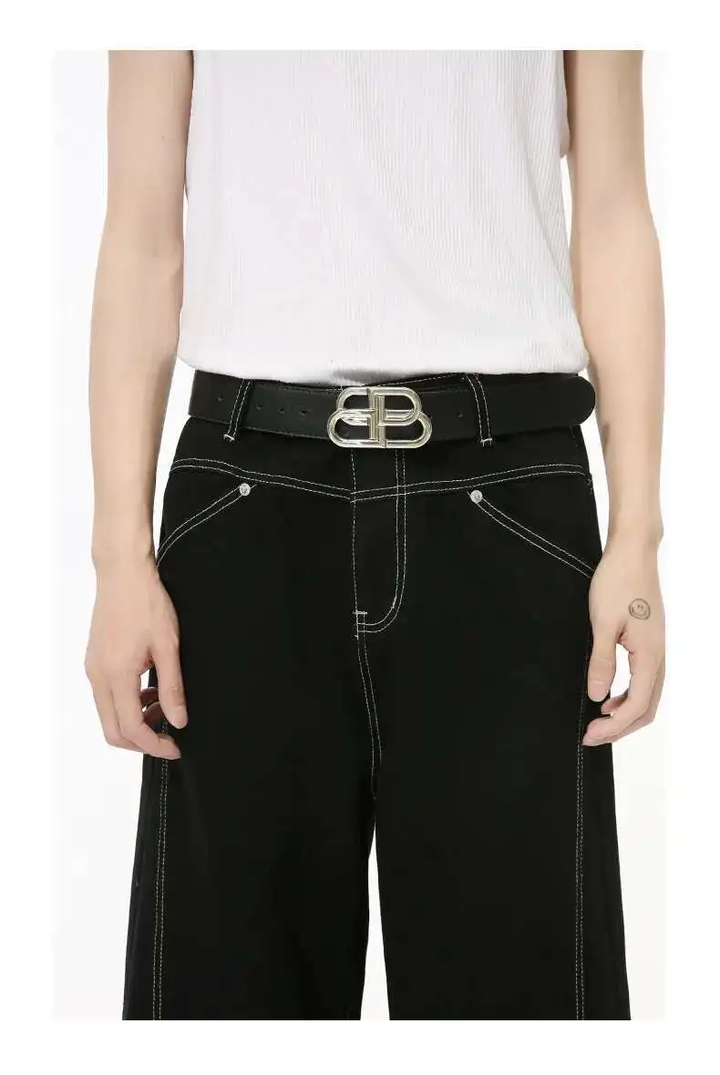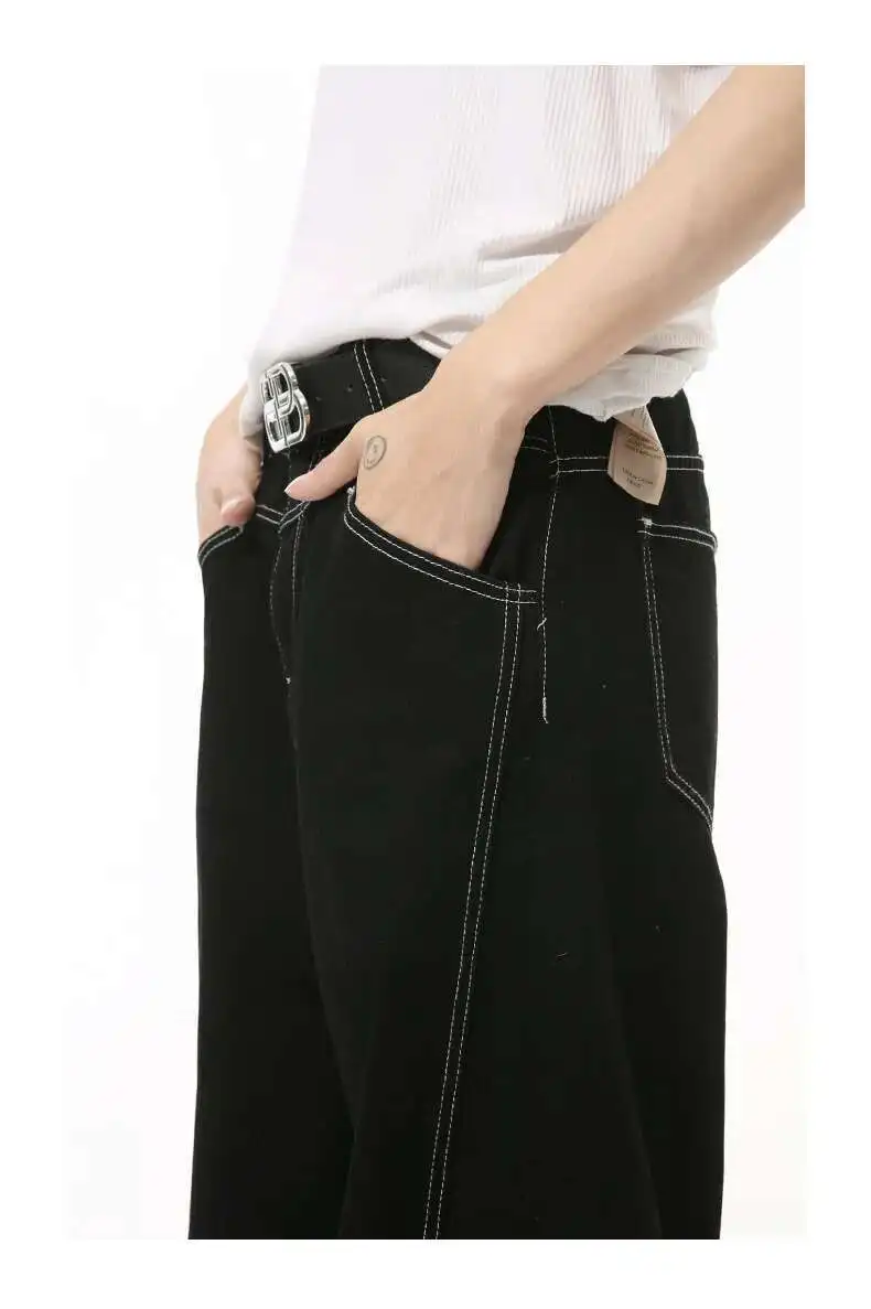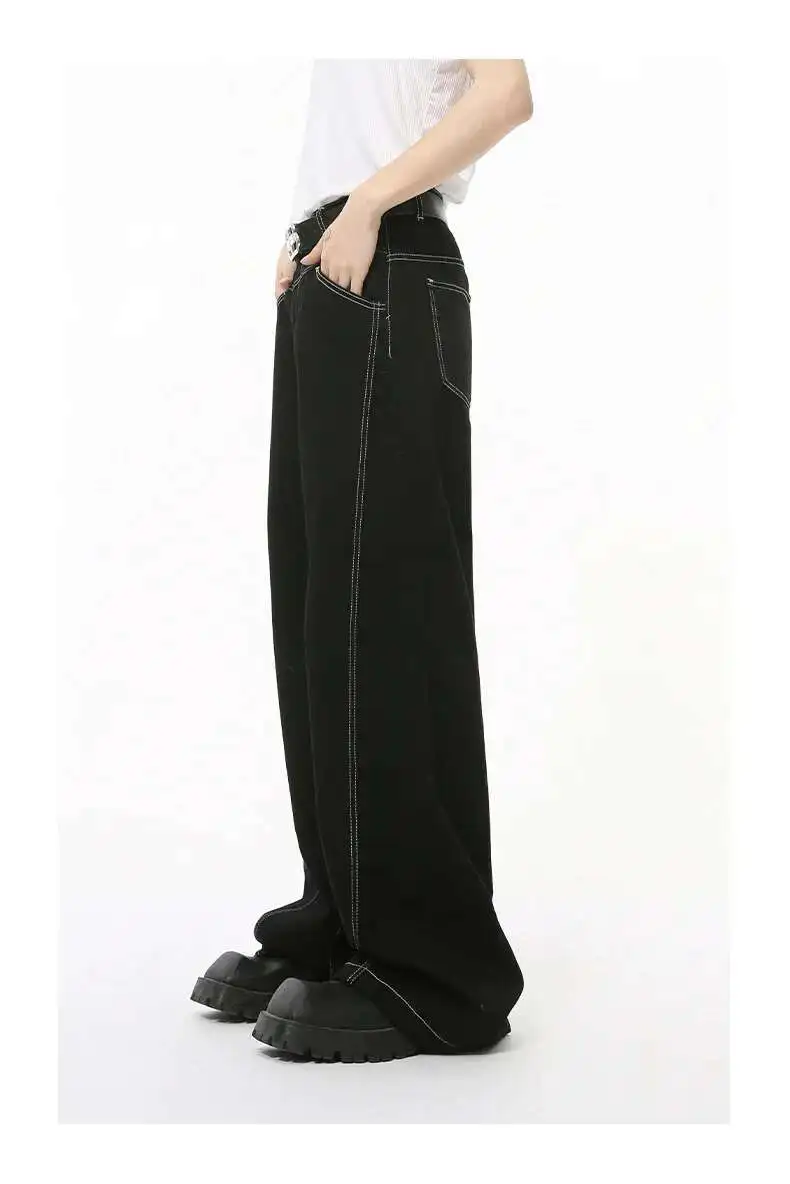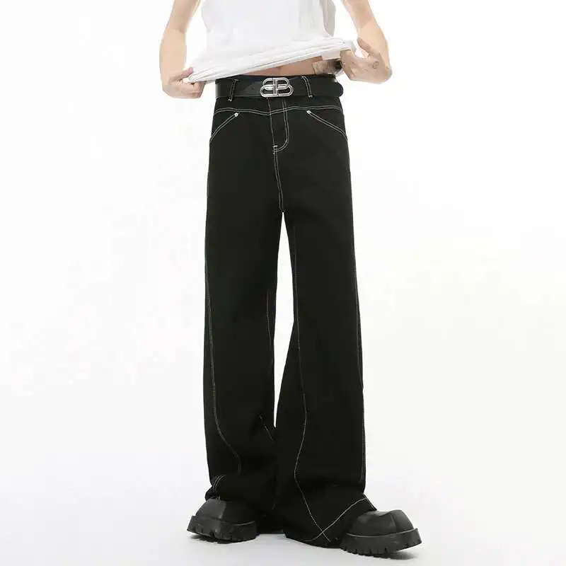 Summer New Men's Jeans Casual Bright Line Solid Color Denim Pants Straight Wide Leg Loose Male Trousers Korean Style 9C8203