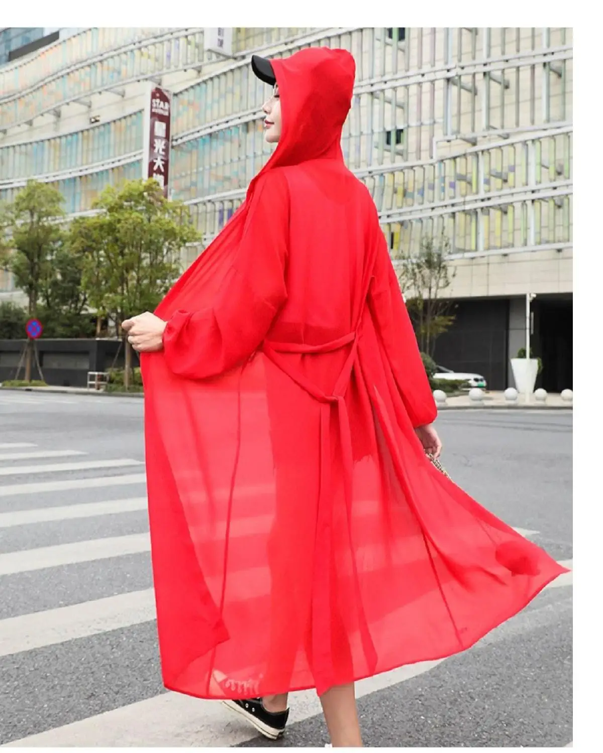 Summer Solid Shawl Cardigan Hooded Beach Shirts Women's Oversized Long Sleeve Cardigan Loose Sun Protection Bandage Blouses Top