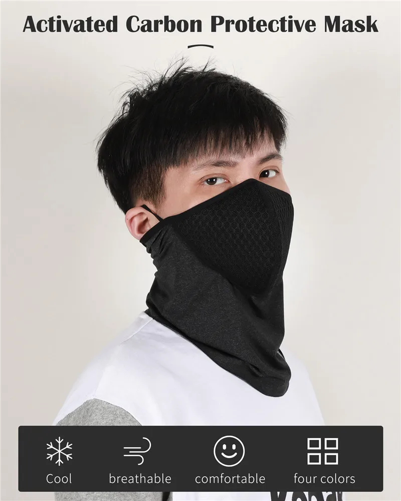 1.With activated carbon filter, effectively prevent harmful substances from entering the nose 2.Made of ice silk and Lycra fabric, cool and breathable, UV resistant 3.Outdoor essential, unisex, effective protection
