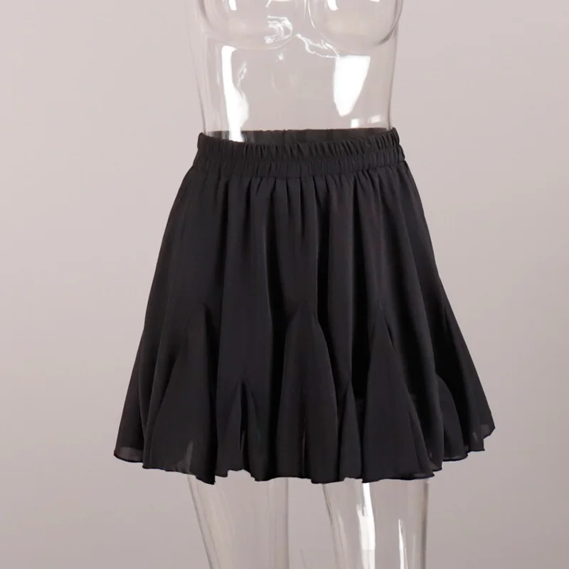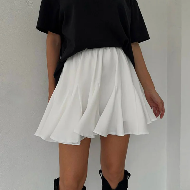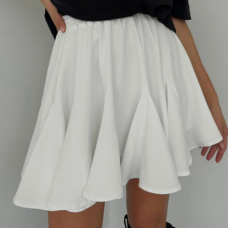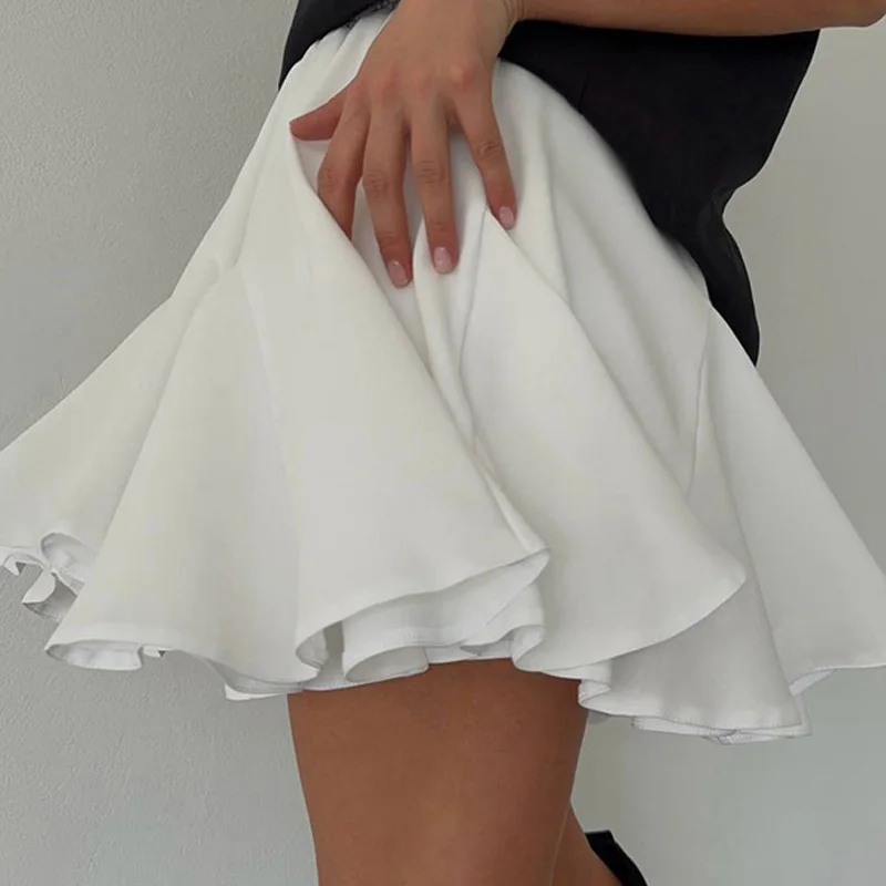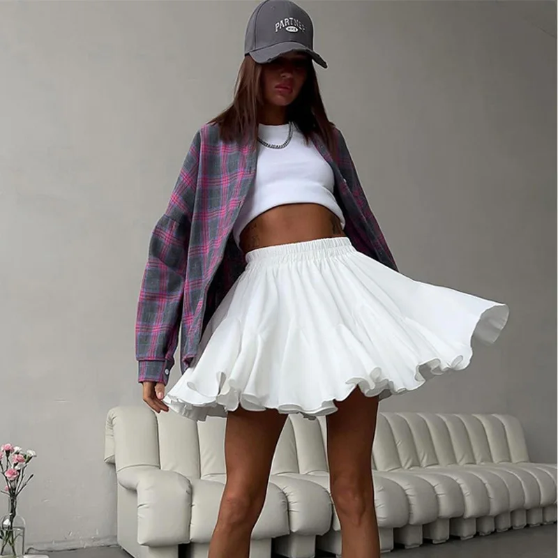 Summer White Mini Skirt A-line High Waist Sexy Cute Ruffle Vintage Tennis Skirt Black Elastic Waist Tutu Short Skirts for Women