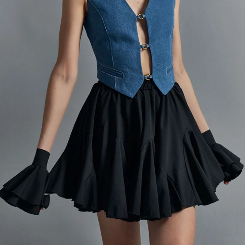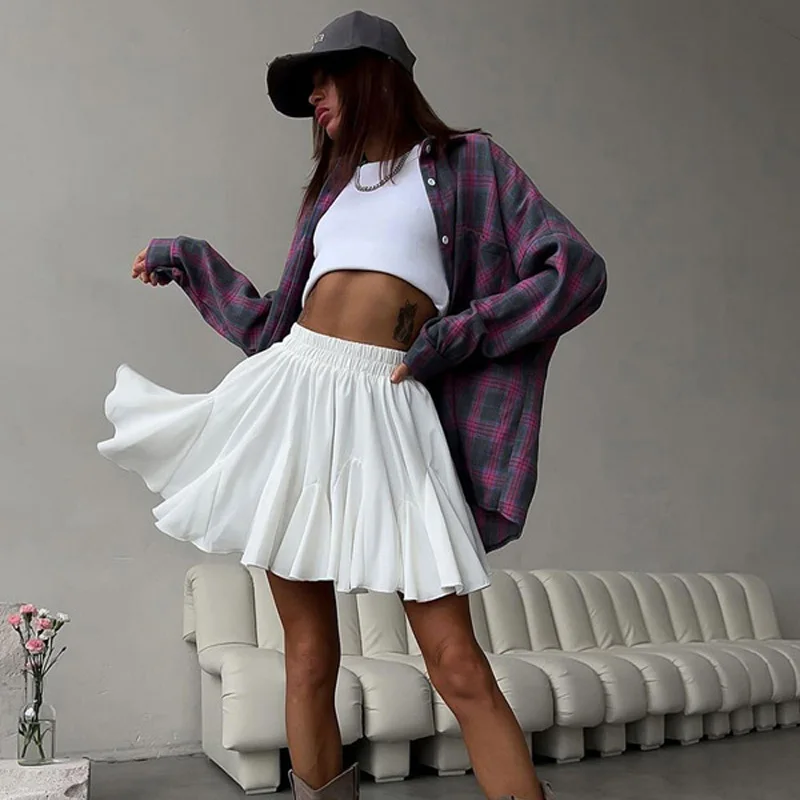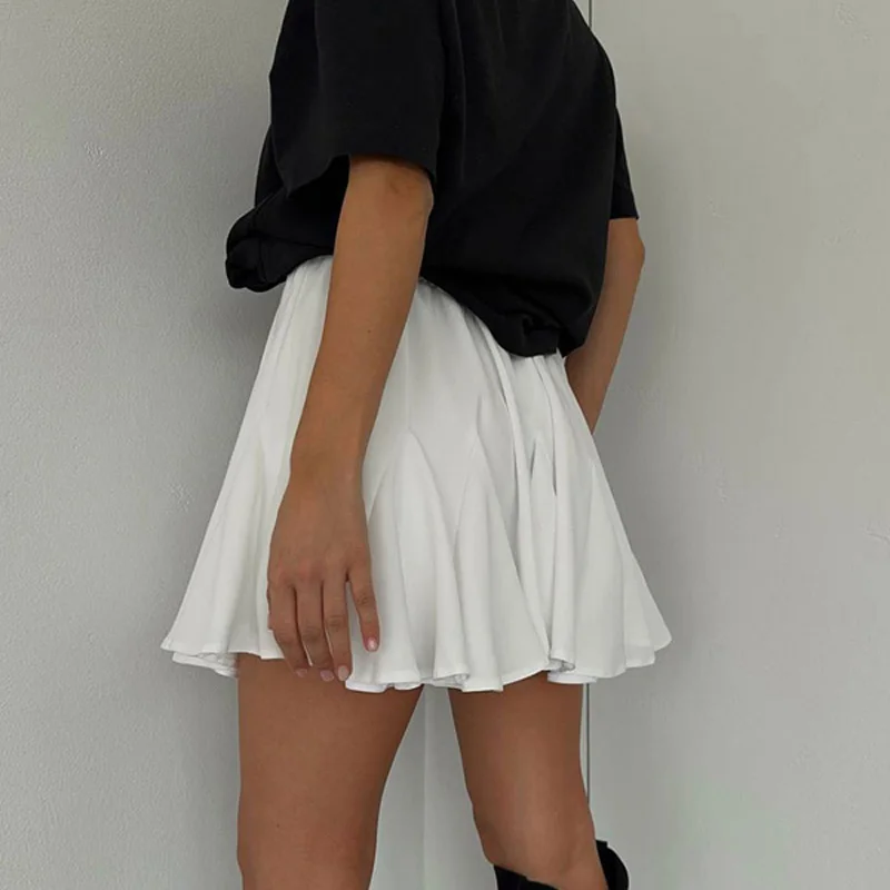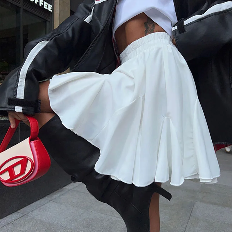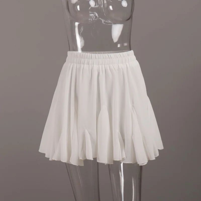 Summer White Mini Skirt A-line High Waist Sexy Cute Ruffle Vintage Tennis Skirt Black Elastic Waist Tutu Short Skirts for Women