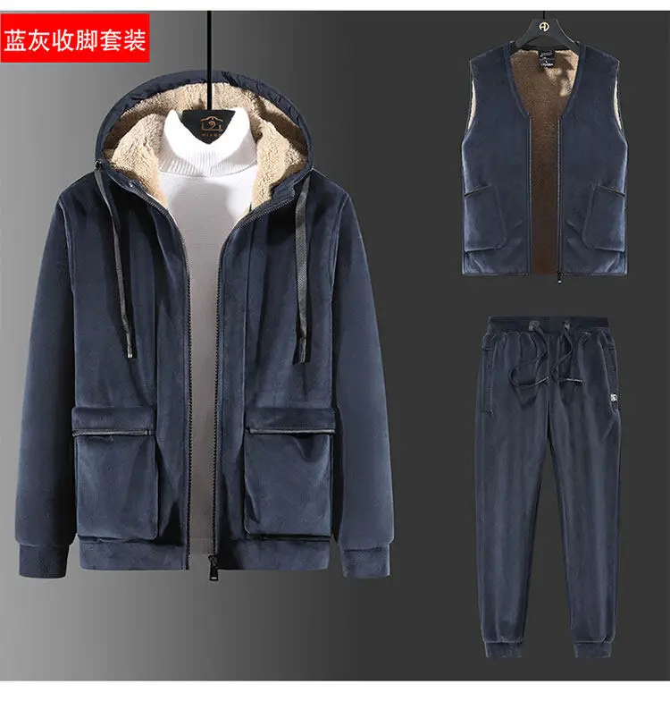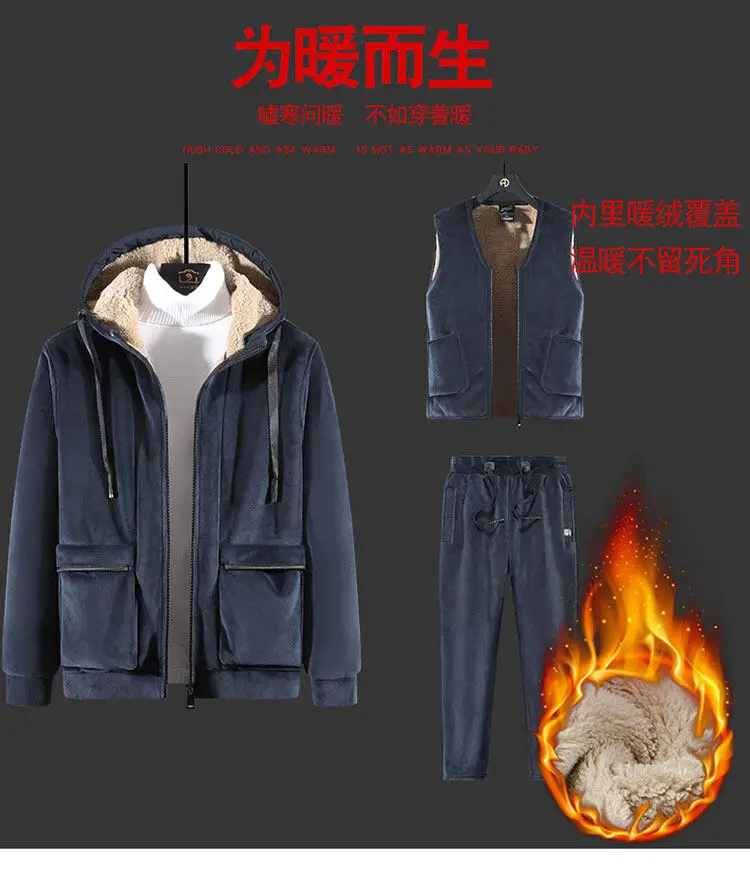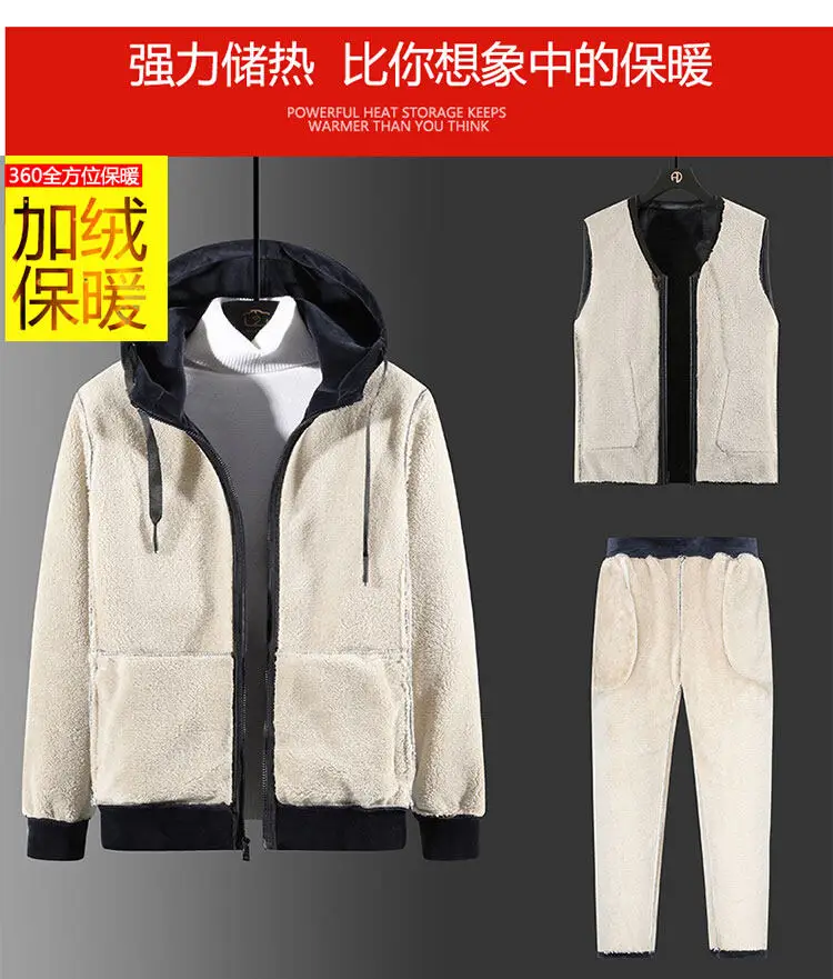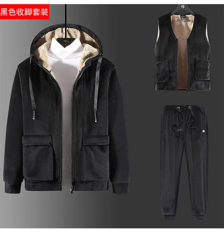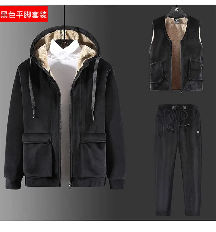 Sweatshirt+vest+Pants Outerwear Sportswear Suit Men's Fleece Winter Set Fashion Winter Hooded Casual Tracksuit Thick Warm