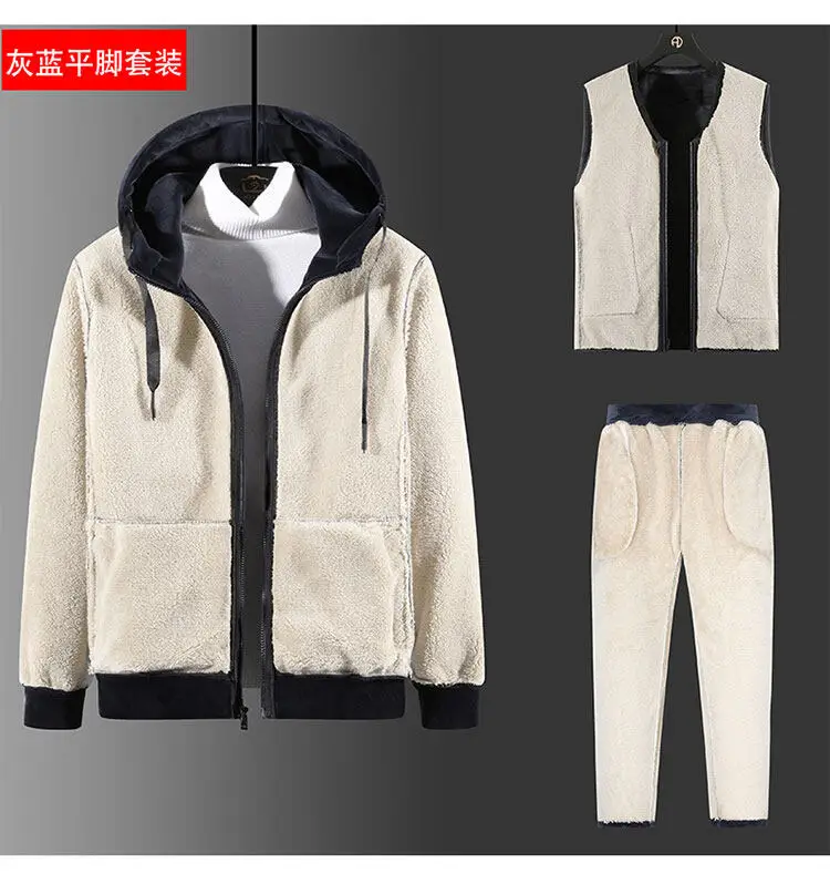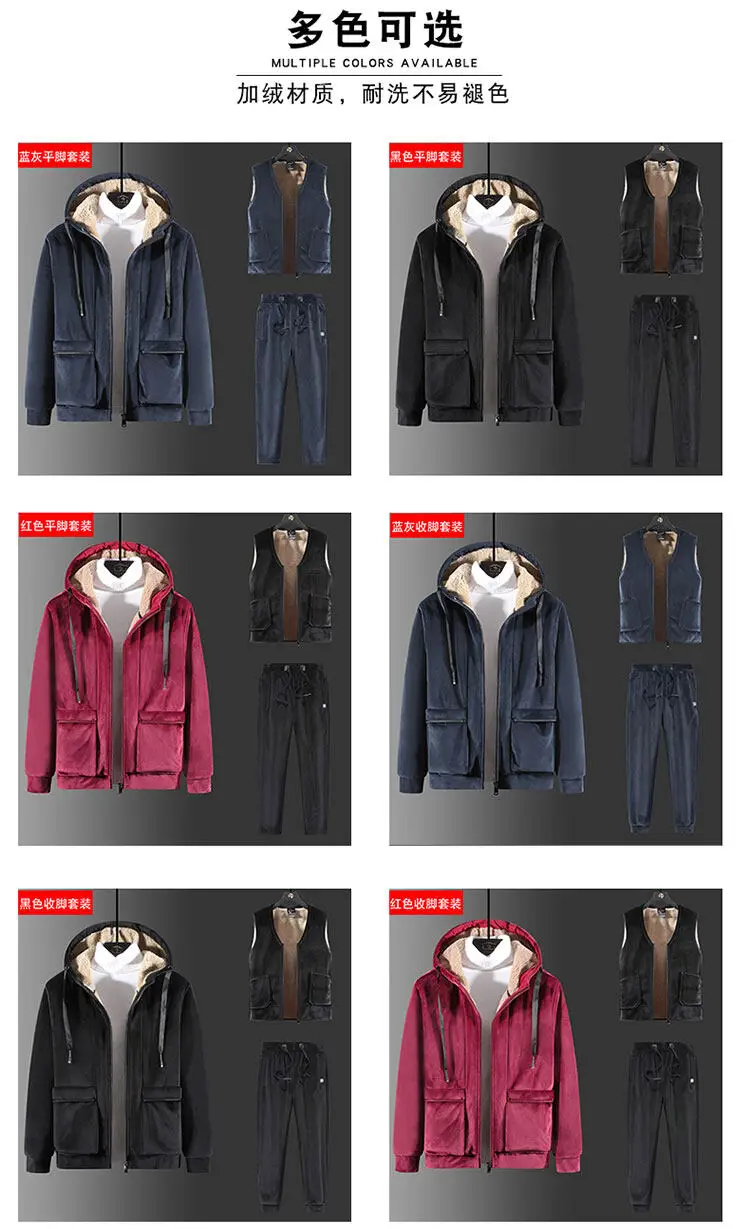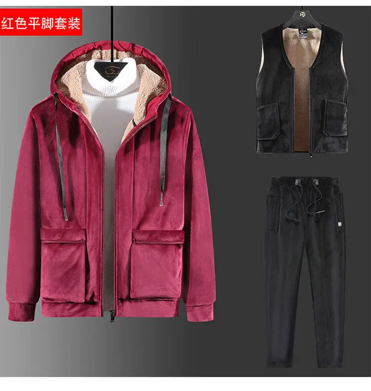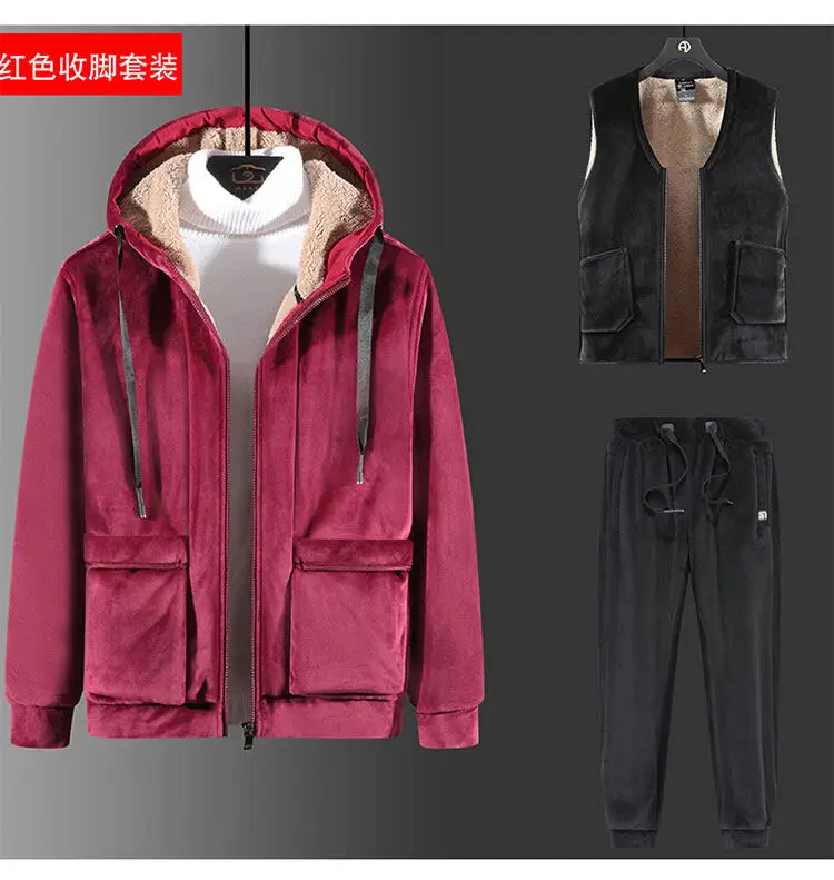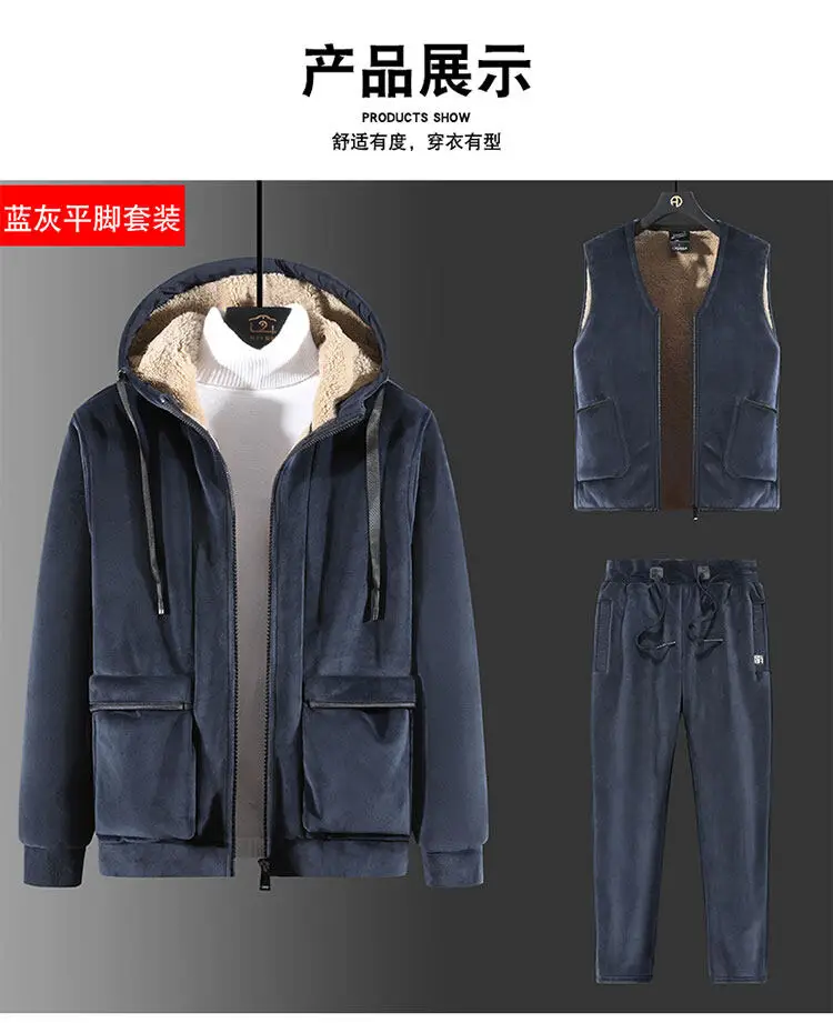 Sweatshirt+vest+Pants Outerwear Sportswear Suit Men's Fleece Winter Set Fashion Winter Hooded Casual Tracksuit Thick Warm