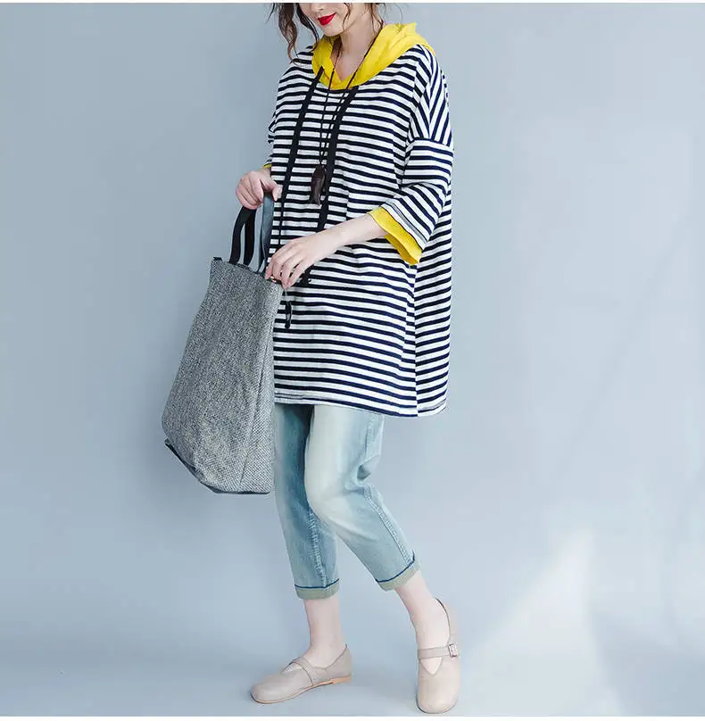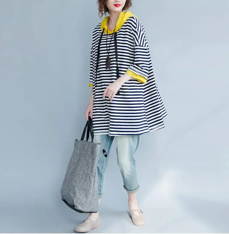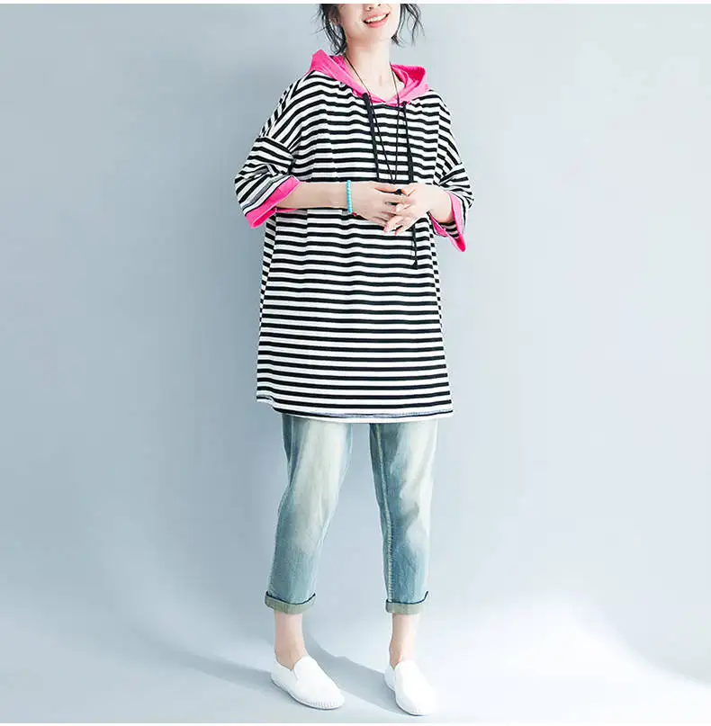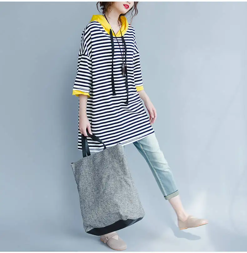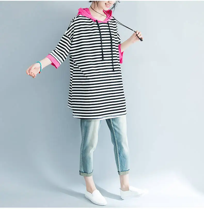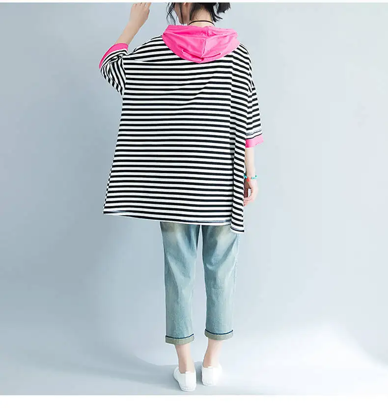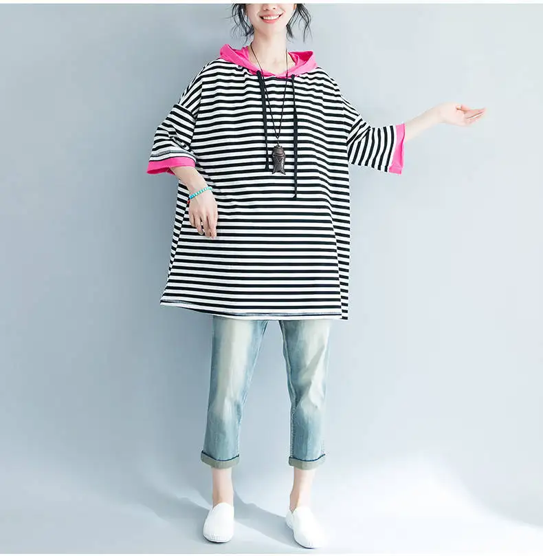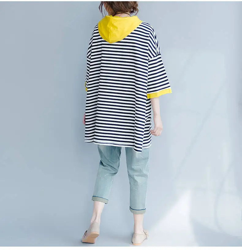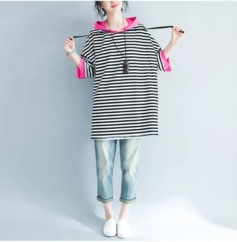 T-shirt Women's Hooded T-shirt Stripe Loose Top Korean Casual Short Sleeve Tops Women's T-shirts With Short Sleeve Hoodie