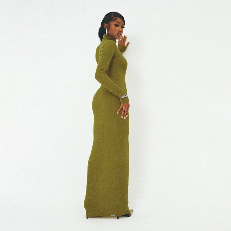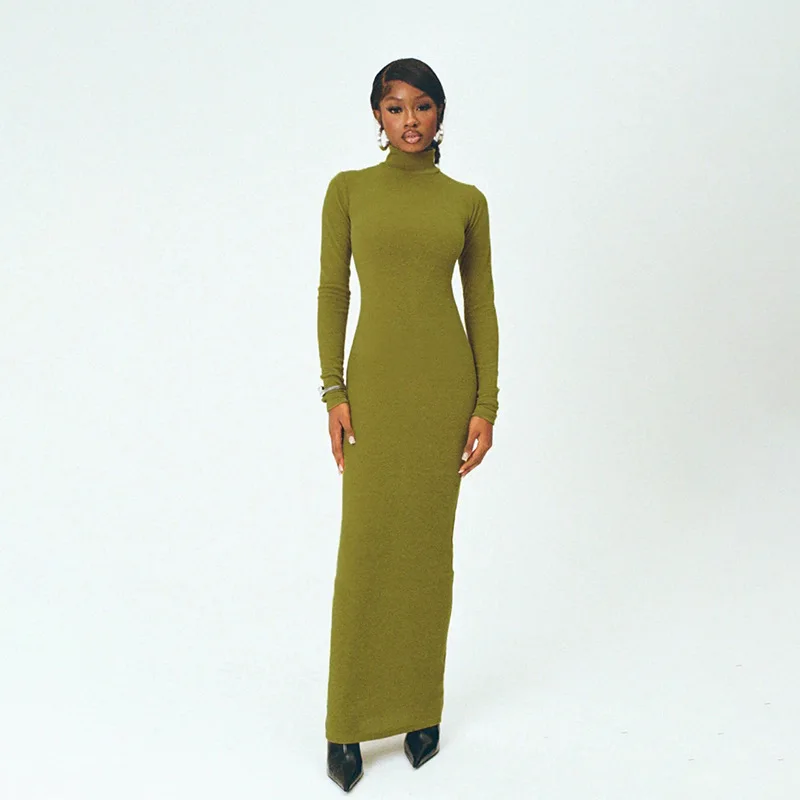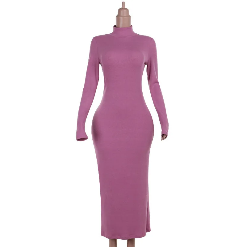 Turtleneck Long Sleeve Maxi Dress For Women Autumn New Elegant Solid Slim Fit High Waist Sexy Long Dress Ladies New