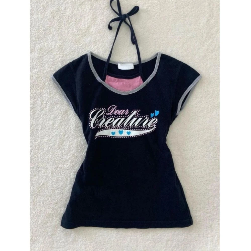 Two Pieces Set T-shirt Halter Patchwork Slim Casual Letter Cropped Top Women Y2k Aesthetic Summer Contrast Color Grunge Tees